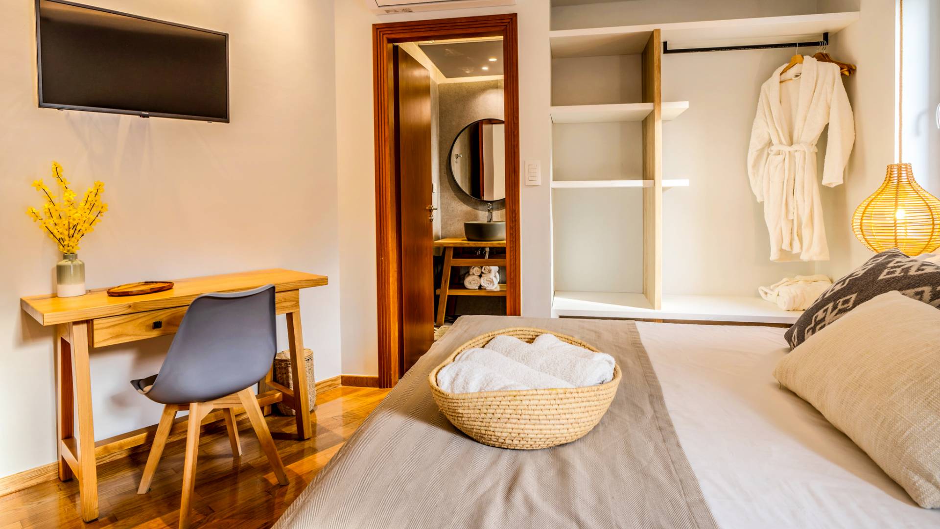 Две кондиционированные спальни с ванными комнатами, TV 32” и раздельными кроватями (трансформируются в king-size)