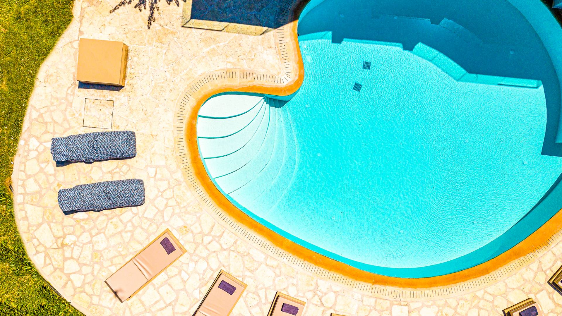 Бассейн свободной формы площадью 70 м² с водопадом (глубина 1,4 м)