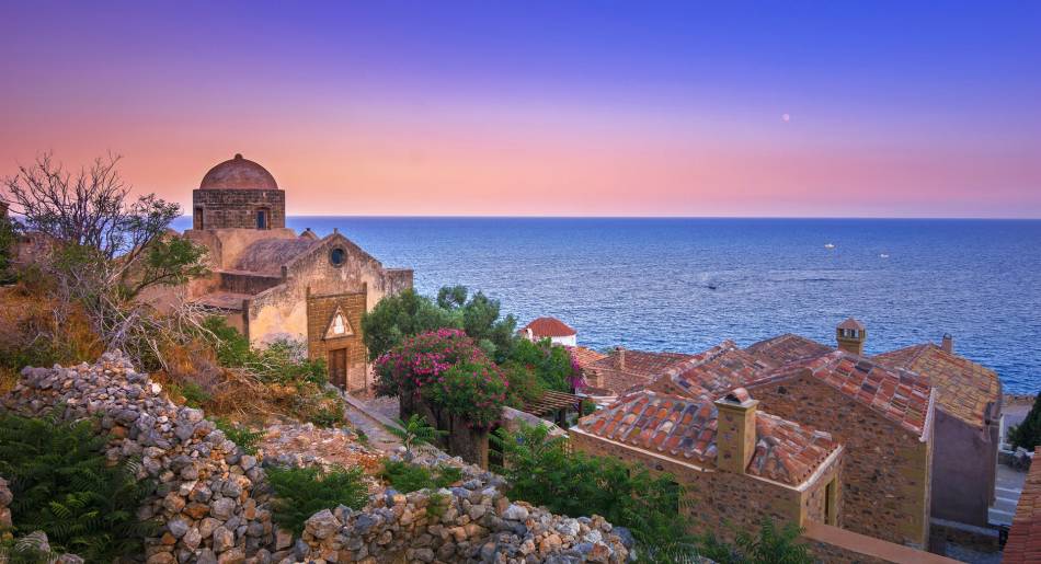 Монемвасия расположена в Лаконии, Греция, на небольшом острове у восточного побережья Пелопоннеса. Городские стены и множество византийских…