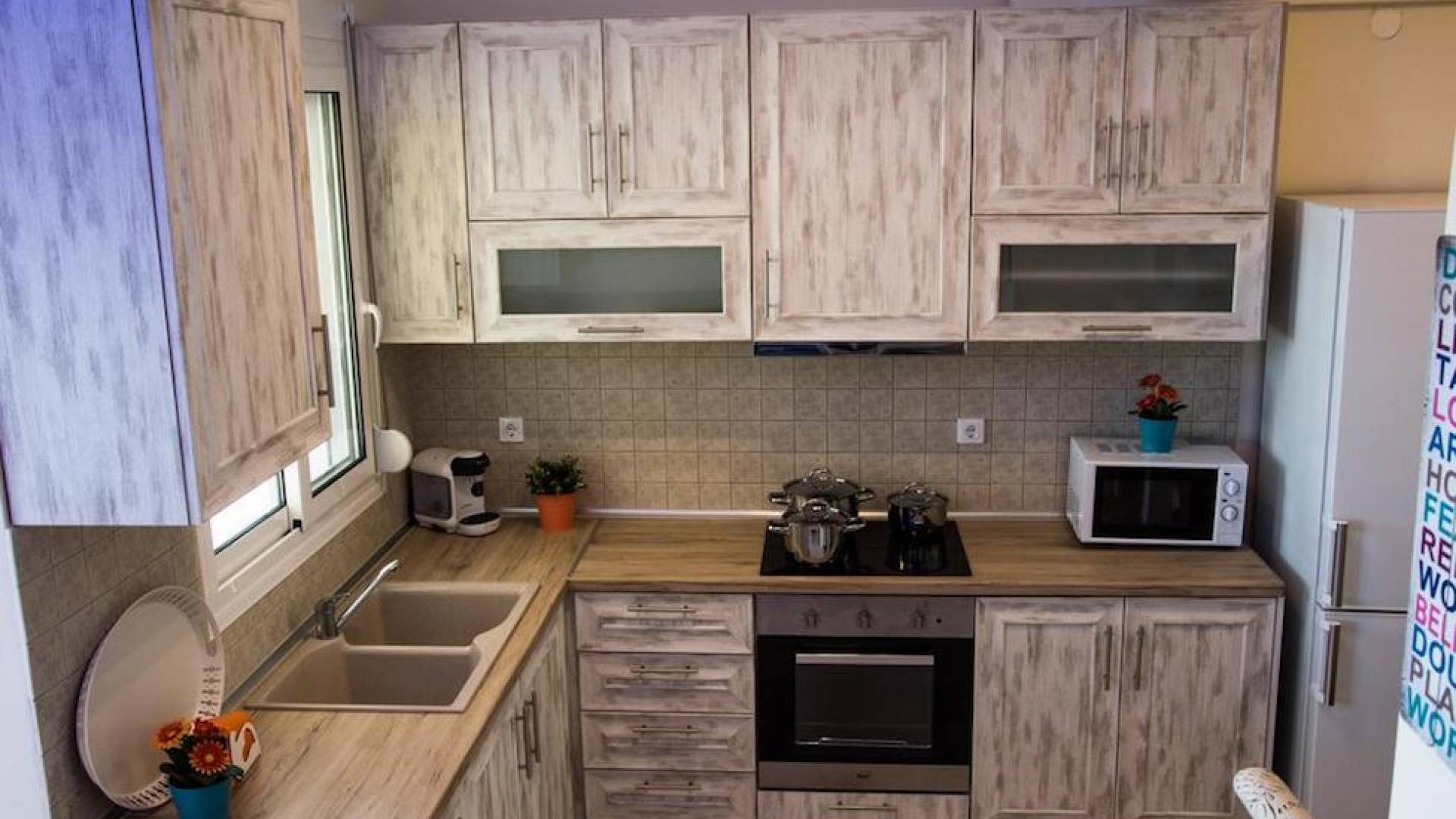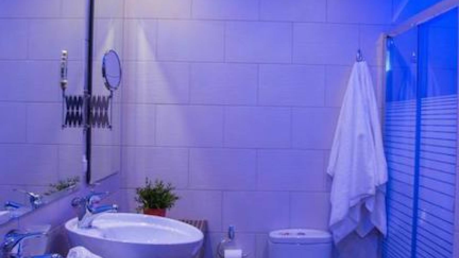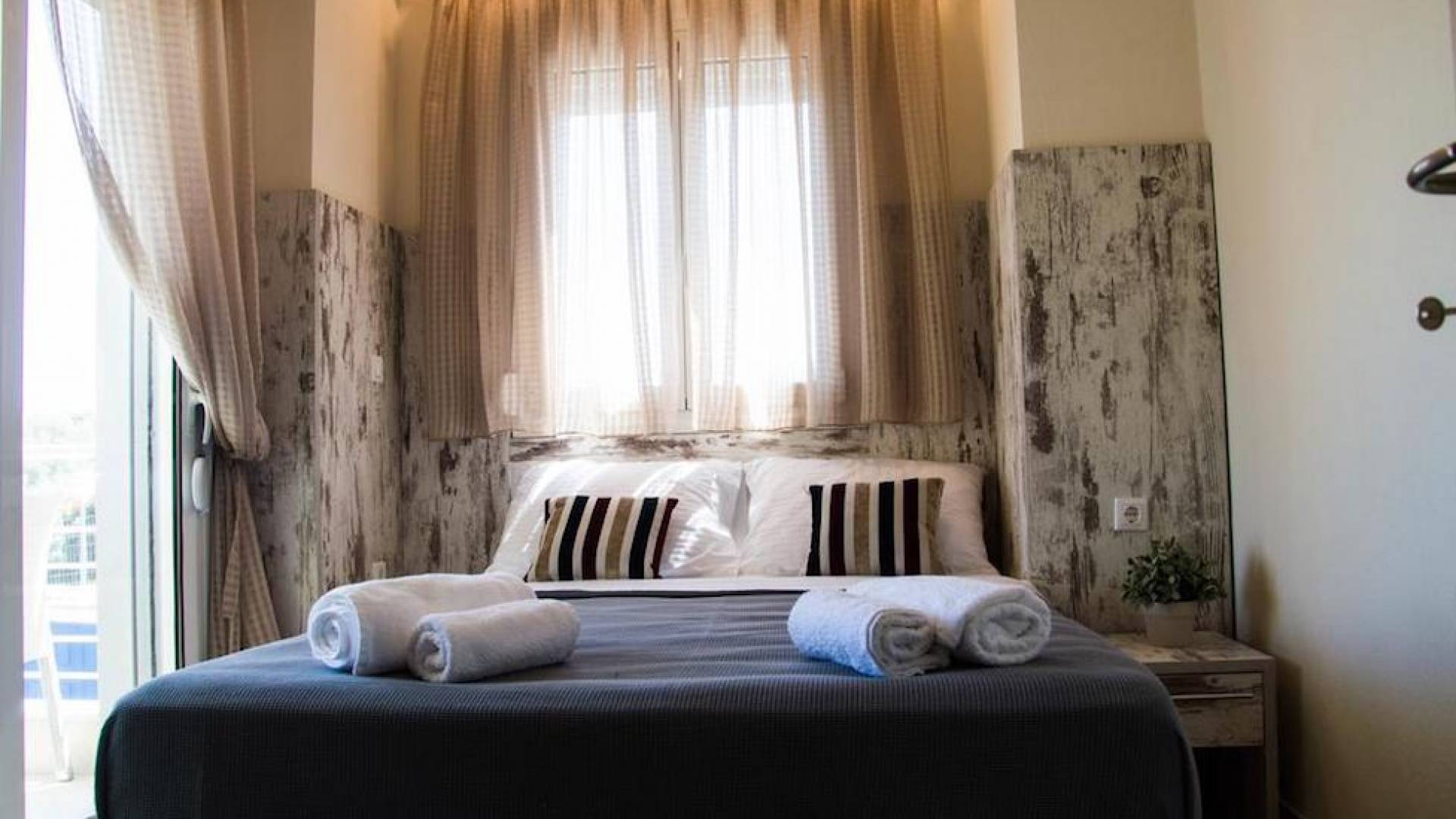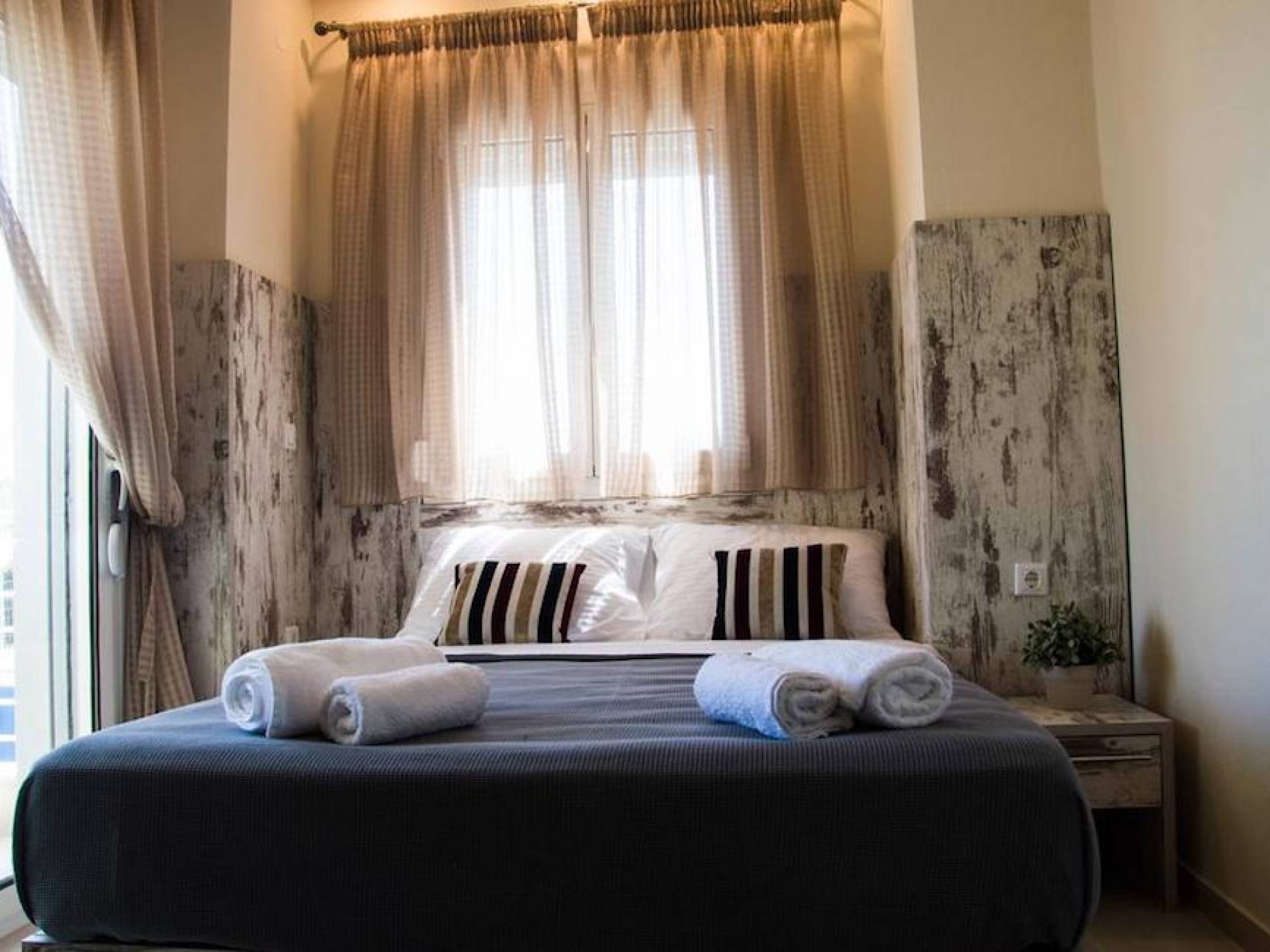 Вход в дом через главный вход - прихожая, которая ведет в комнату с двуспальной кроватью, мини-баром, 32-дюймовым телевизором и кондиционером, комнату с двуспальной кроватью и кондиционером. , и ванная комната с душевой кабиной. Обе комнаты имеют собственную террасу с панорамным видом на море и полуостров Афон. Наверху, над комнатами, находится чердак площадью 20 кв.м с двуспальной кроватью, 1 раскладывающимся двуспальным диваном, мини-баром, 32-дюймовым телевизором, кондиционером и туалетом. На первом этаже находится комната с 2 односпальными кроватями, которые можно составить в одну двуспальную кровать. Большая центральная роскошная ванная комната с душевой кабиной и стиральной машиной.
