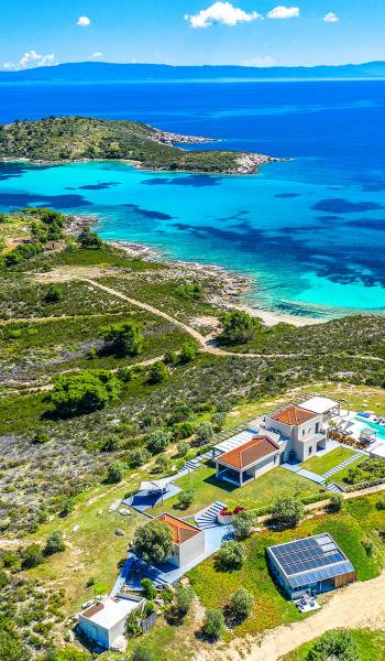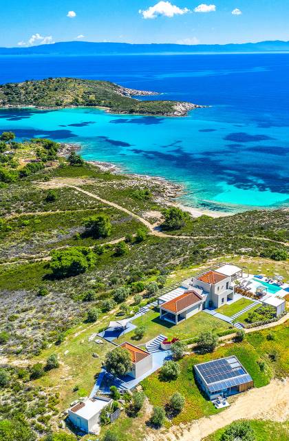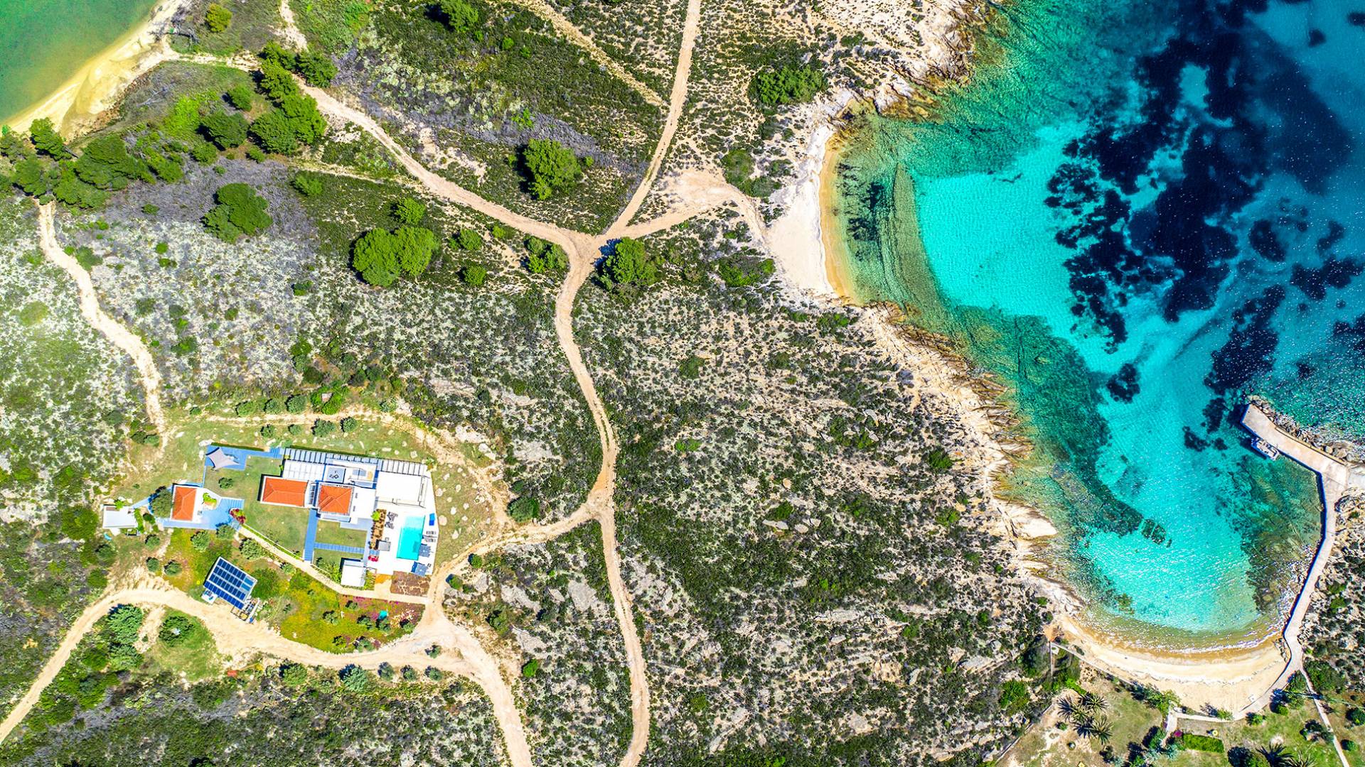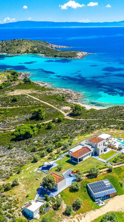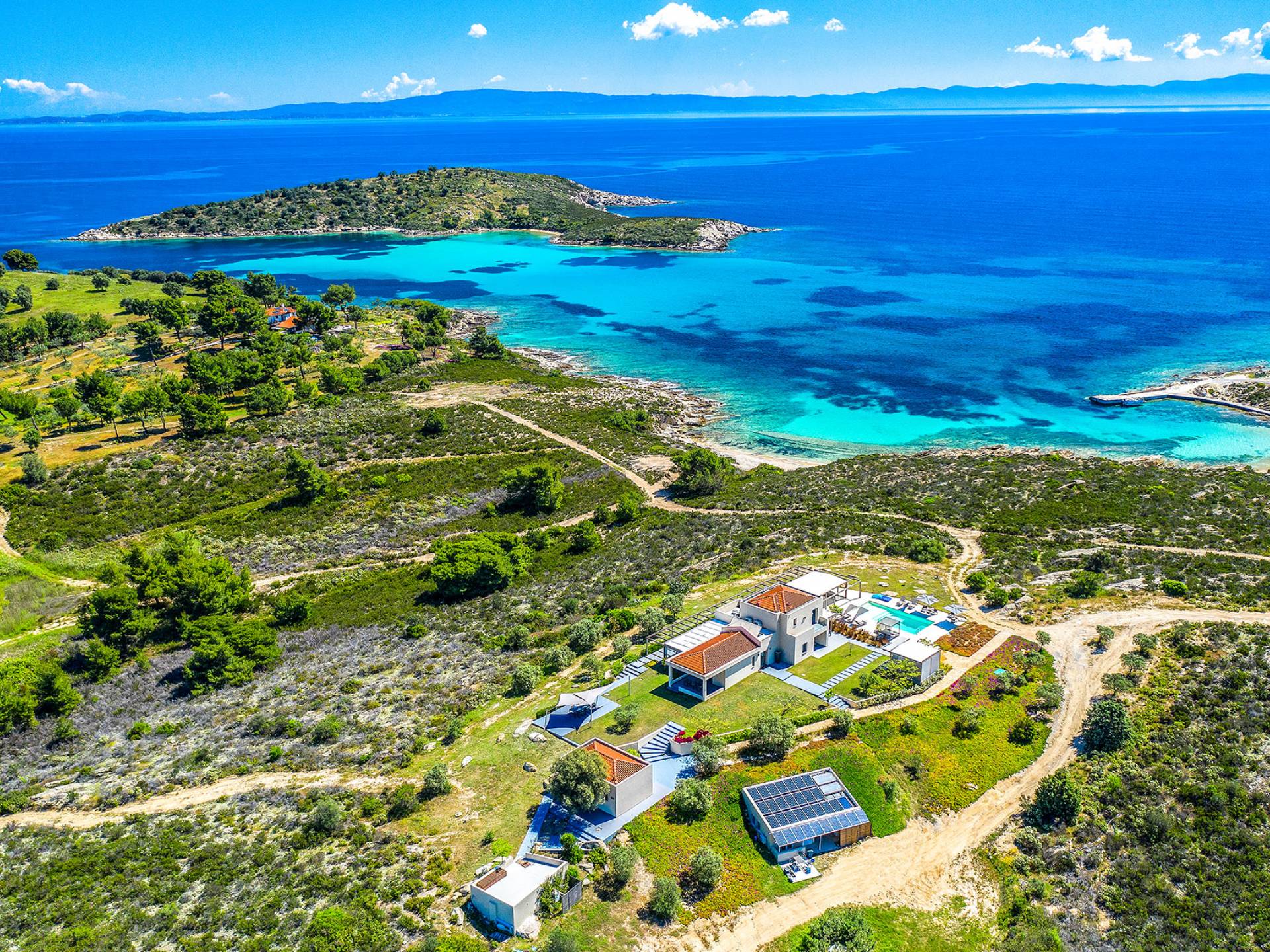 Вилла Diaporos в бухте сокровищ - это исключительное место, откуда можно полюбоваться потрясающим восходом и закатом солнца и насладиться палитрой уникальных цветов. Расположенный в Диапорос Халкидики, окруженный белоснежными песчаными пляжами со спокойной и теплой бирюзовой водой, частный причал с легким доступом идеально подходит для того, чтобы бросить якорь для больших яхт и парусных лодок.