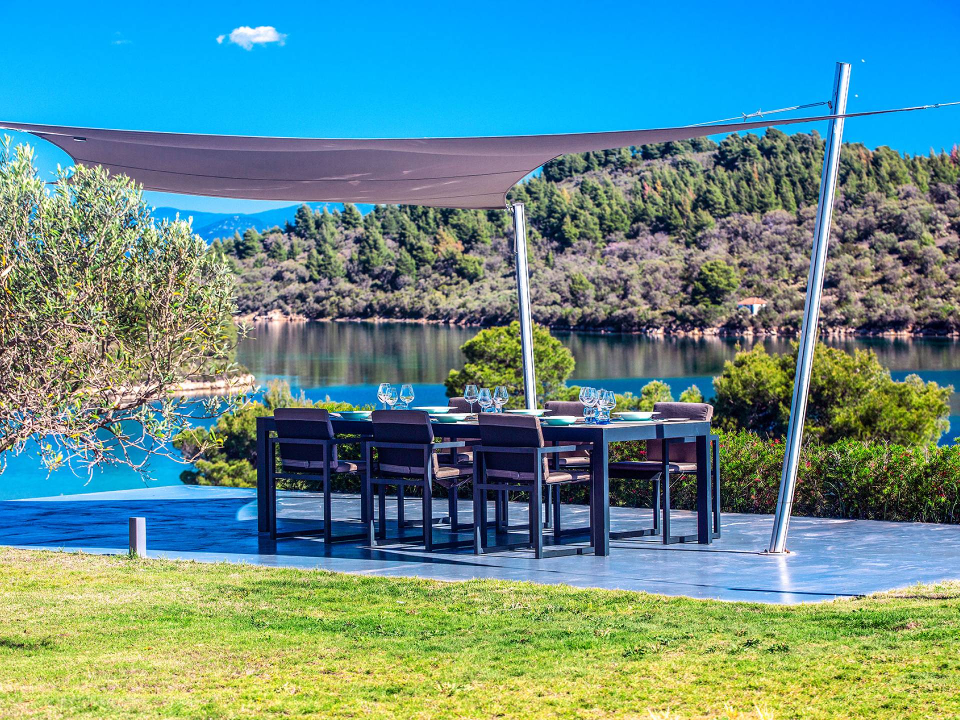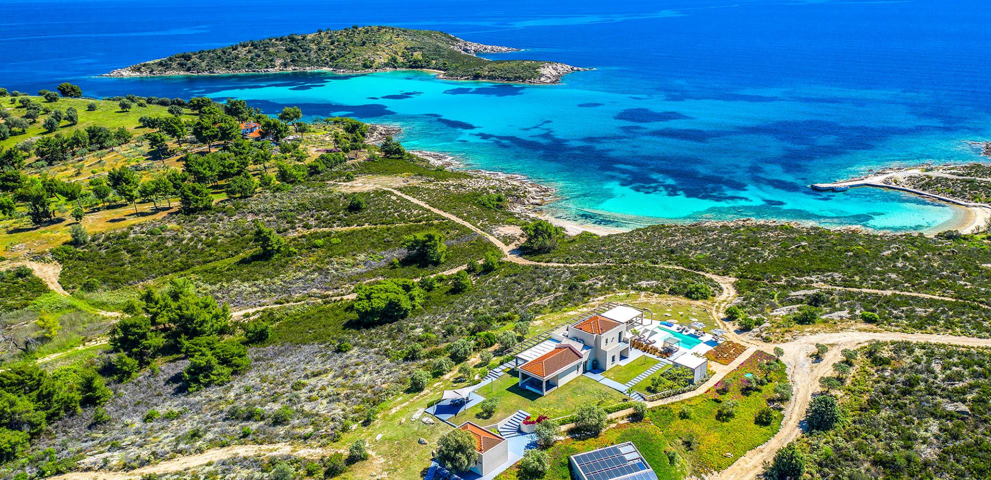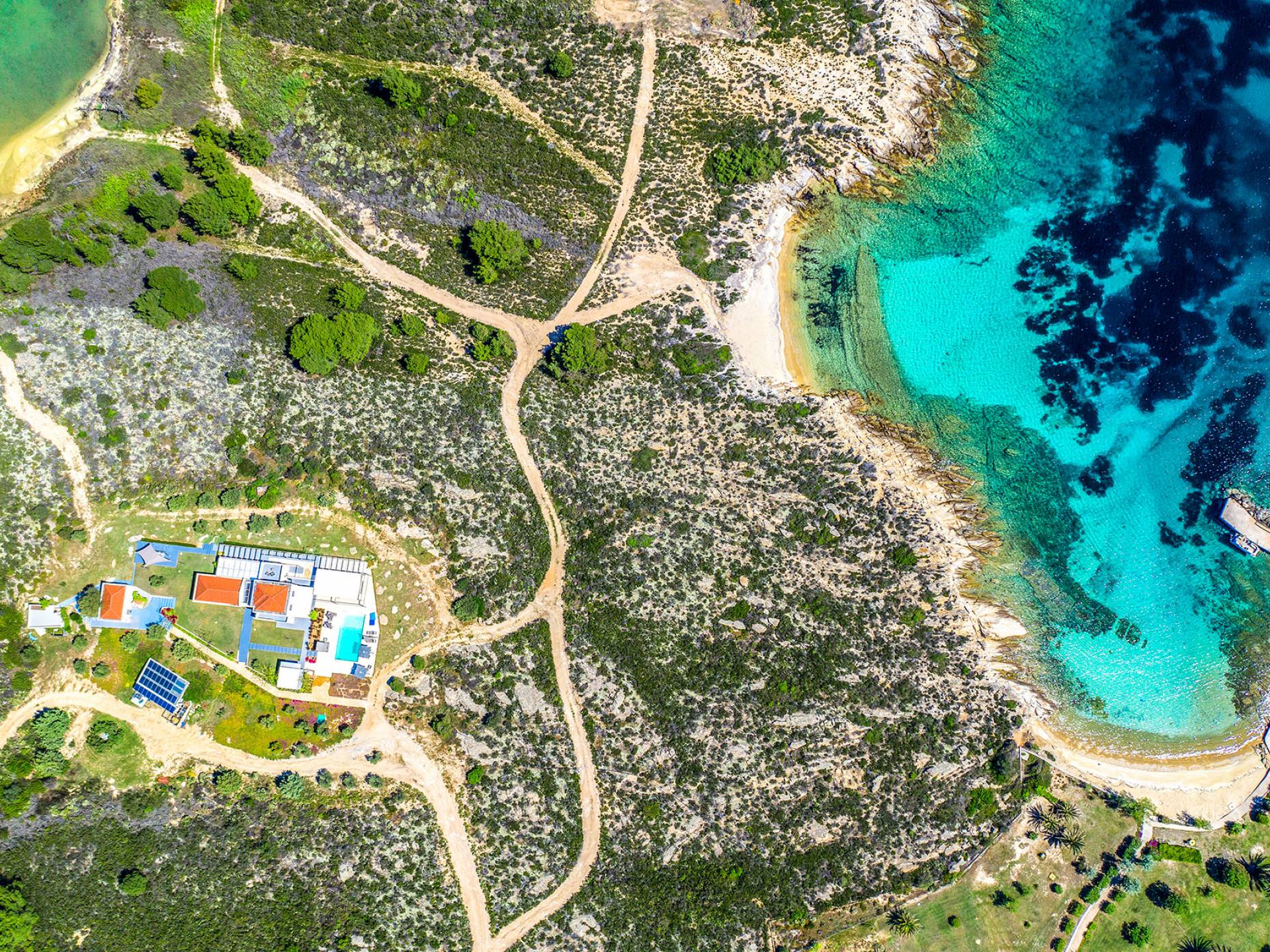 Вилла Diaporos в бухте сокровищ - это исключительное место, откуда можно полюбоваться потрясающим восходом и закатом солнца и насладиться палитрой уникальных цветов. Расположенный в Диапорос Халкидики, окруженный белоснежными песчаными пляжами со спокойной и теплой бирюзовой водой, частный причал с легким доступом идеально подходит для того, чтобы бросить якорь для больших яхт и парусных лодок.