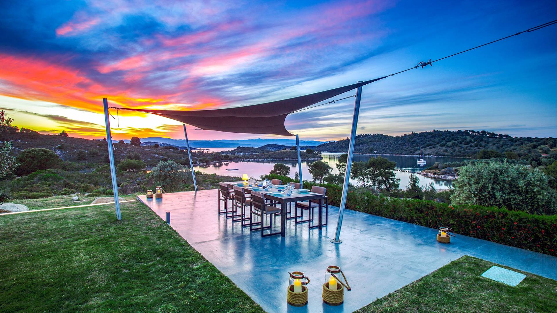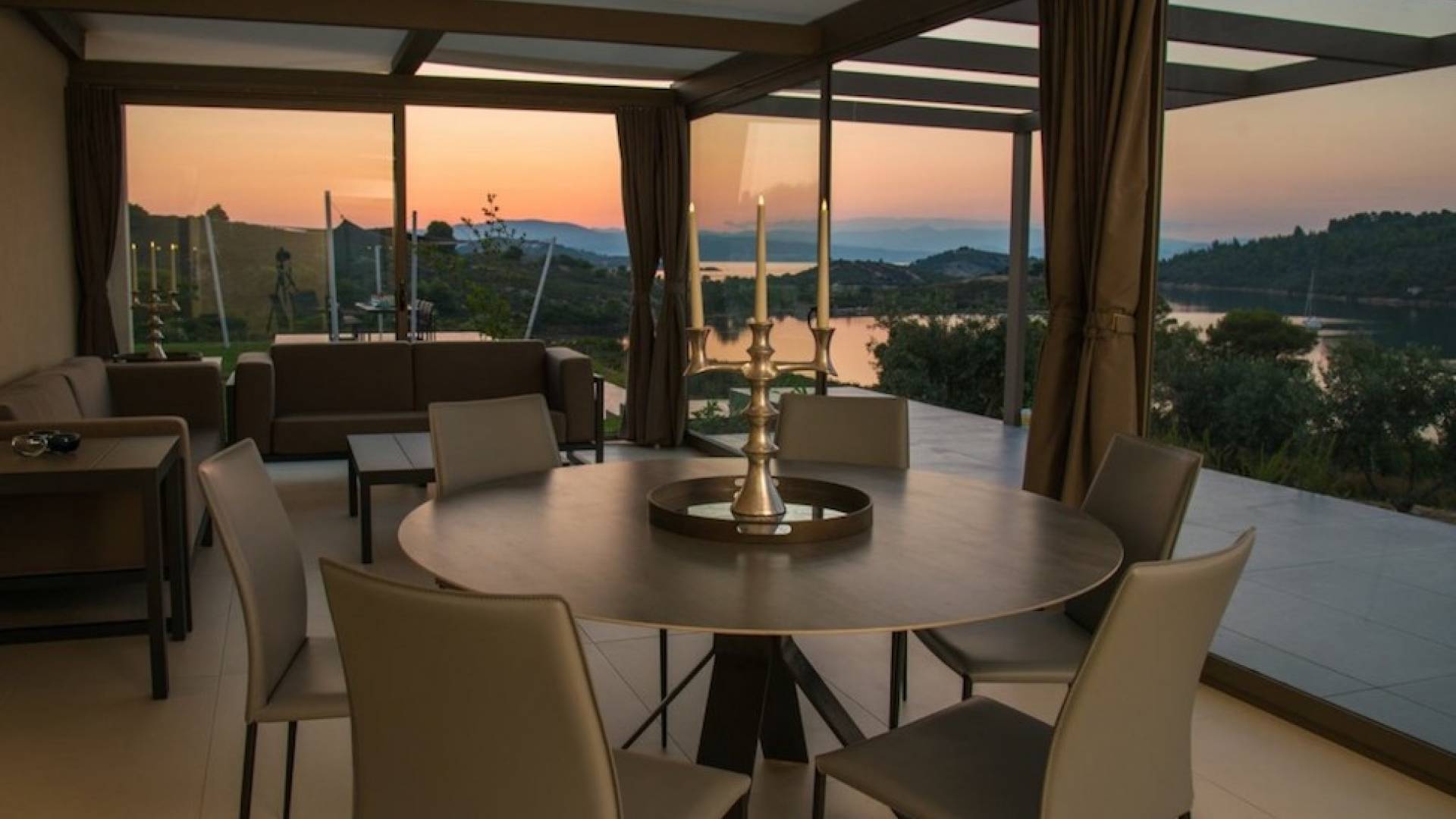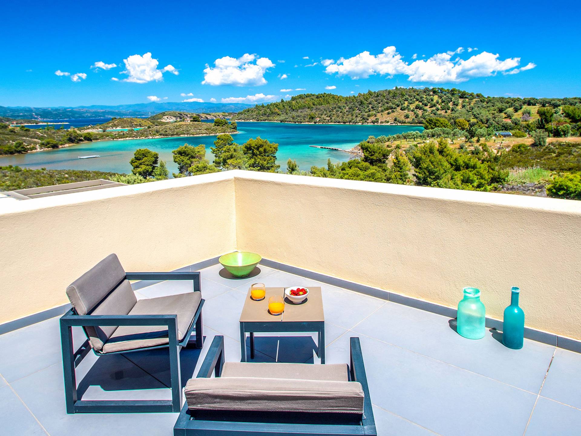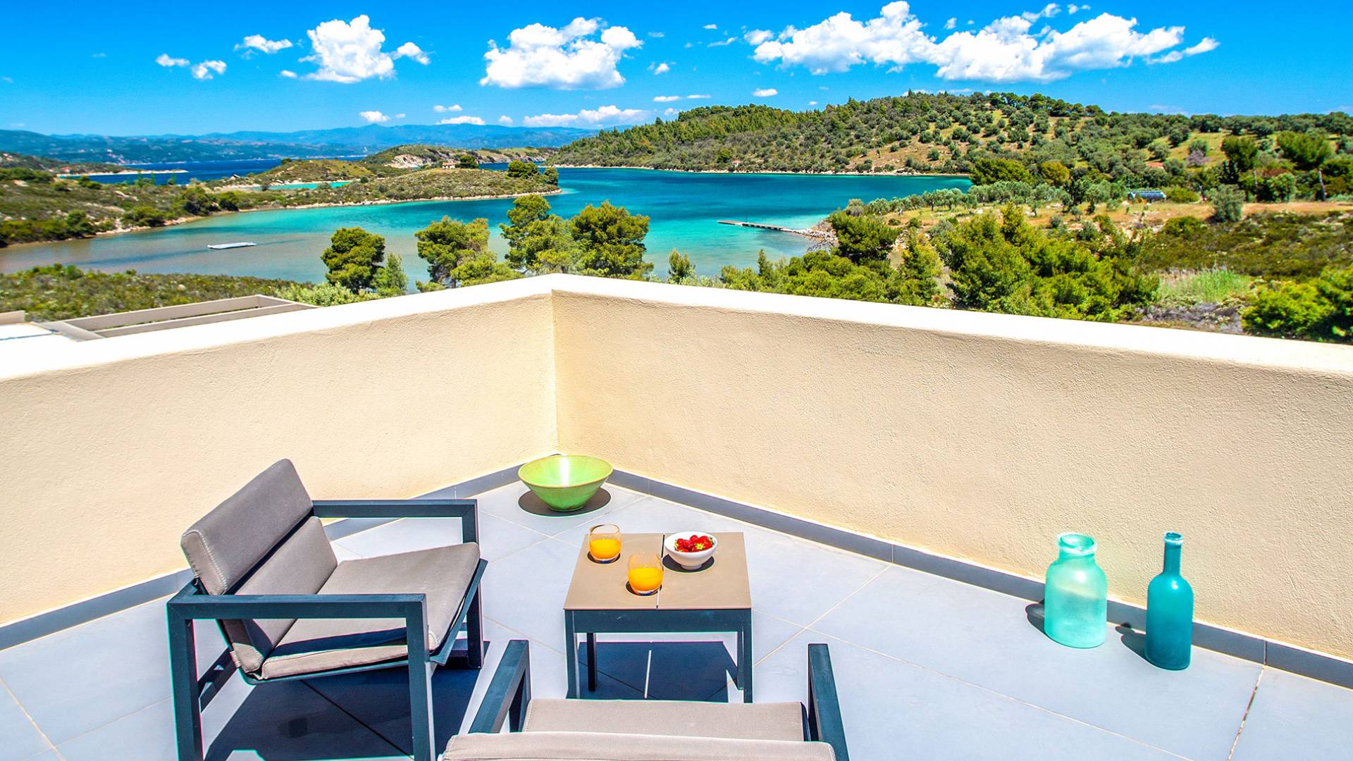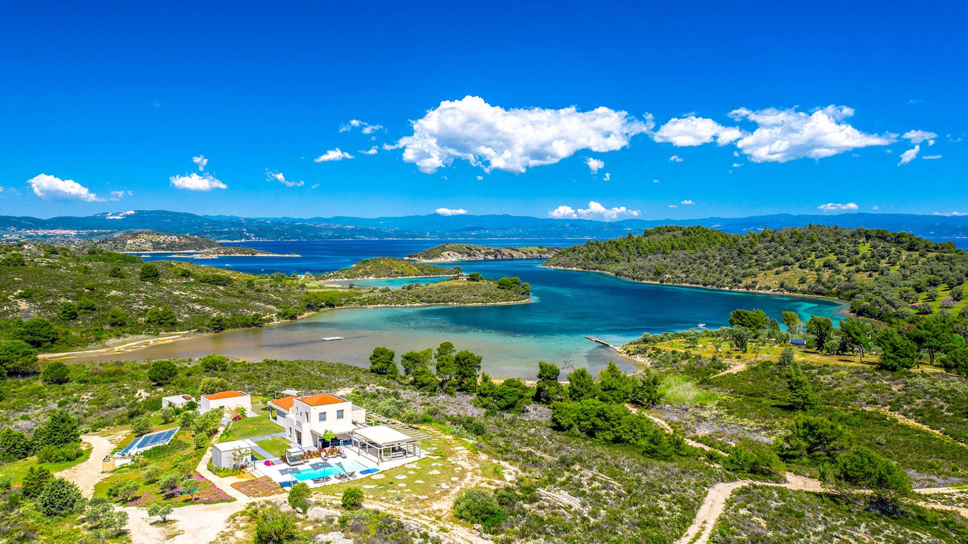 Захватывающая панорама, открывающая вид на обе бухты, море, простирающееся так далеко, насколько хватит глаз - до мифической горы Афон, лежит на горизонте - все эти природные богатства объединяются, чтобы сделать уединение последней мечты