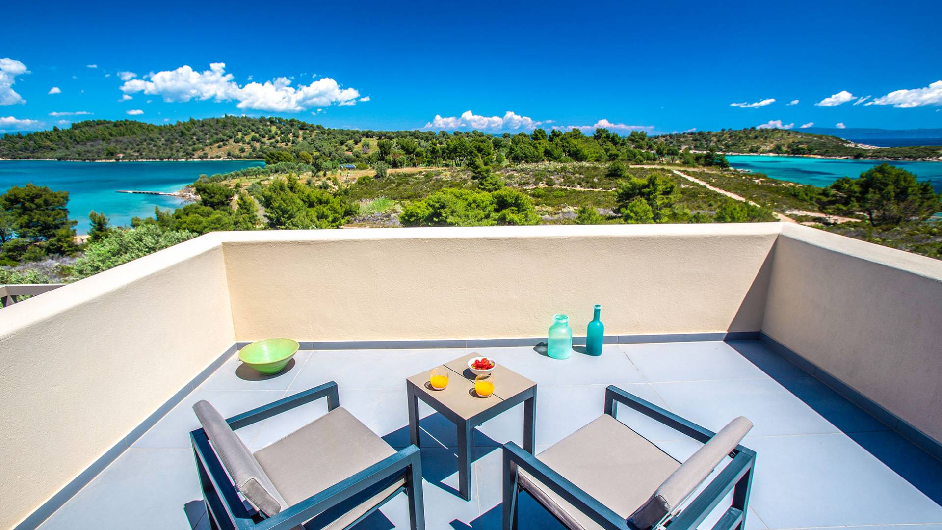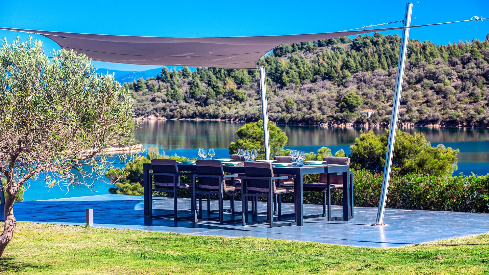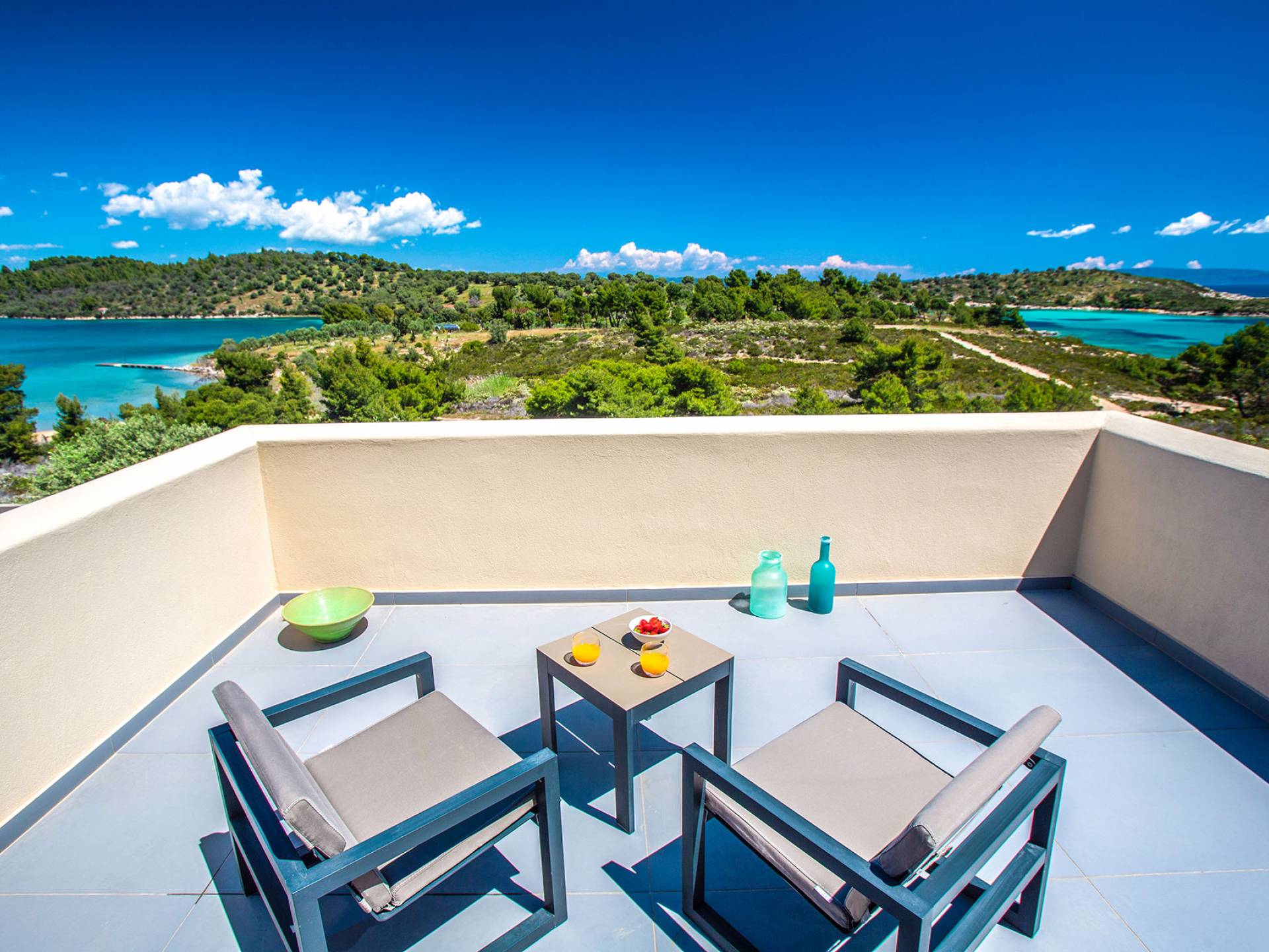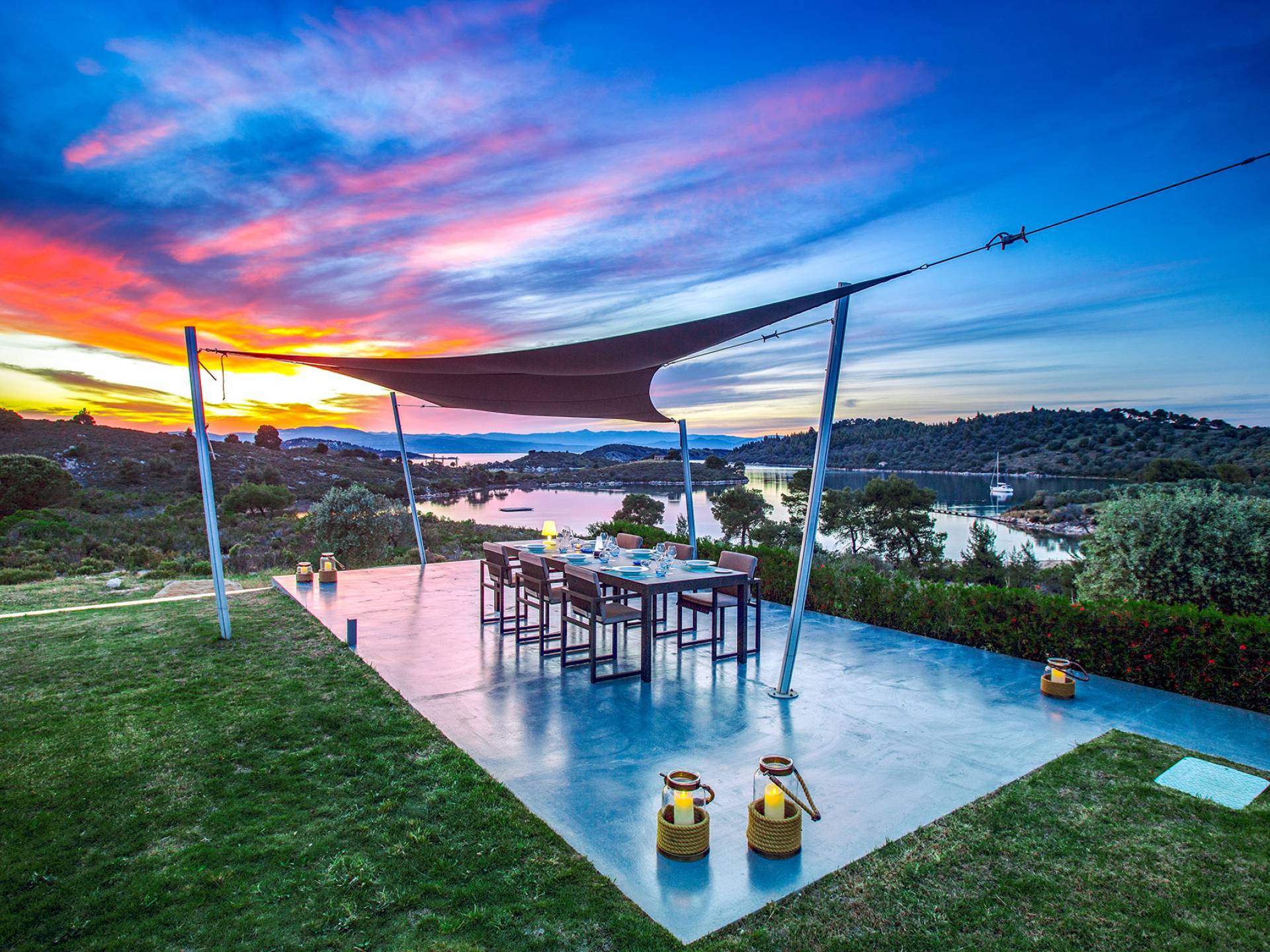 Захватывающая панорама, открывающая вид на обе бухты, море, простирающееся так далеко, насколько хватит глаз - до мифической горы Афон, лежит на горизонте - все эти природные богатства объединяются, чтобы сделать уединение последней мечты