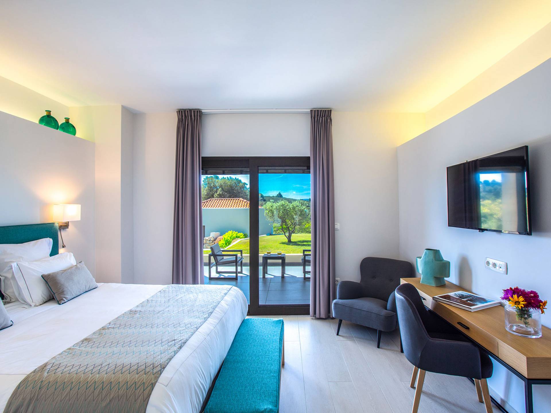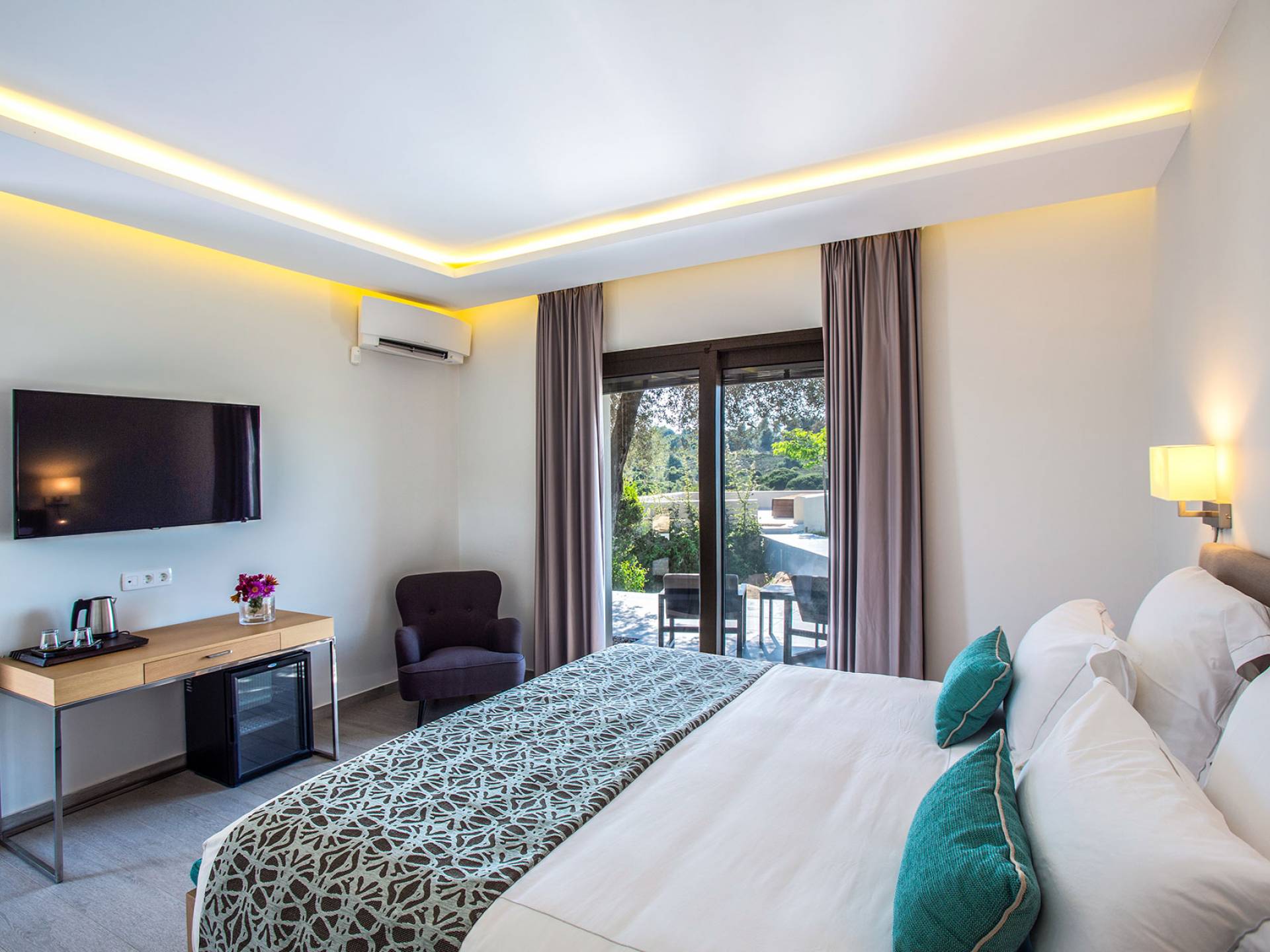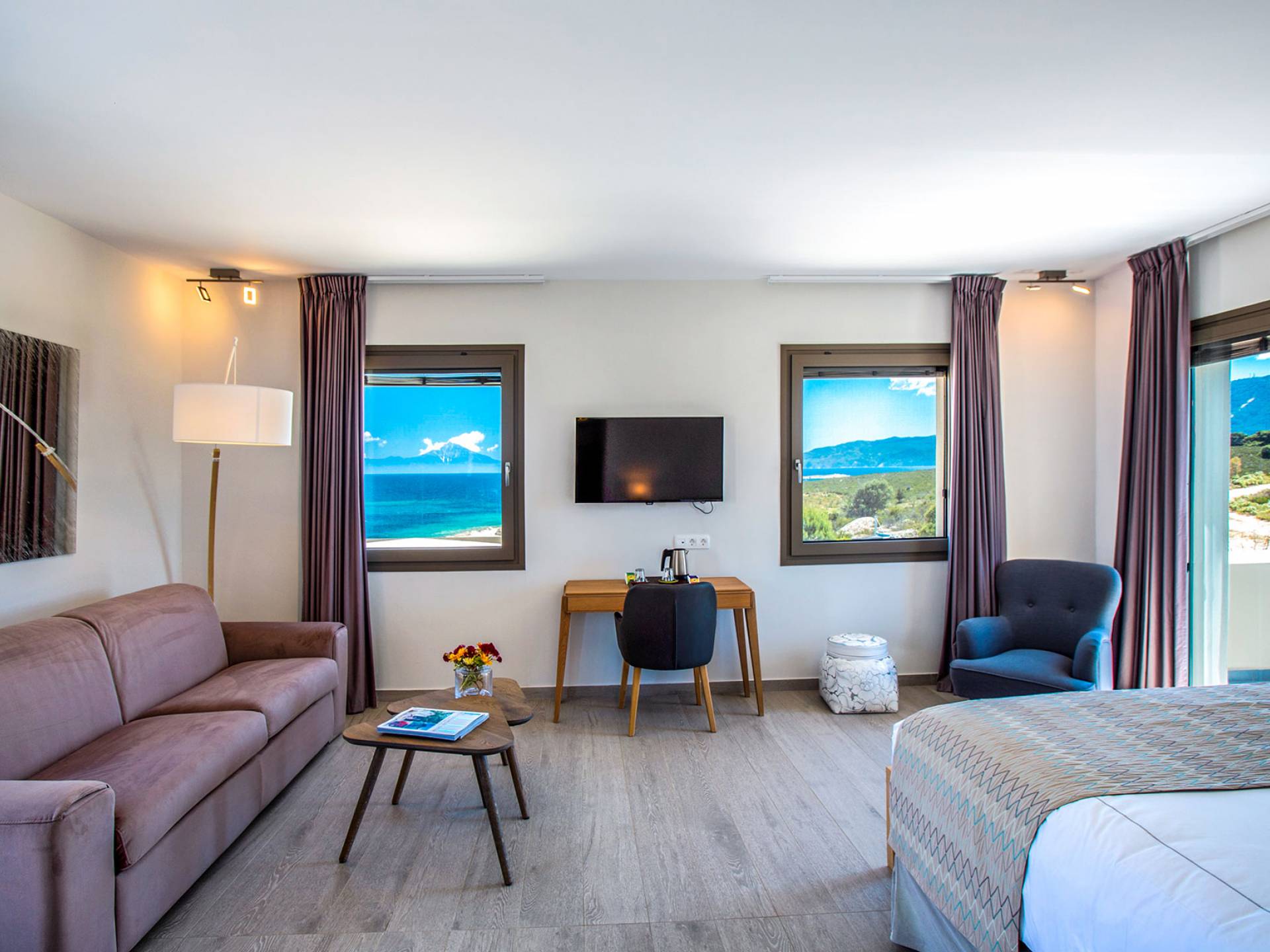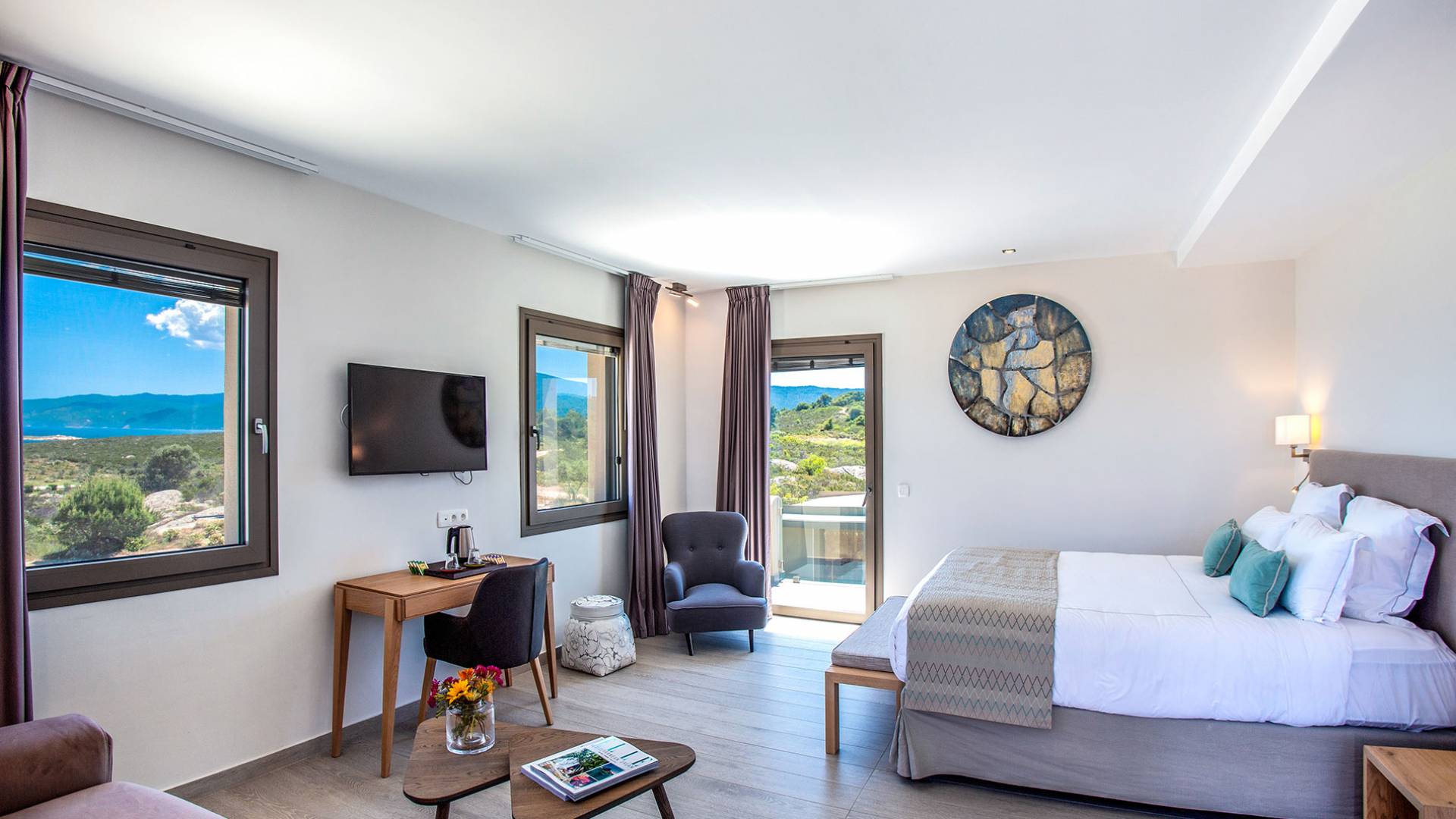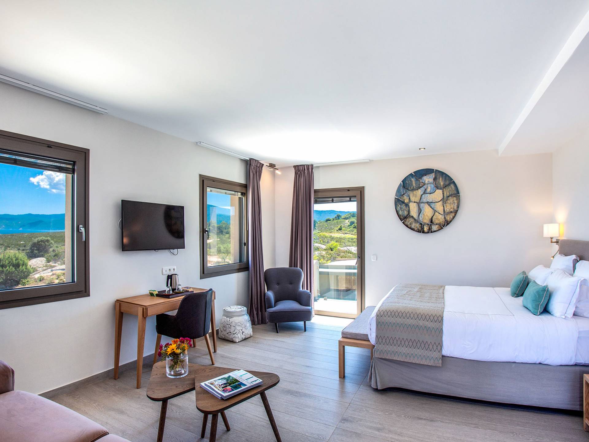 Захватывающая панорама, открывающая вид на обе бухты, море, простирающееся так далеко, насколько хватит глаз - до мифической горы Афон, лежит на горизонте - все эти природные богатства объединяются, чтобы сделать уединение последней мечты