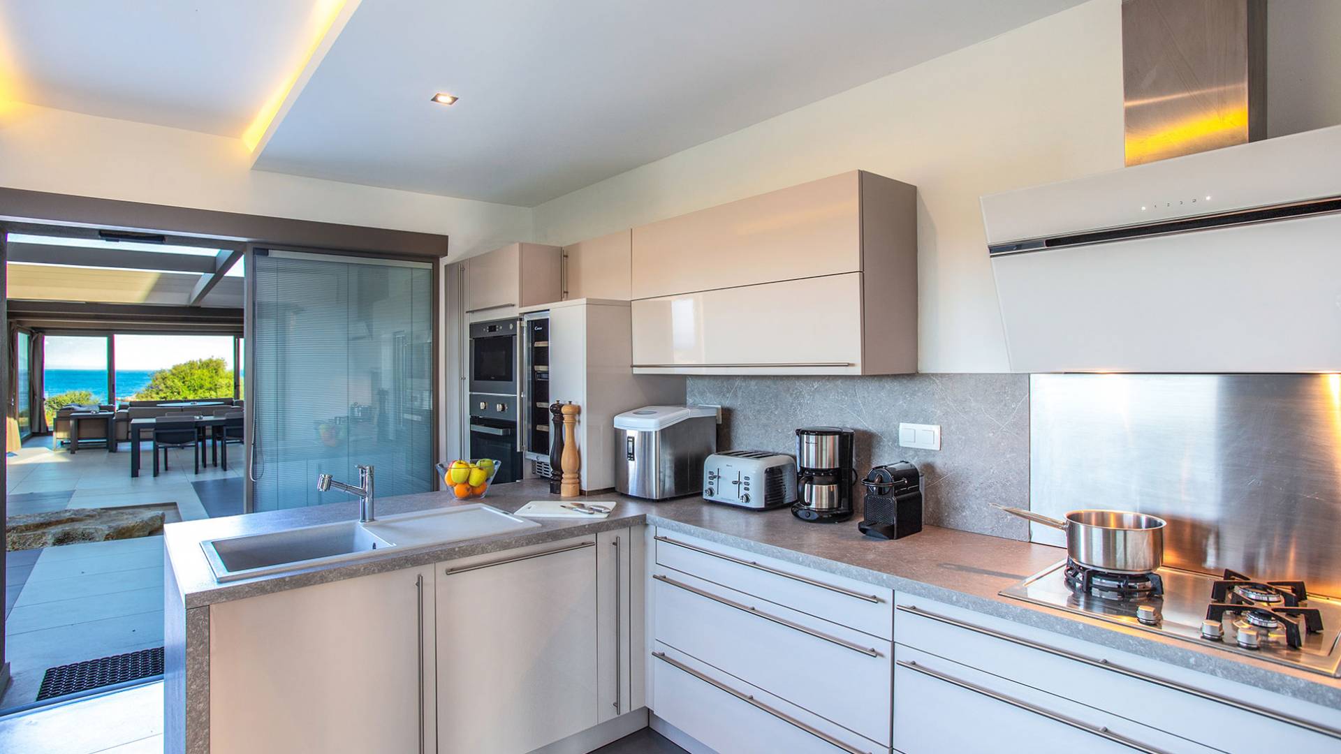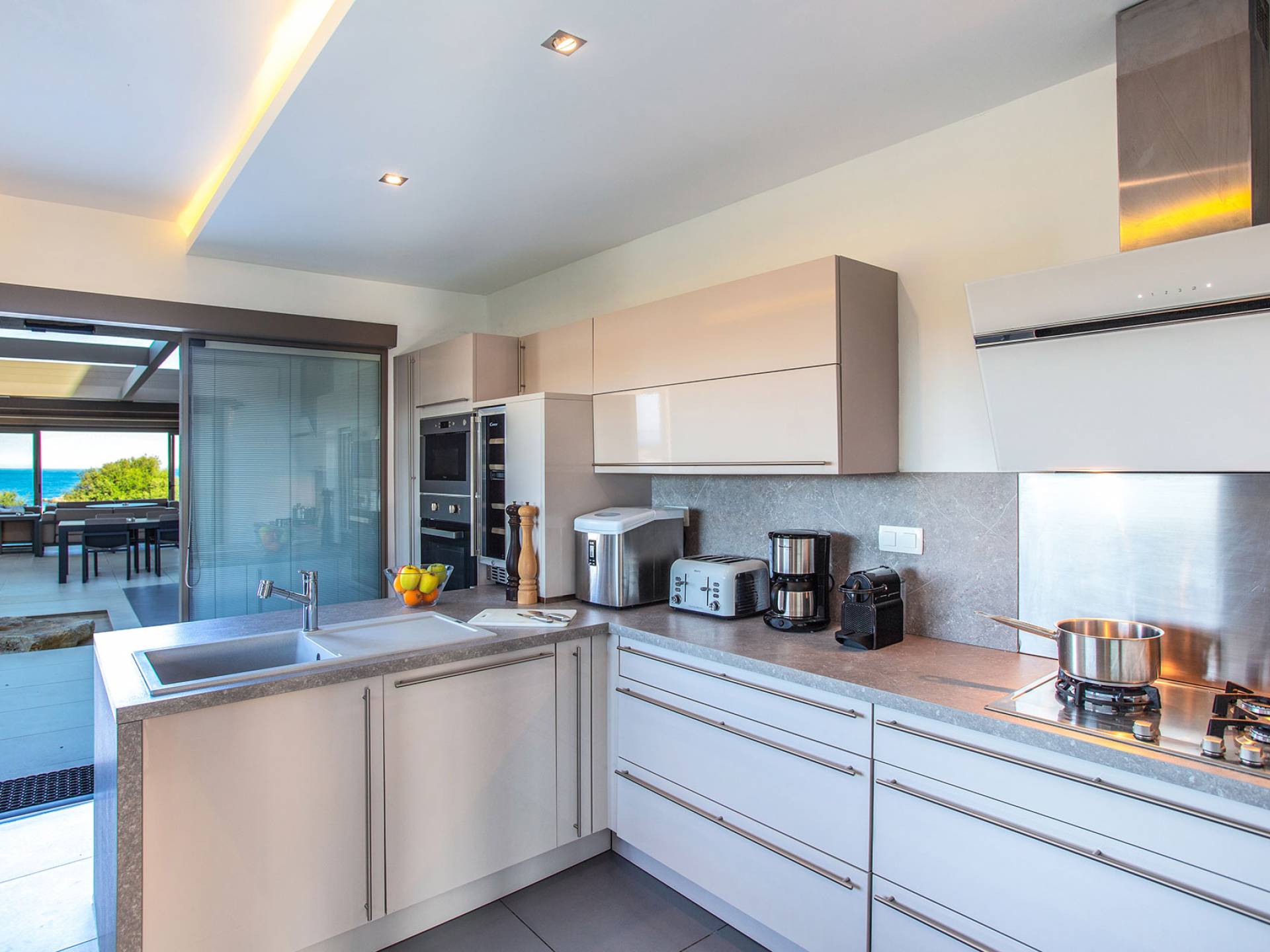 Современная кухня полностью оборудована по высоким стандартам и оснащена бытовой техникой известных международных брендов. Современная мебель была тщательно подобрана, чтобы символизировать спокойную, но приятную атмосферу острова.
