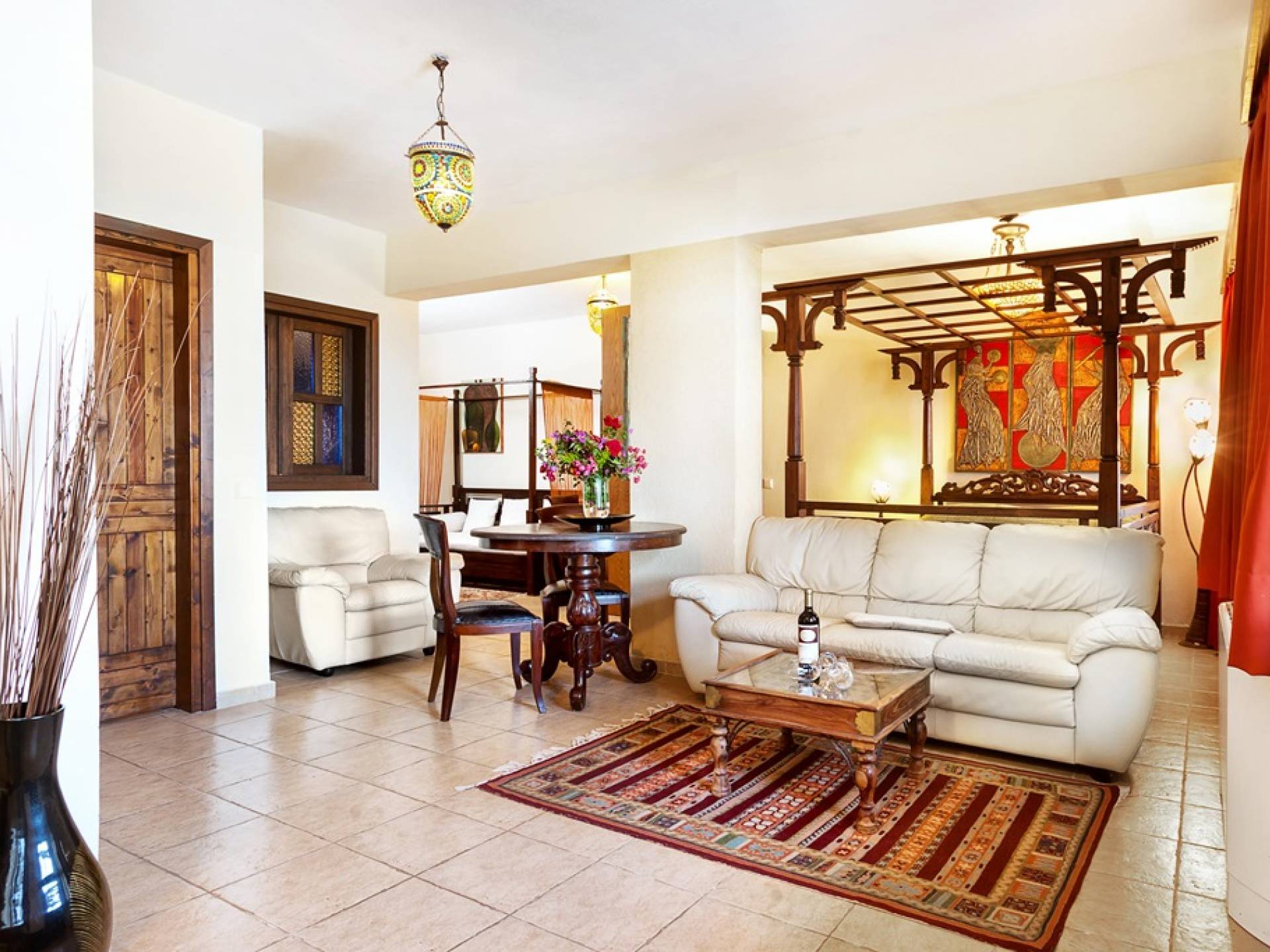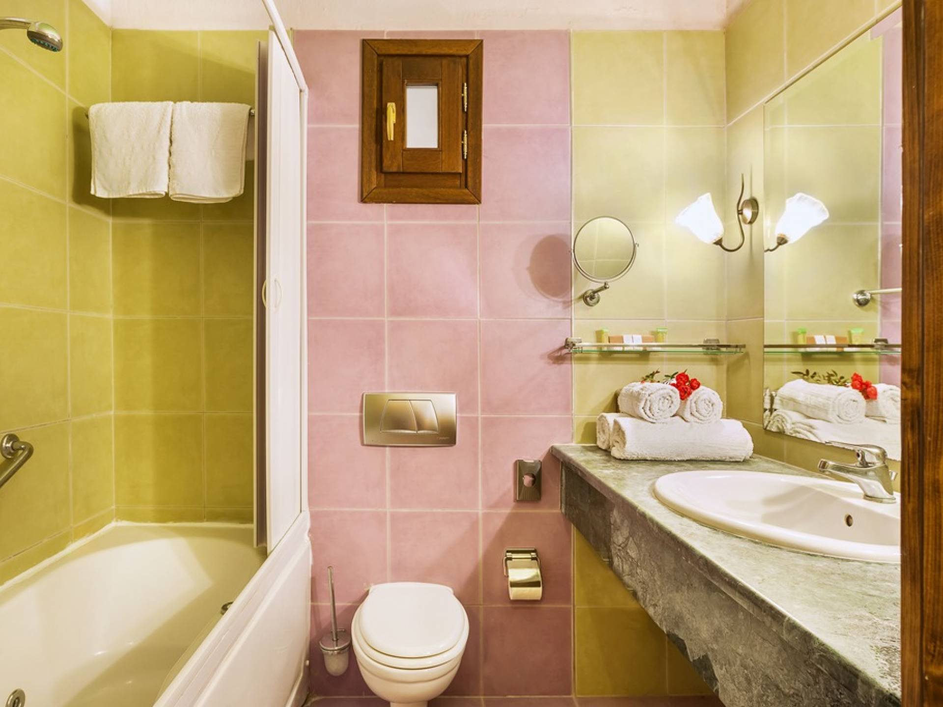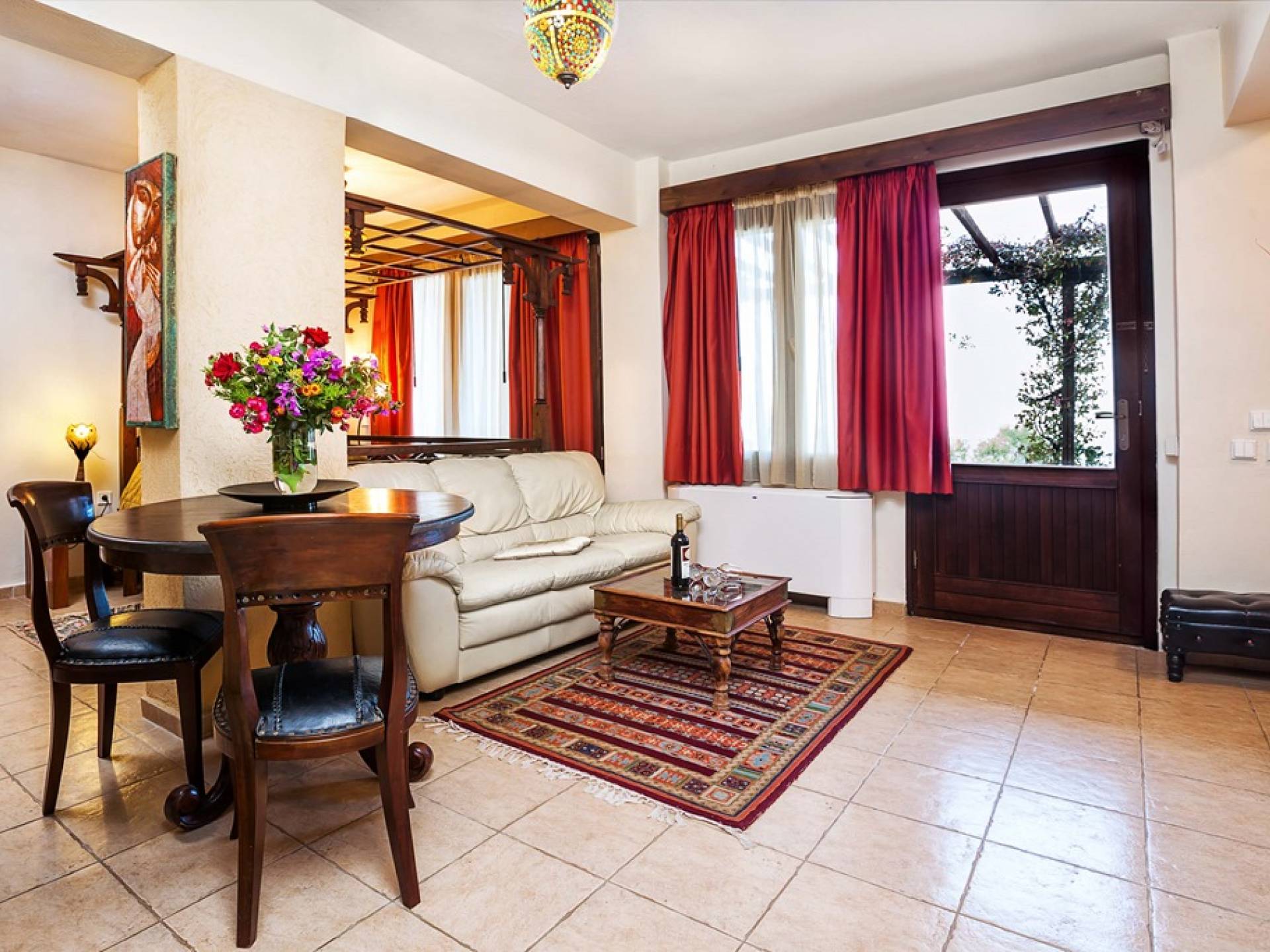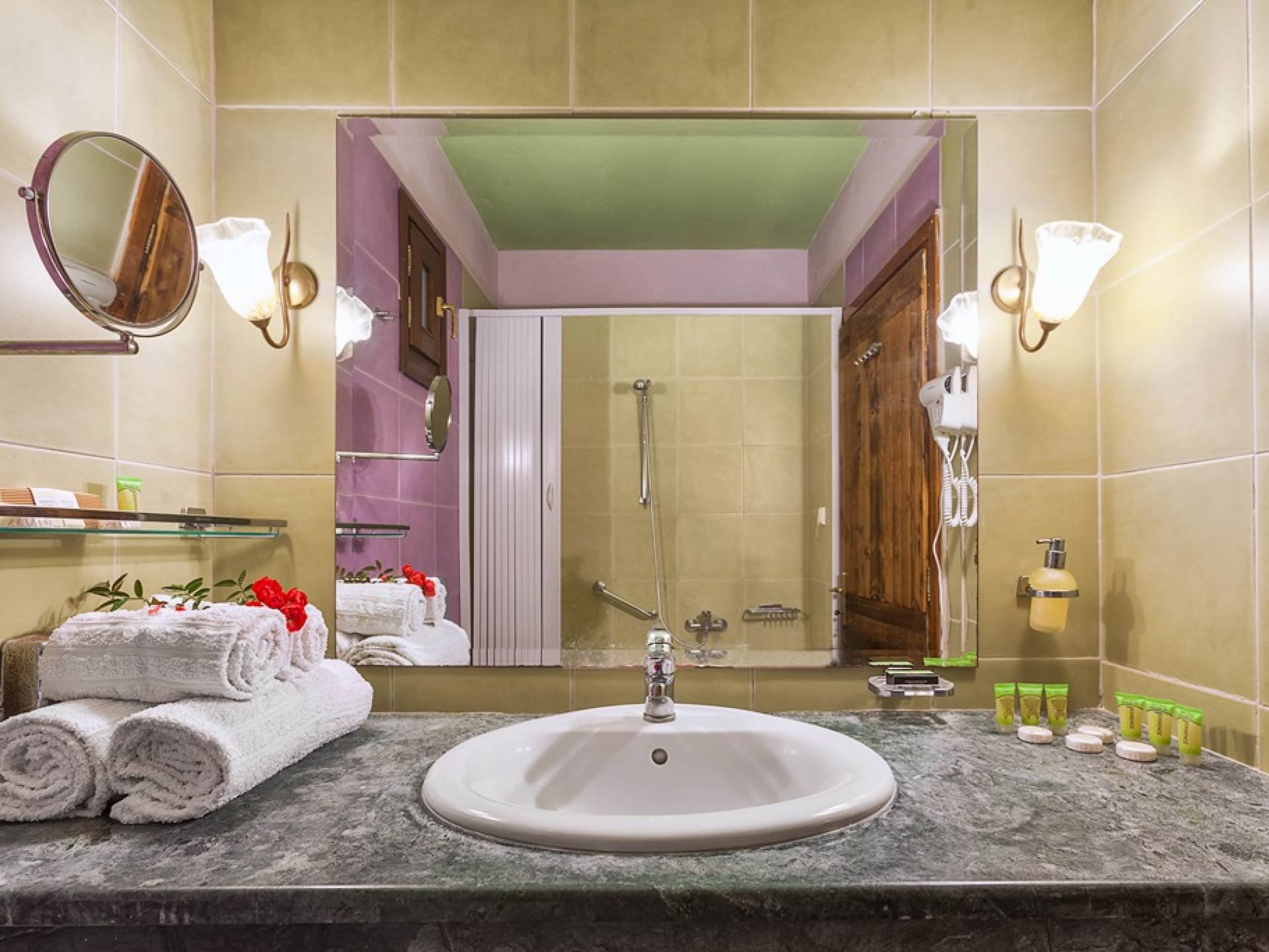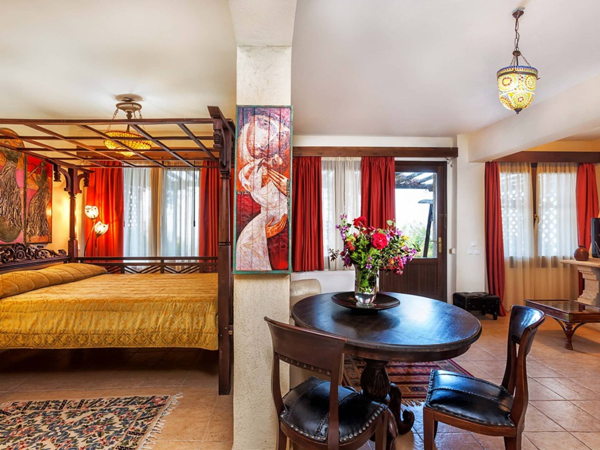 На Афоне есть 6 вилл, элегантно оформленных в естественной цветовой гамме с интенсивным сочетанием дерева и камня. Виллы, в которых есть 2 люкса и 2 спальни с двуспальными кроватями, могут вместить до 6 человек. В люксе на первом этаже есть двуспальная кровать, кухня, столовая, а также большая гостиная перед каменным камином, предлагая комфорт для действительно уникального отдыха как летом, так и зимой. Джакузи на двоих и сауна или гидромассаж, которые также доступны, в зависимости от выбранного вами номера, определенно подарят вам моменты расслабления и безмятежности.
