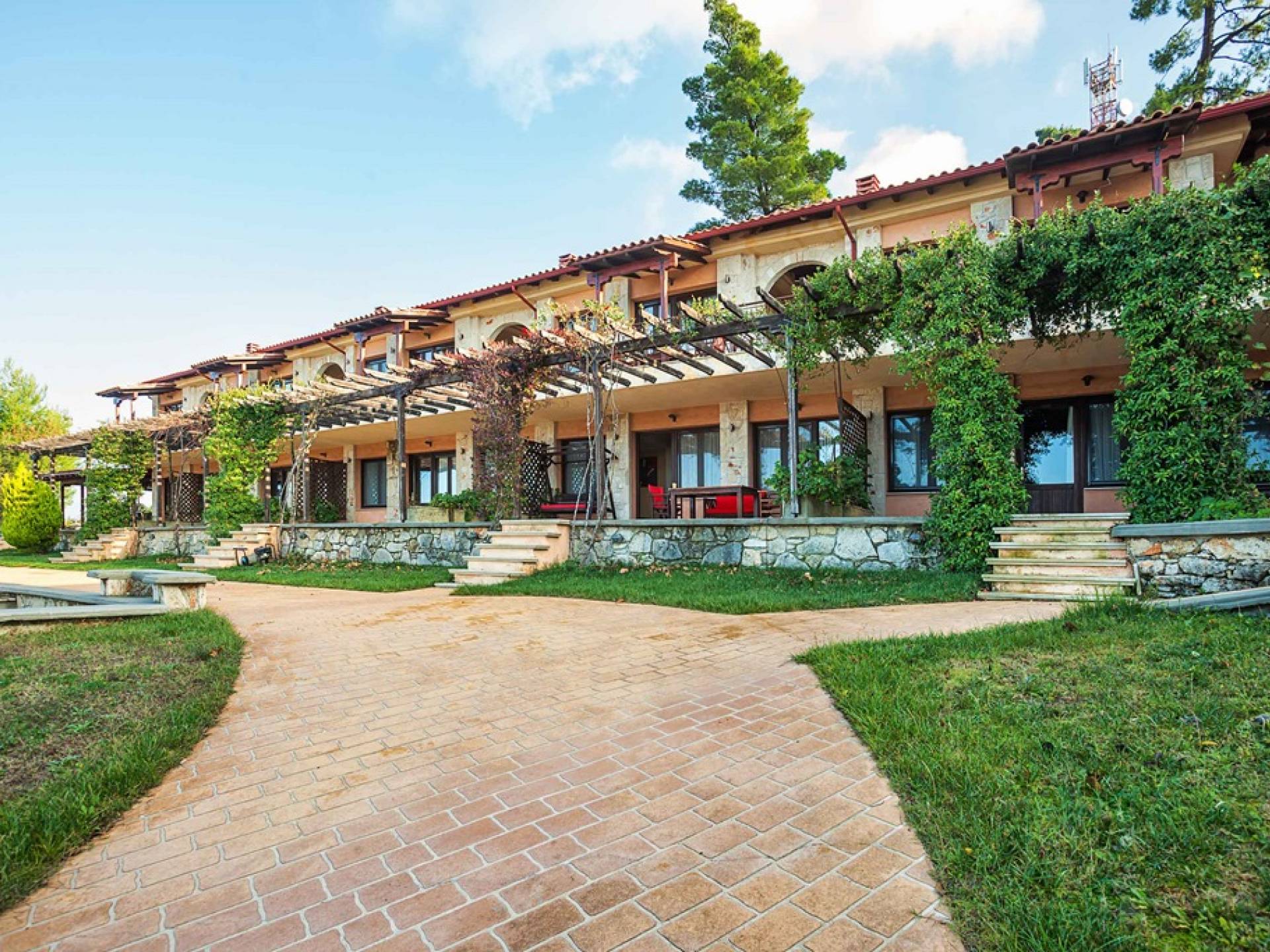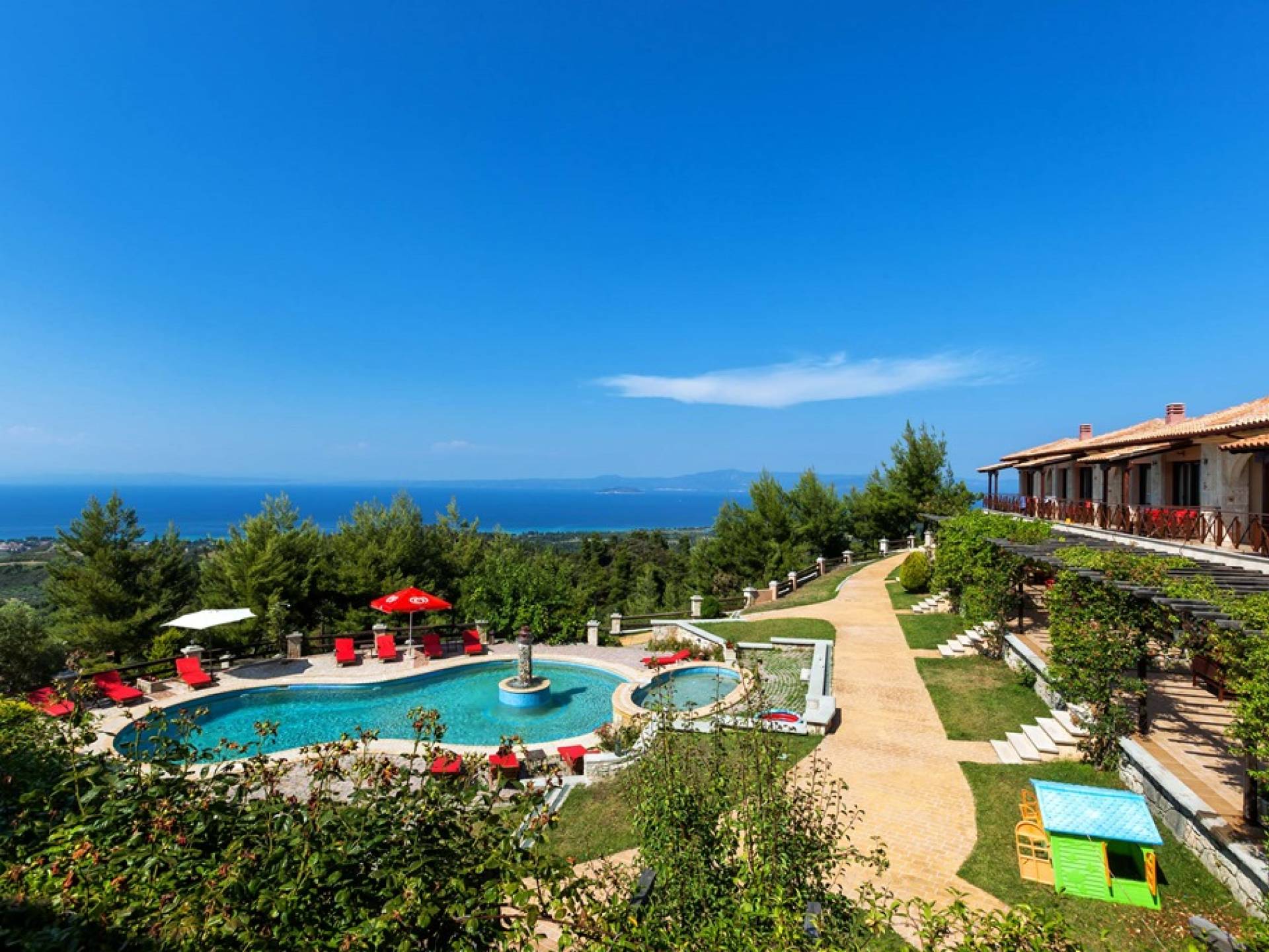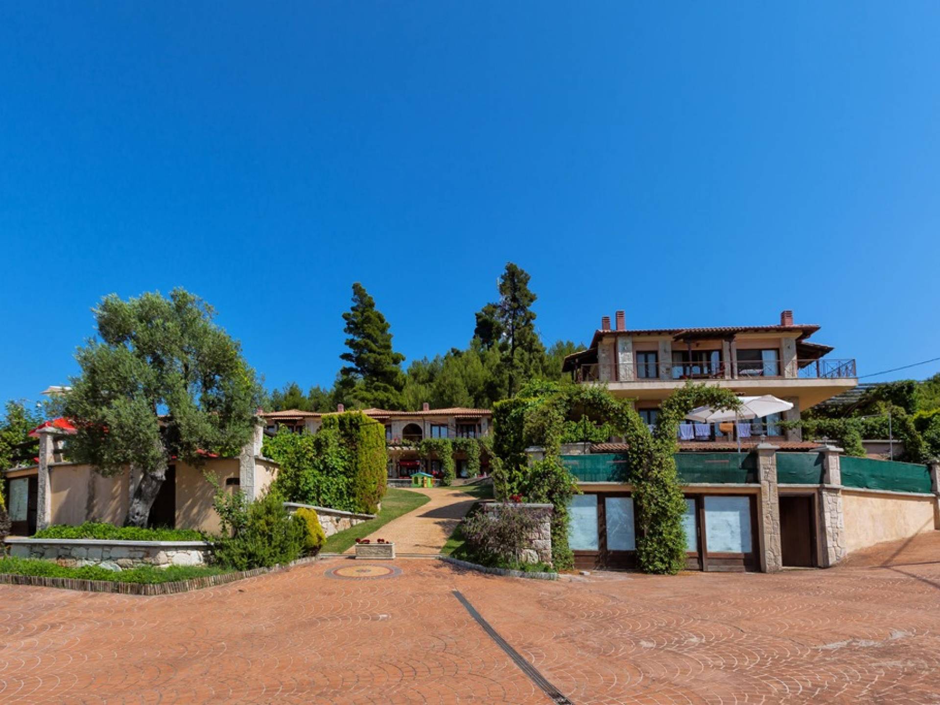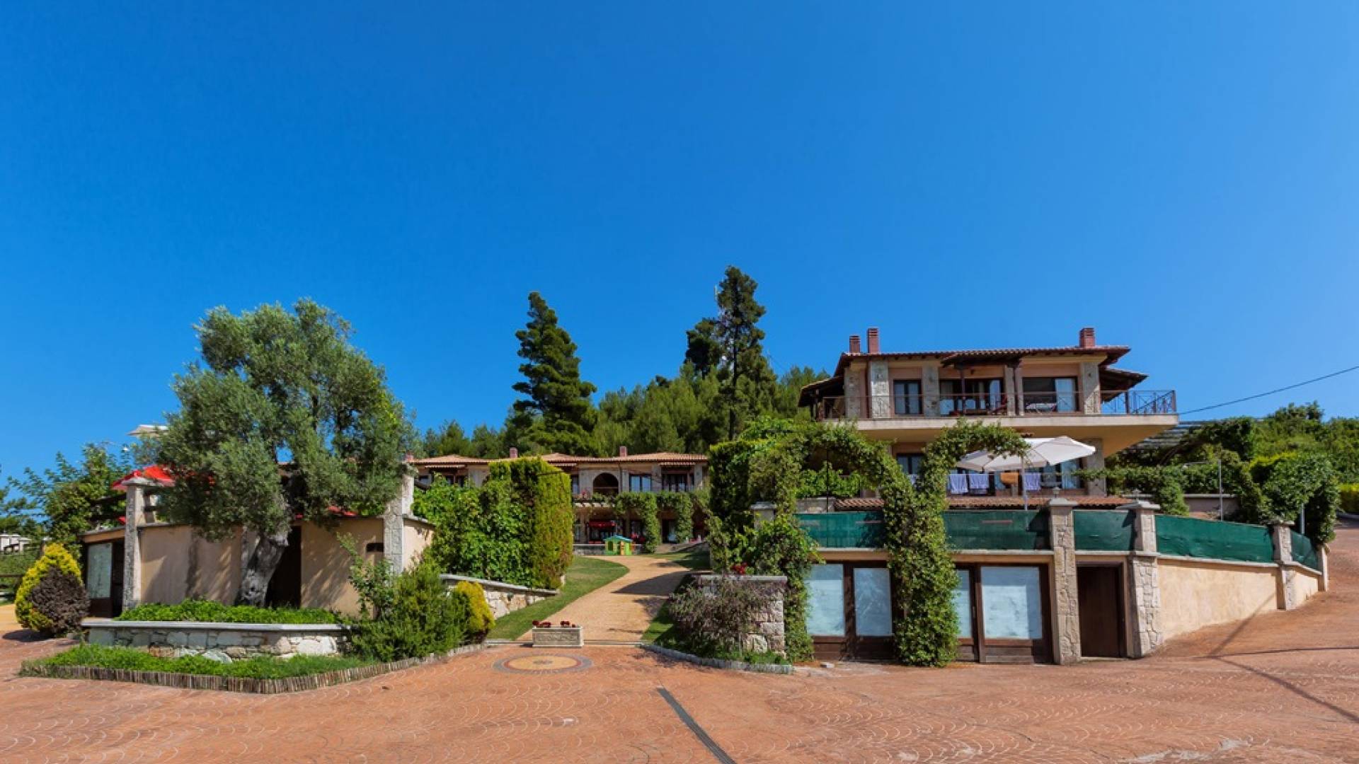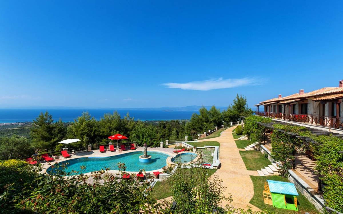 Это приятное и безмятежное место включает в себя три мастерски построенных жилых комплекса, из которых открывается панорамный вид на залив Торонайос. Все резиденции (2 частные виллы, 13 роскошных вилл, 12 люксов) выходят окнами на сады, бассейны и, конечно же, на бескрайнюю синеву моря и неба.