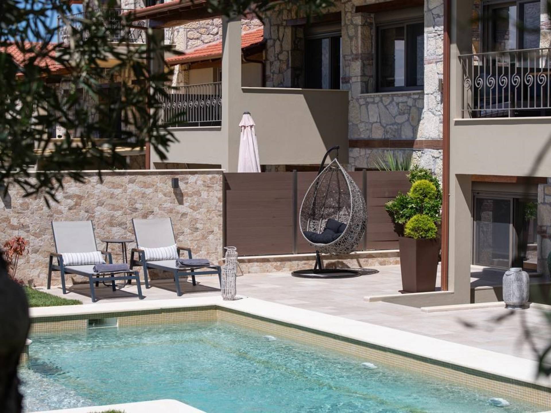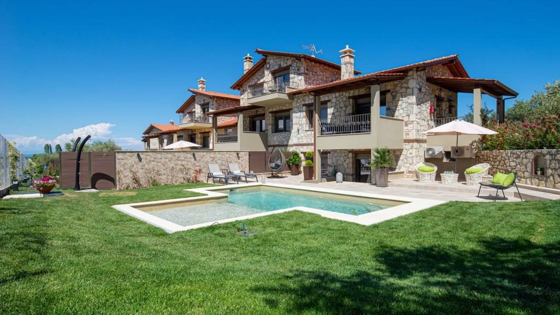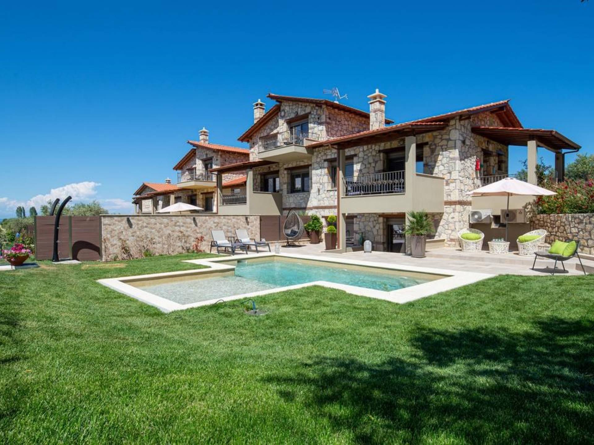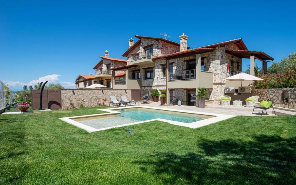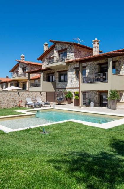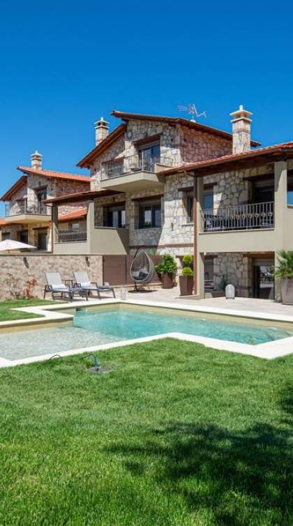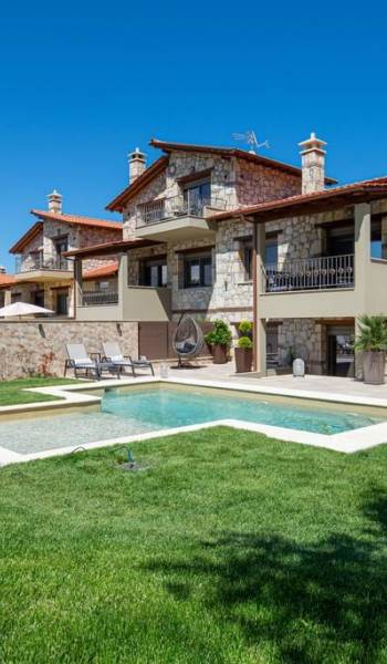Комплекс Five Senses Villas состоит из трех двухэтажных и двух трехэтажных вилл площадью от 110 до 150 кв.м. Их основной характеристикой является сочетание элегантности и комфорта. Кроме того, они полностью построены из местных материалов, камня с Афитоса и каштанового дерева с горы Афон. Их строительство завершено в апреле 2016 года. Виллы состоят из двух или трех спален, ванной комнаты с душем и джакузи. Сбегите от стресса повседневной жизни и испытайте моменты уникального расслабления и удовольствия.