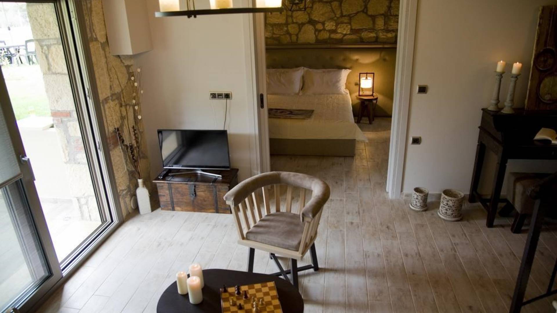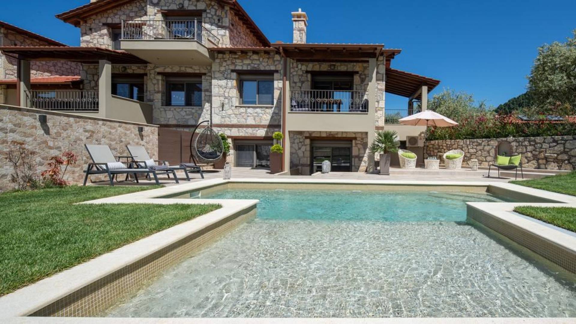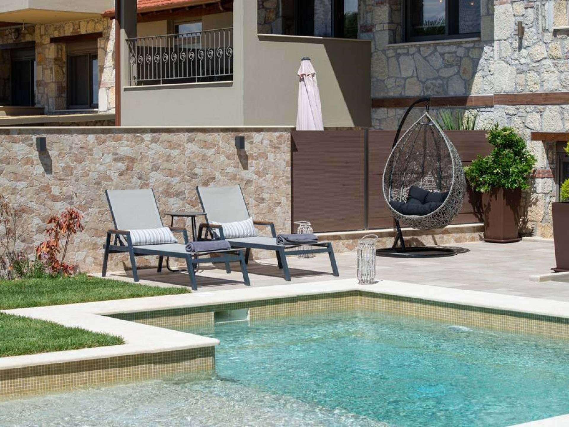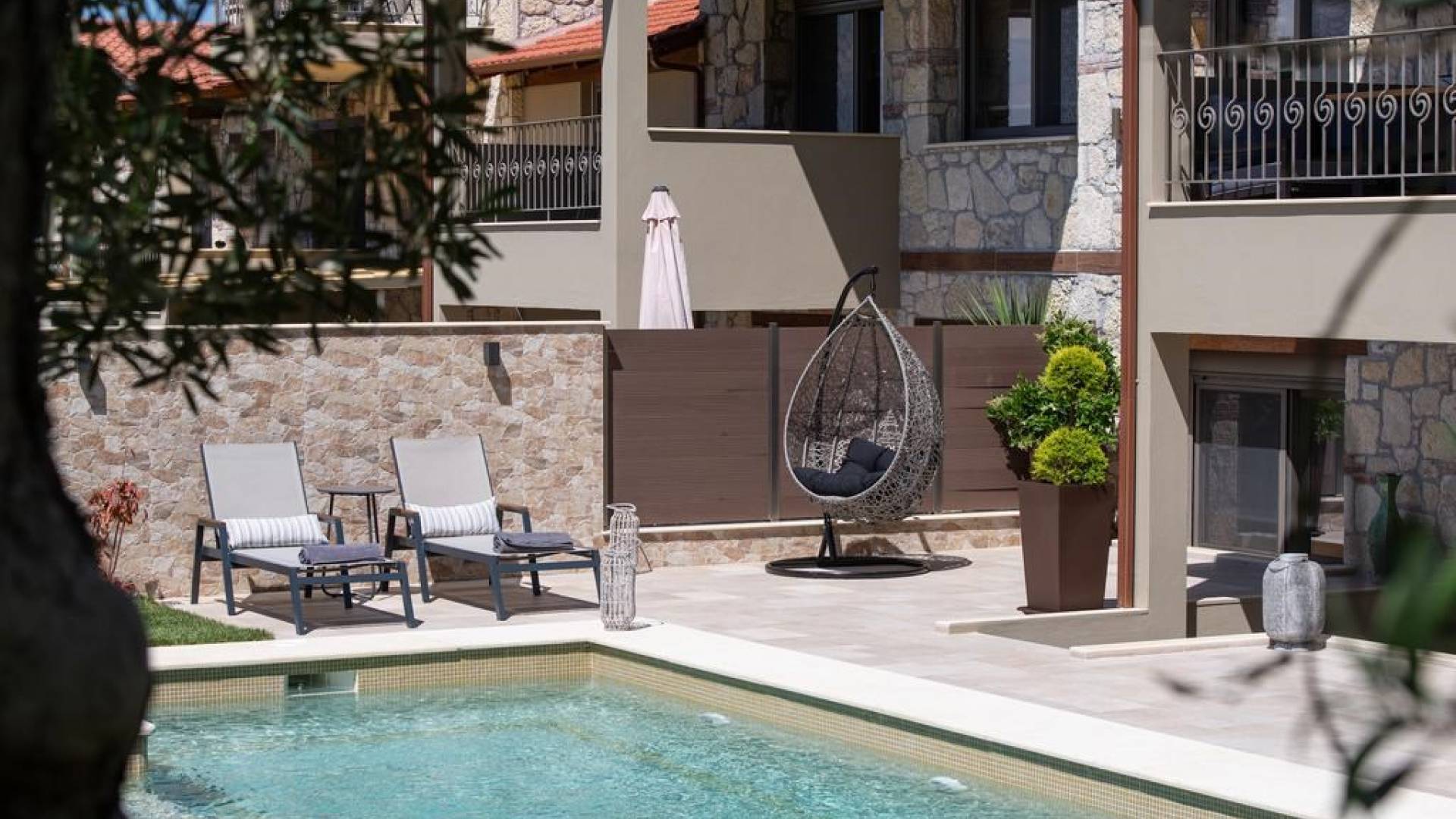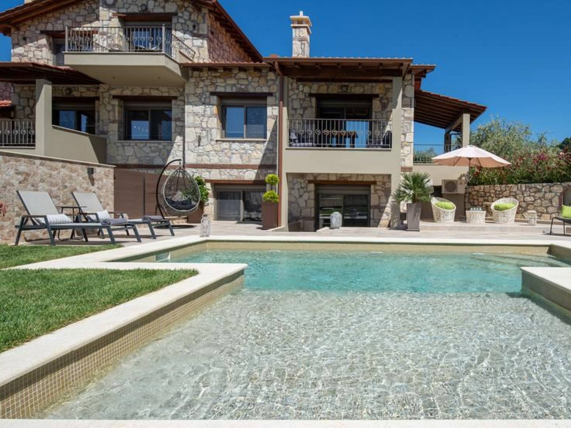Комплекс Five Senses Villas состоит из трех двухэтажных и двух трехэтажных вилл площадью от 110 до 150 кв.м. Их основной характеристикой является сочетание элегантности и комфорта. Кроме того, они полностью построены из местных материалов, камня с Афитоса и каштанового дерева с горы Афон. Их строительство завершено в апреле 2016 года. Виллы состоят из двух или трех спален, ванной комнаты с душем и джакузи. Сбегите от стресса повседневной жизни и испытайте моменты уникального расслабления и удовольствия.