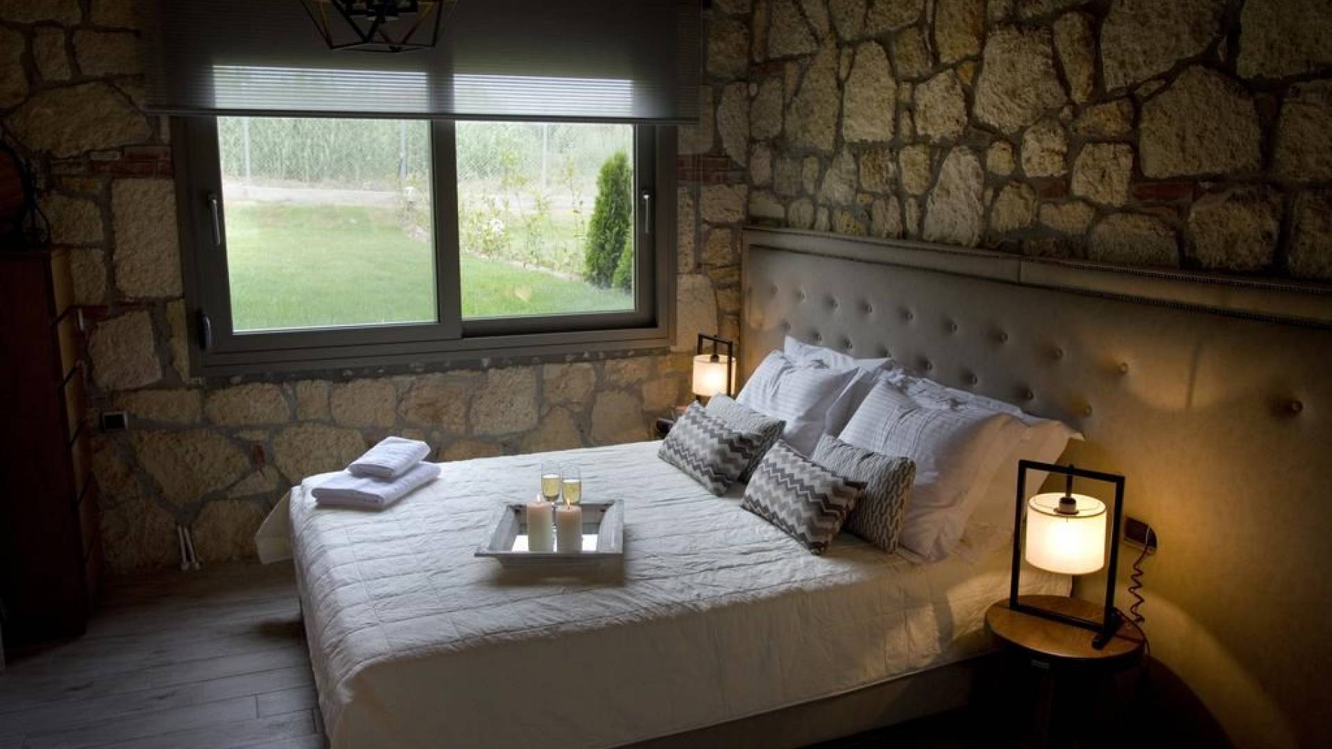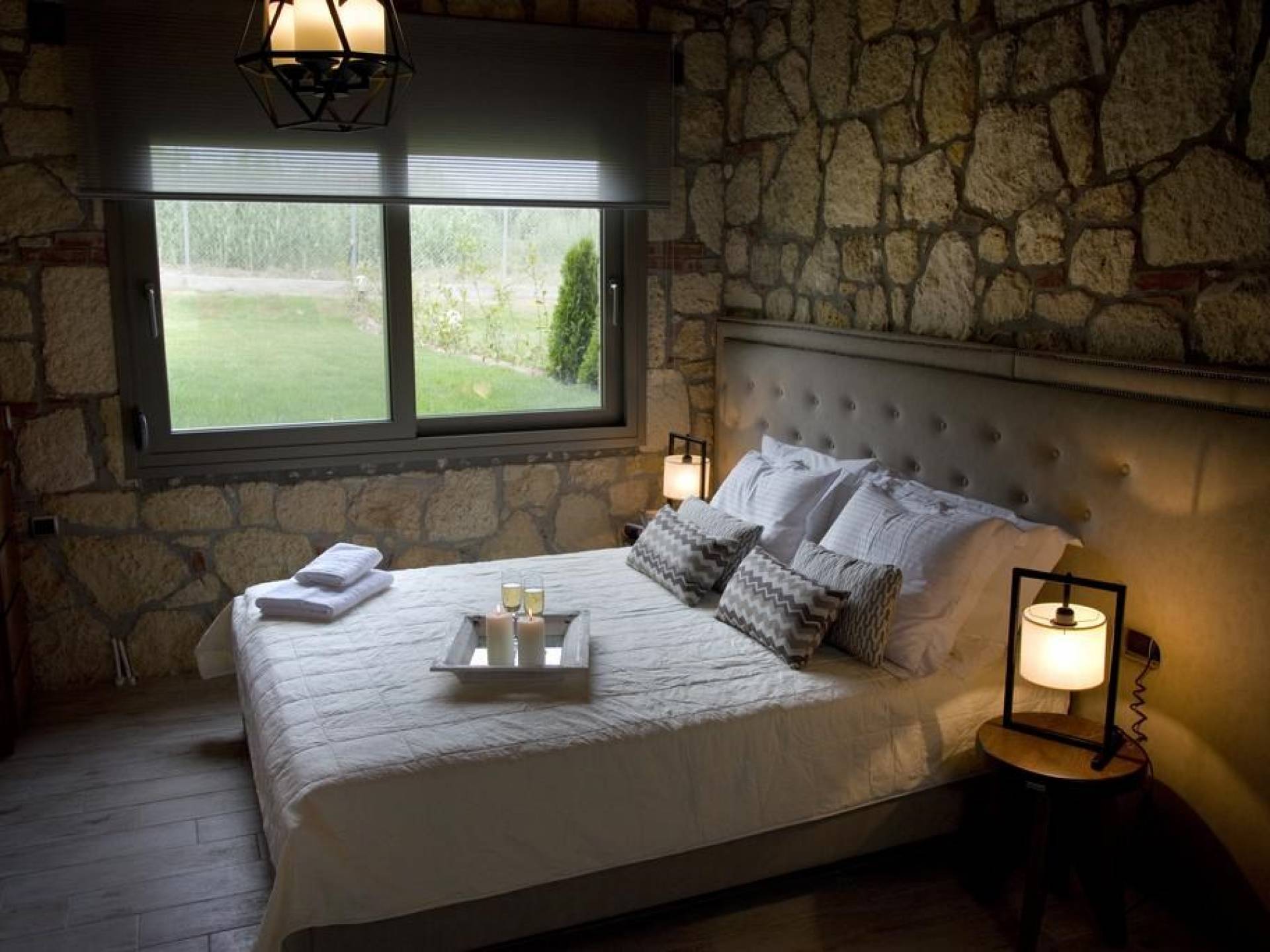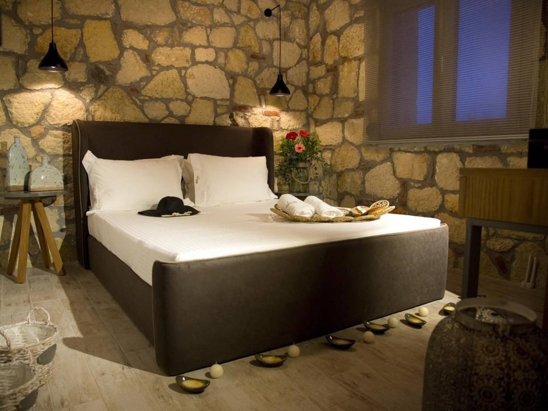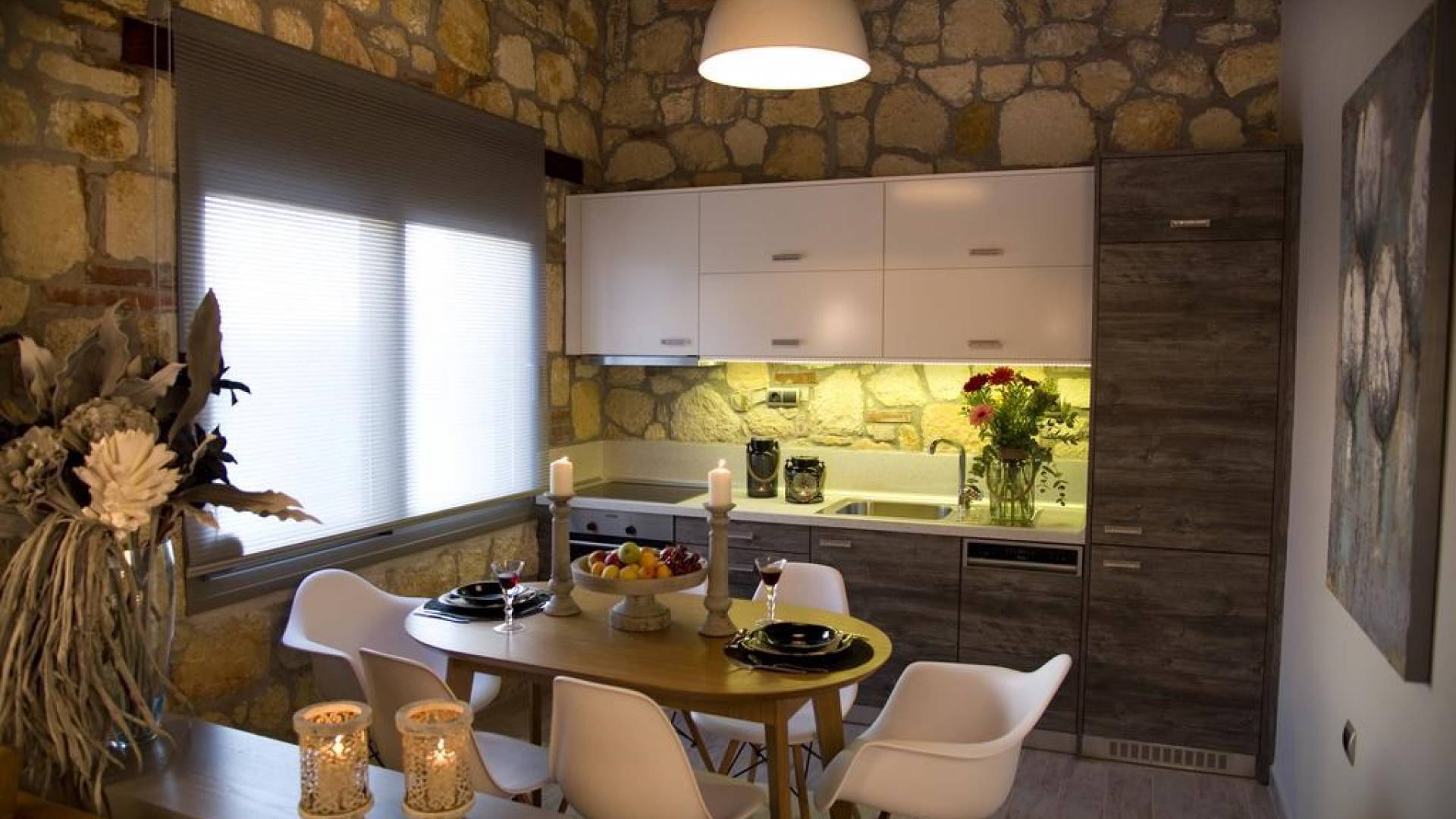 Вилла Осфриси построена на разных уровнях. Он характеризуется просторными и солнечными комнатами. Его дизайн представляет собой уникальную архитектурную линию, сочетающую камень с современными элементами. На первом уровне находится гостиная с диваном-кроватью, спальня с ванной комнатой и веранда с выходом в сад. На втором уровне находится лаунж-зона, современная кухня со столовой, спальня, санузел с душевой кабиной и главный вход. На обоих уровнях есть меблированные веранды.