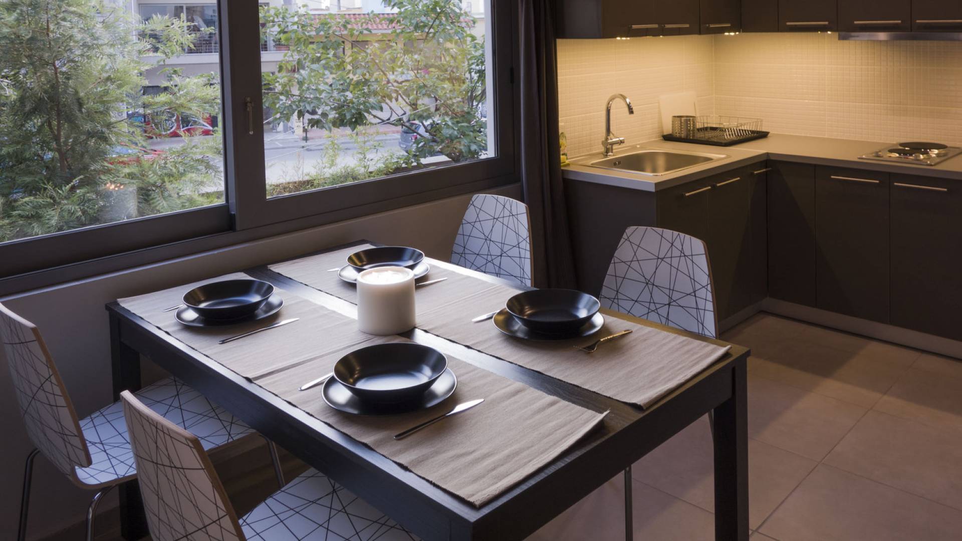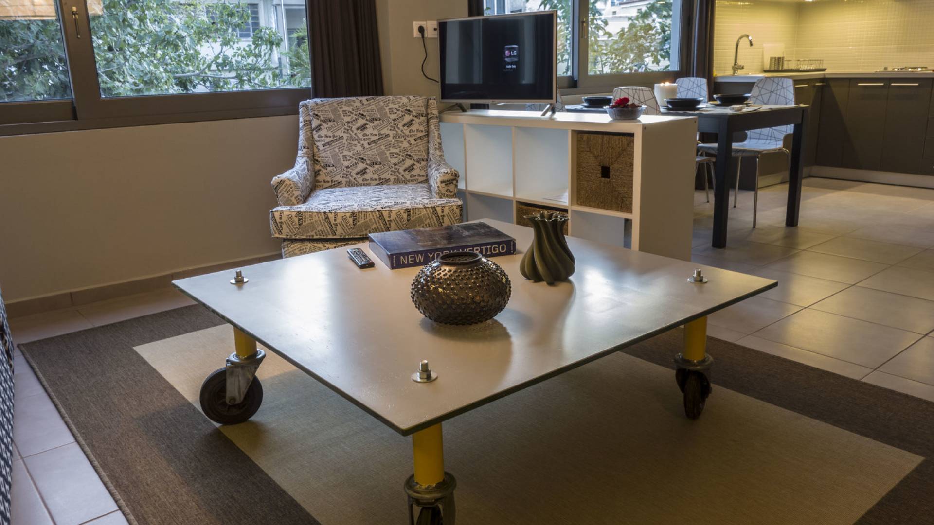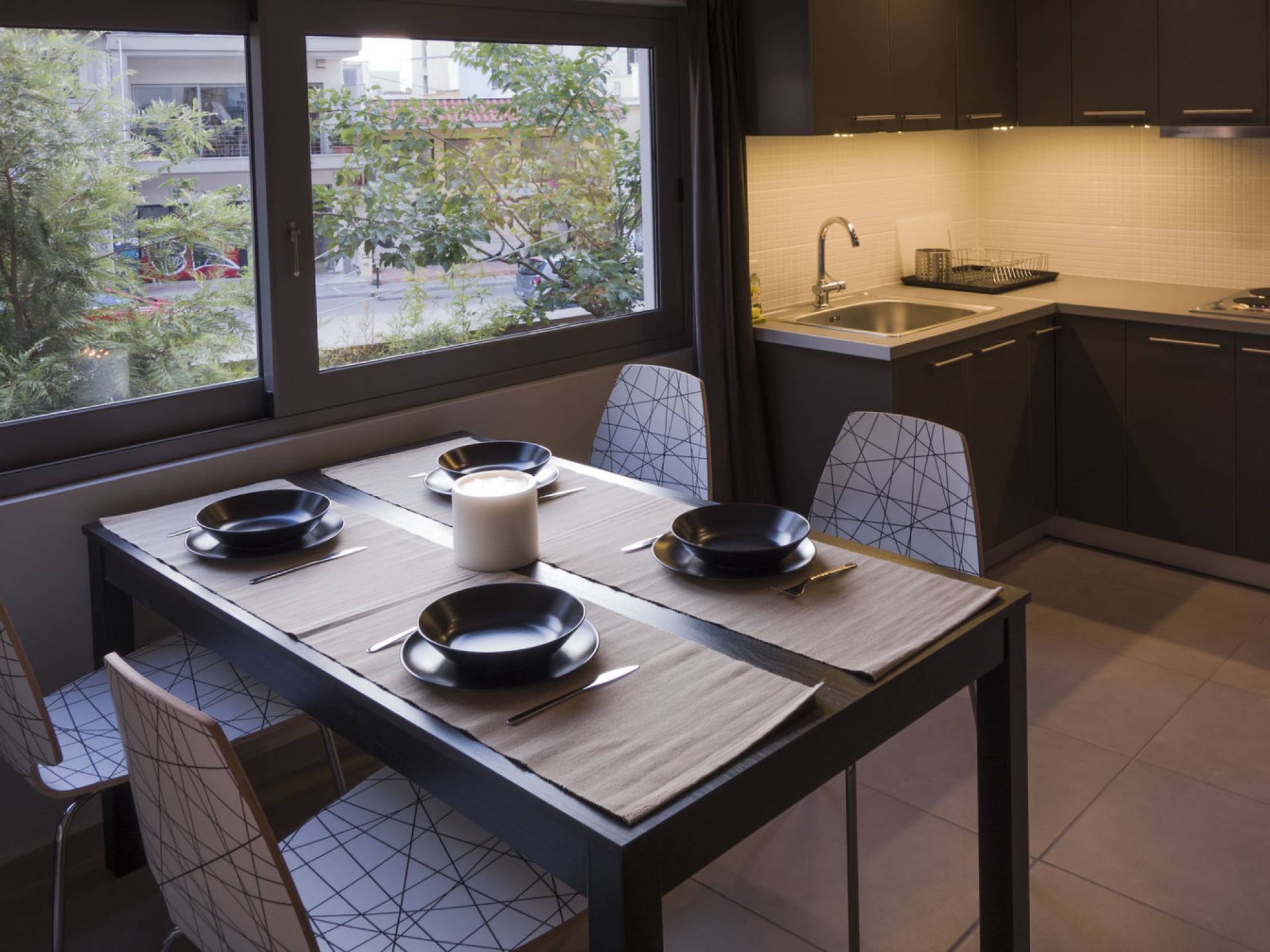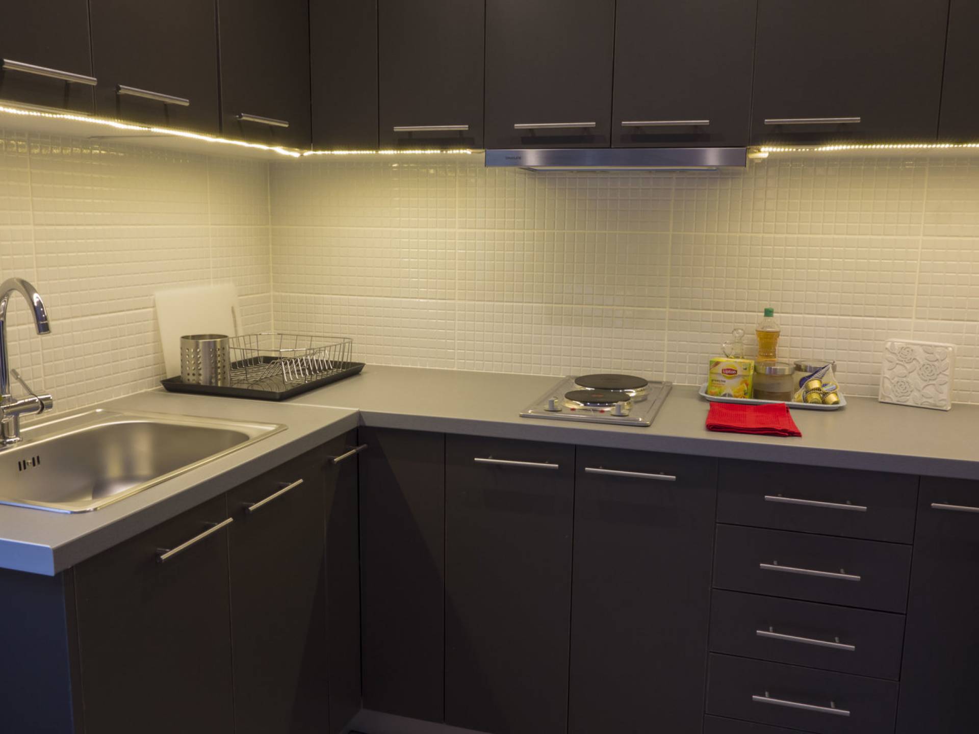 Квартира абсолютно новая 65м2 / 700кв. Кровать размера «king-size» (180x200 см) с очень удобным матрасом, верхним матрасом из натурального латекса, подушками высшего качества и одеялом с гусиными перьями. Пододеяльник и наволочки изготовлены из 100% хлопка и атласа, чтобы ваш сон стал мечтой. Диван становится еще одной двуспальной кроватью для еще двоих. Кухня полностью оборудована и имеет электрическую плиту со сковородками и кастрюлями для приготовления пищи, микроволновую печь с функцией гриля, большой холодильник, тостер, а также растворимый кофе, чай и сахар на завтрак. Квартира оборудована карточной системой без ключа для открытия как входной двери, так и самой квартиры. В квартире есть сейф с клавиатурой для хранения ценных вещей. Очень быстрый беспроводной интернет.