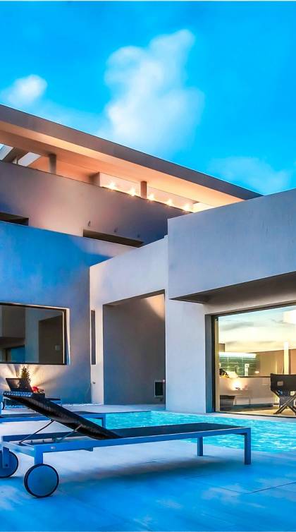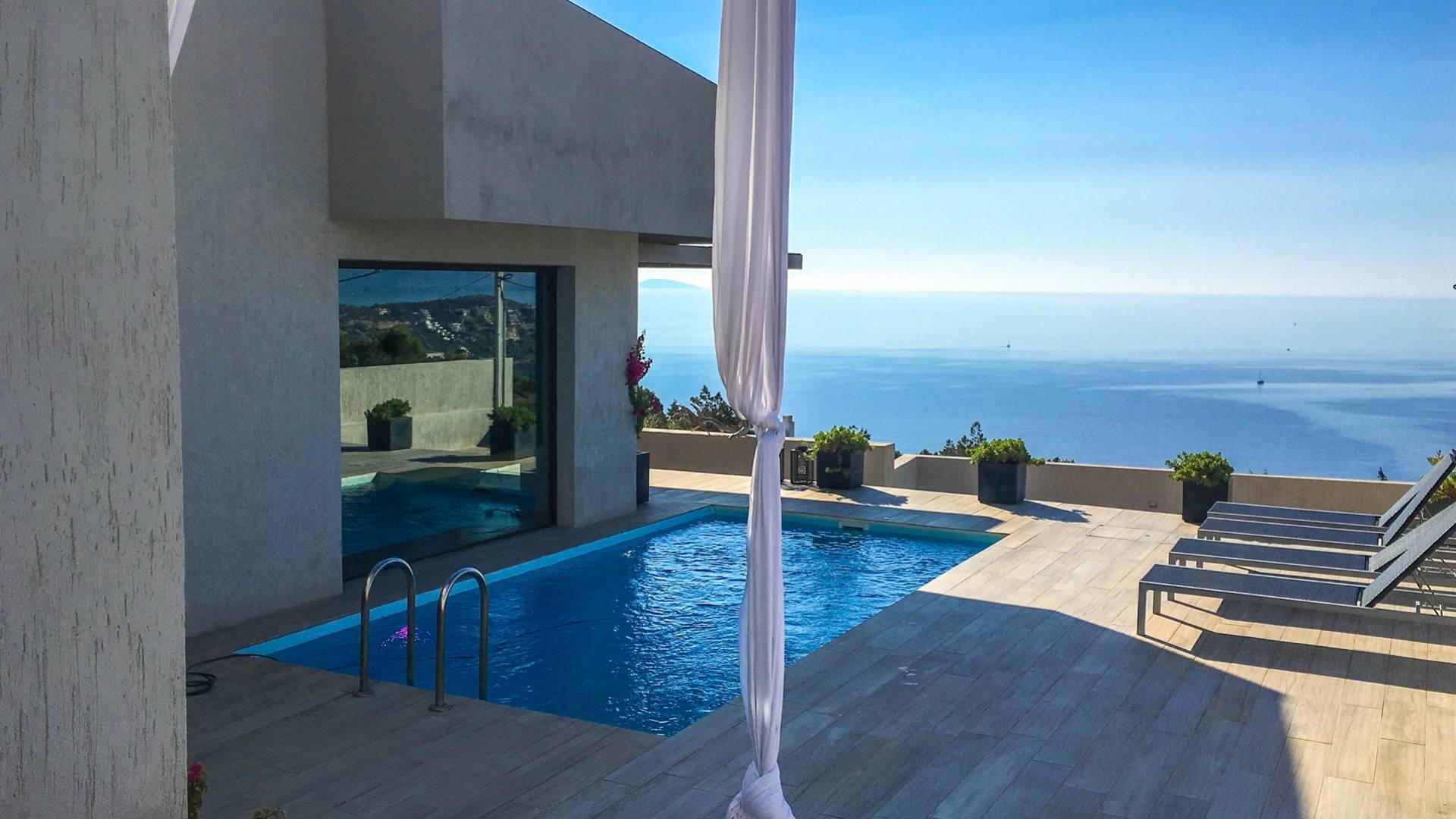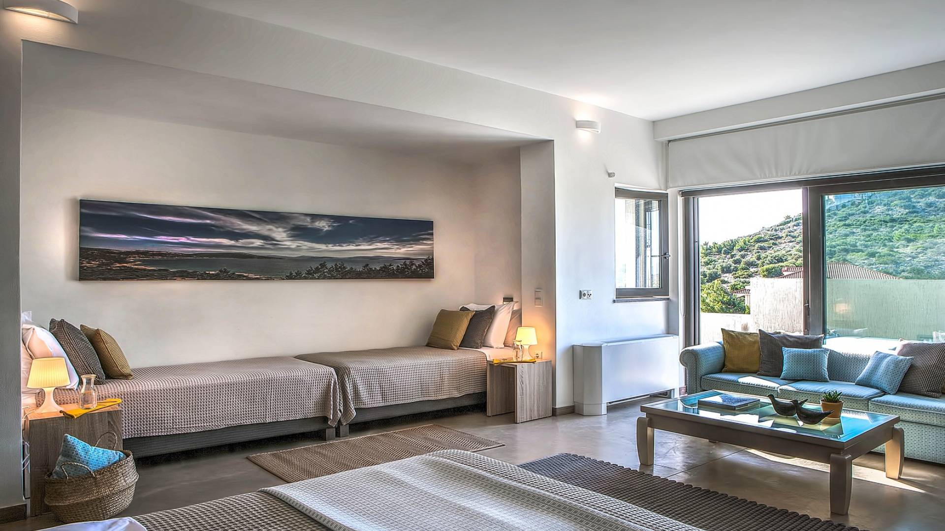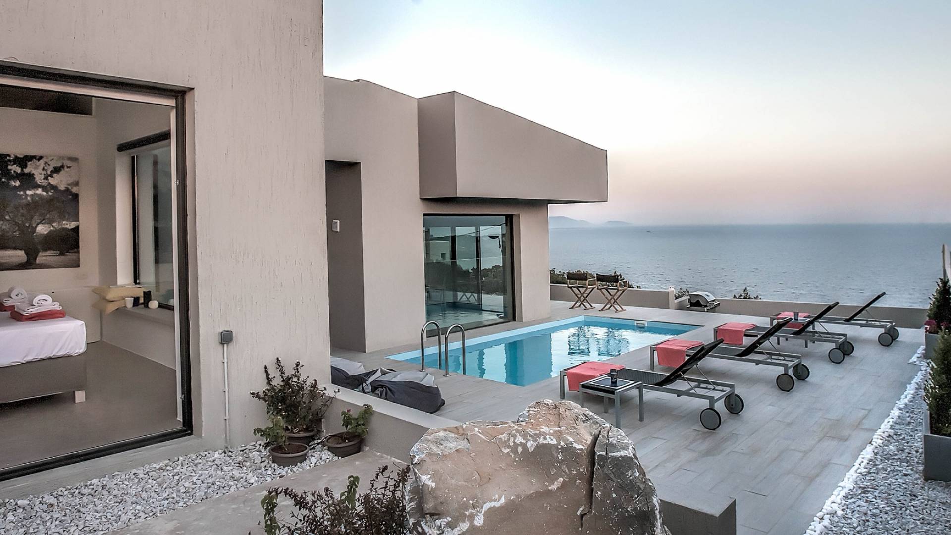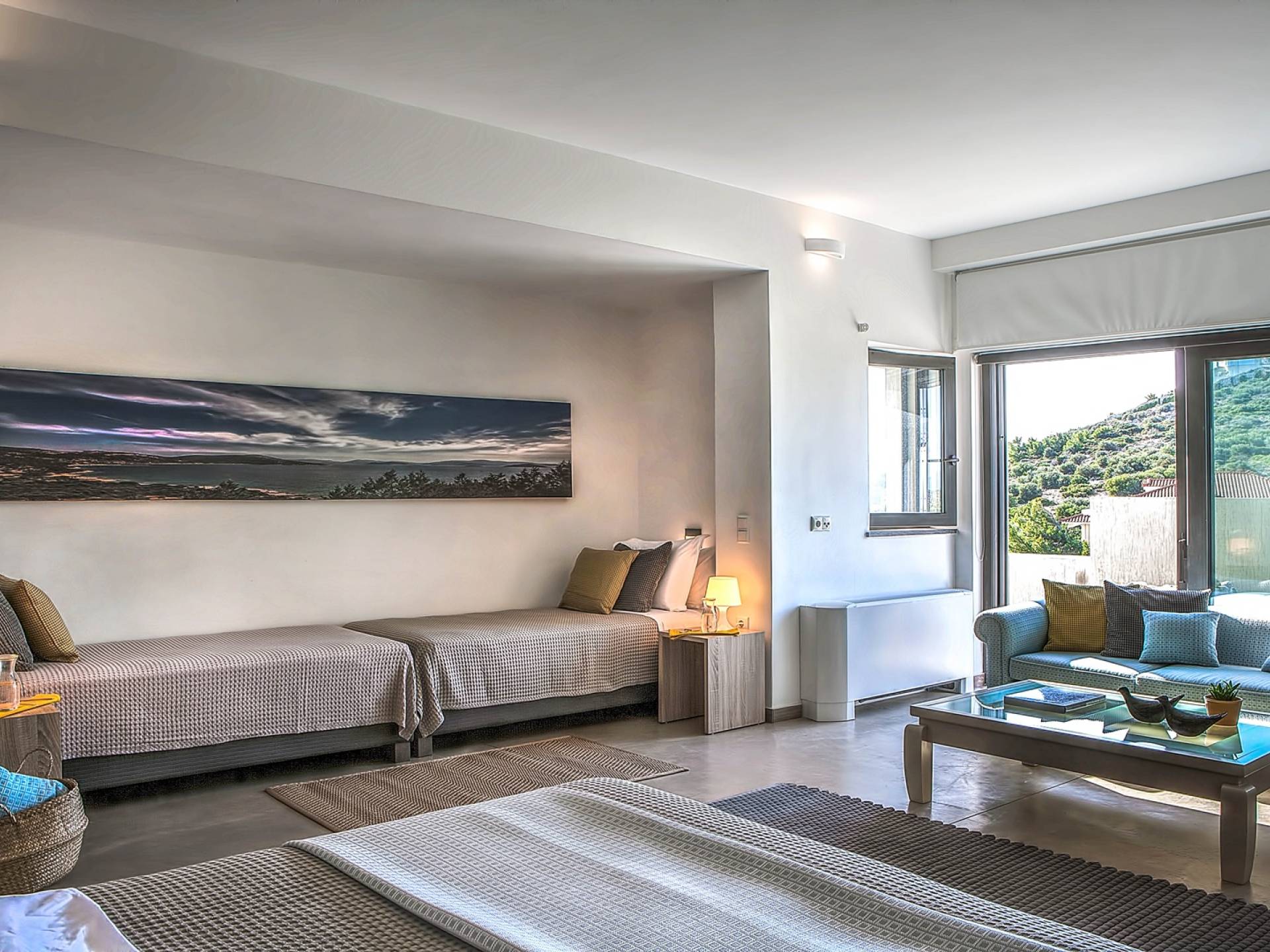 Смежная вилла Marathon Blue, построенная для обеспечения абсолютного комфорта, имеет 6 спален различной планировки с панорамными окнами и ванными комнатами. Минималистичная современная мебель, открытая планировка, хорошо оборудованная кухня с достаточным количеством сидячих мест как в помещении, так и на открытом воздухе, оформленная в мягких тонах, отражающих природную красоту местности. Насладитесь панорамным видом, обедая на свежем воздухе, или искупайтесь в бассейне, любуясь захватывающими красочными закатами над горами и мерцающими ночными огнями близлежащего Неа Макри. Удобства включают ультрасовременный домашний кинотеатр с системой караоке, настольные игры, бесплатный высокоскоростной доступ в Интернет и многое другое.