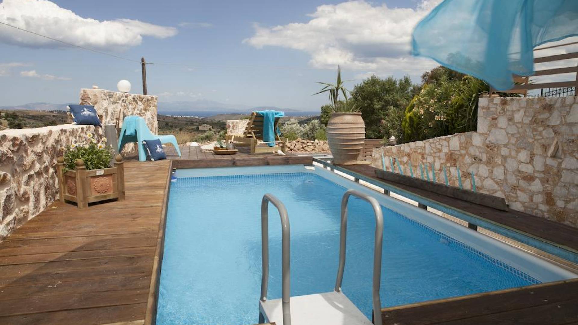 Проведите свой отпуск с качеством, комфортом, релаксацией и уединением в сочетании с панорамным и обширным видом на природу на северо-восточной стороне горы Пентели на небольшом холме, где вы можете полюбоваться простором глубокого синего моря, которое находится поблизости.