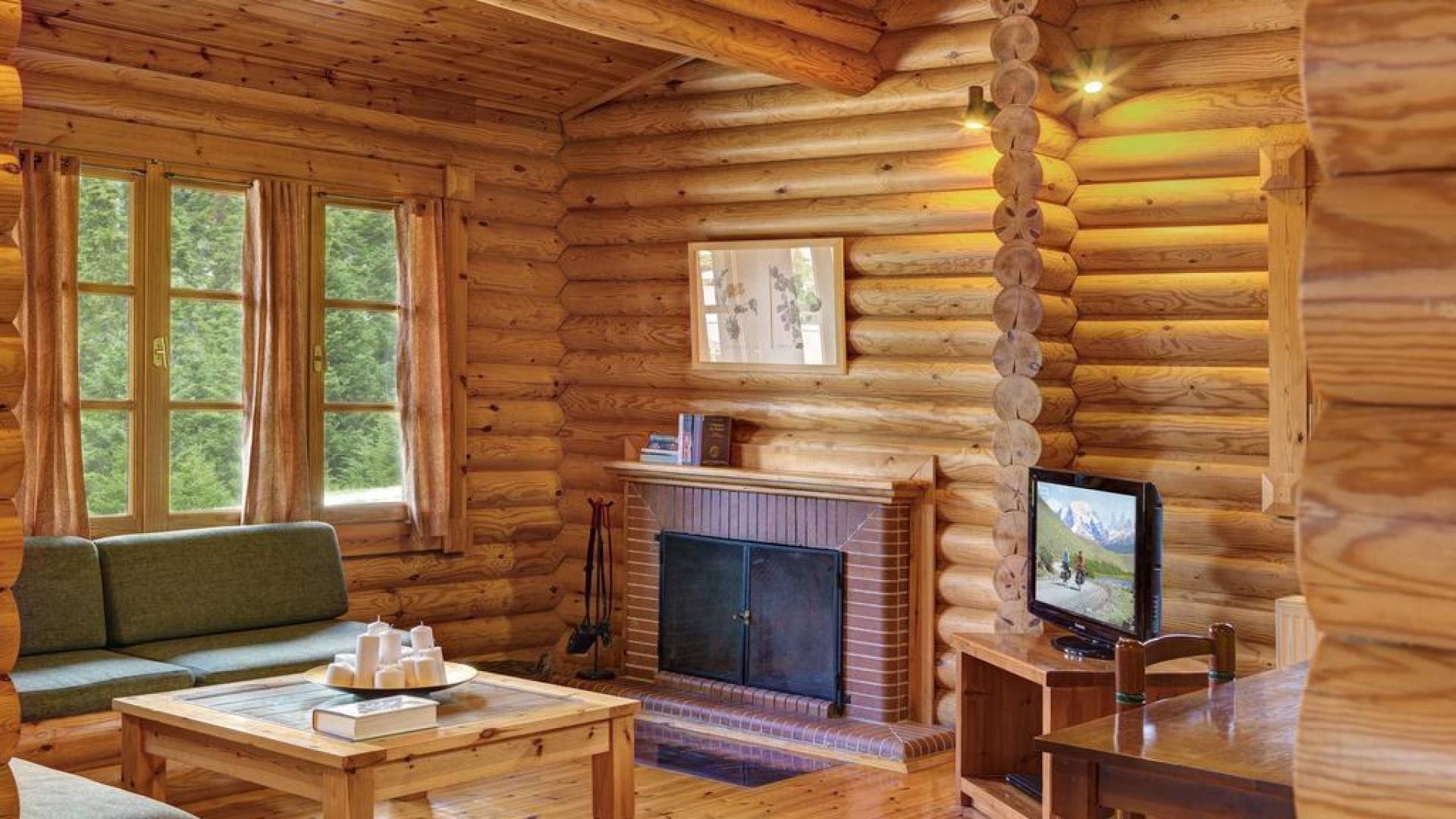 39 отдельных шале предлагают гостям уникальное сочетание тепла и комфорта. Оригинальное высококачественное строительство курорта дополняет природную среду елового леса на горе Парнас, что делает курорт Elatos поистине уникальным местом для отдыха для любого путешественника. Шале Делюкс на курорте Elatos Resort состоит из 2 спален, 1 ванной комнаты, гостиной с камином, обеденной зоны, веранды и может вместить до 6 человек.