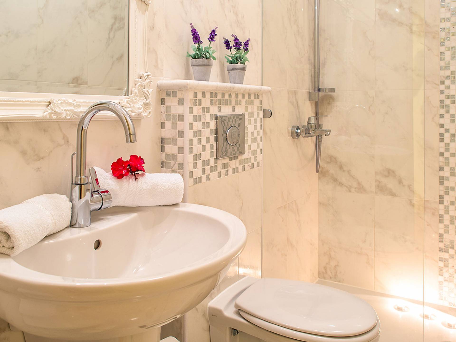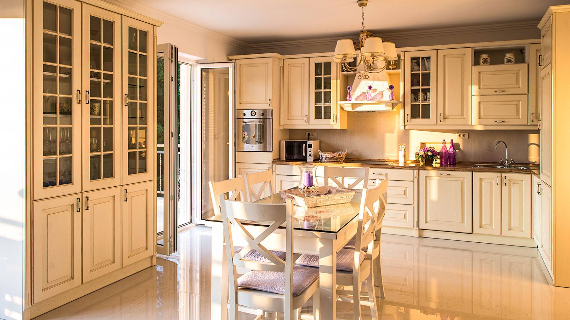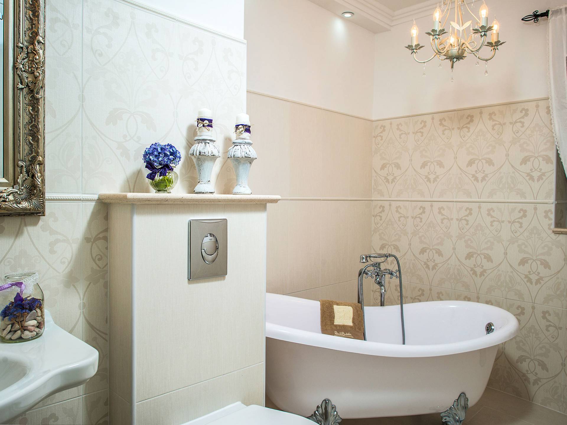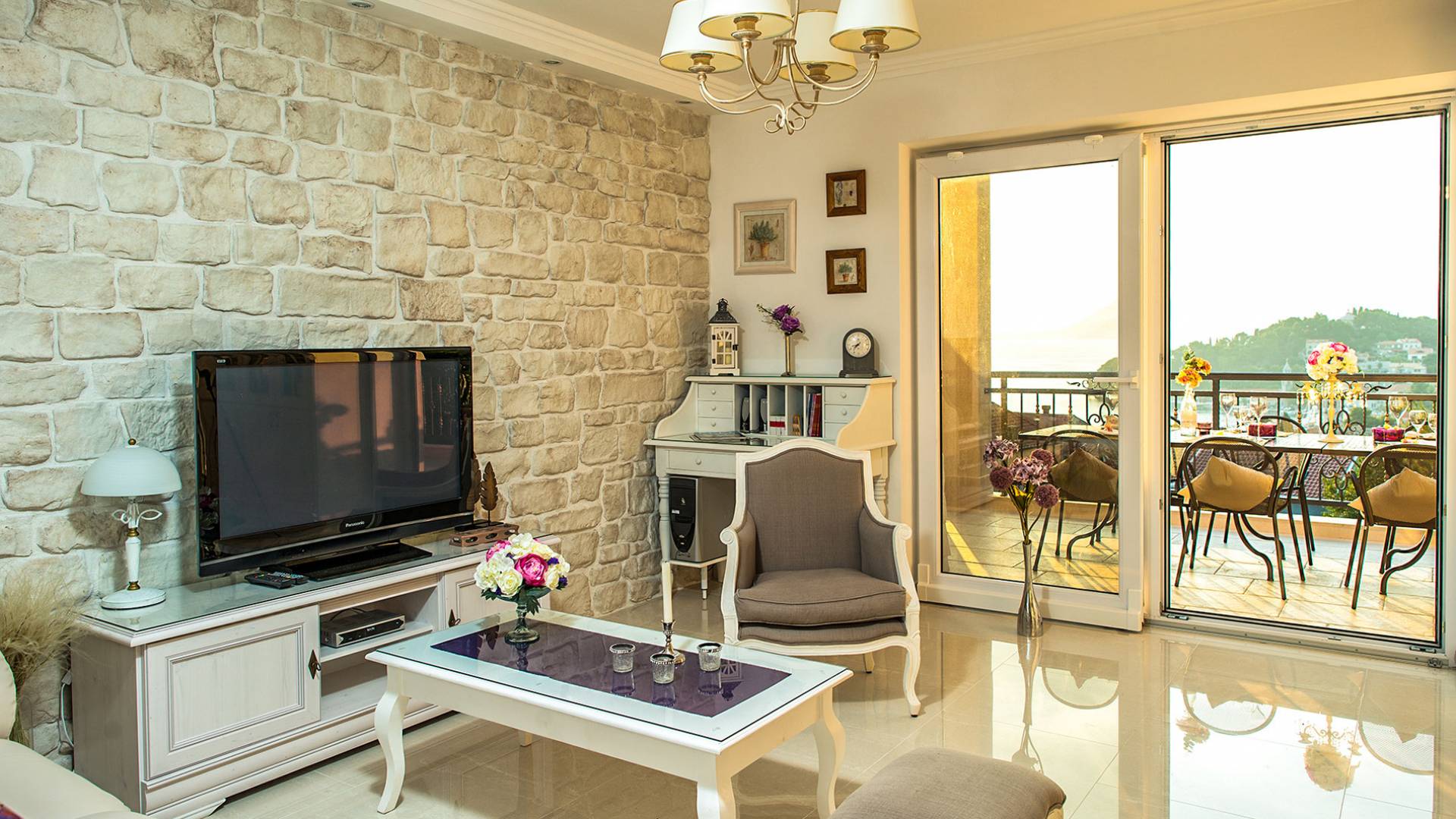 На первом этаже виллы La Perla Cavtat есть залитая солнцем кухня, выходящая на большую панорамную террасу с обеденным столом на открытом воздухе. Кухня оборудована качественной стальной техникой, в том числе четырехконфорочной плитой, духовкой, холодильником с морозильной камерой, посудомоечной машиной, микроволновой печью, а также кофеваркой, чайником и тостером. Также имеется гостиная зона, элегантно оформленная в мягких нейтральных тонах и со вкусом обставленная антикварной мебелью. Современные удобства включают кондиционер, большую плазму со спутниковым приемом, компьютер и бесплатный Wi-Fi на всей территории виллы. Подсобное помещение со стиральной машиной и первая спальня с собственной старинной отдельно стоящей ванной, наконец, расположены на первом этаже.
