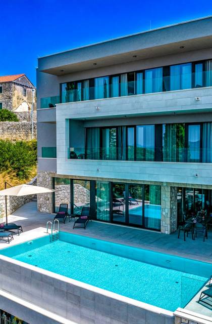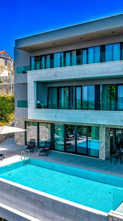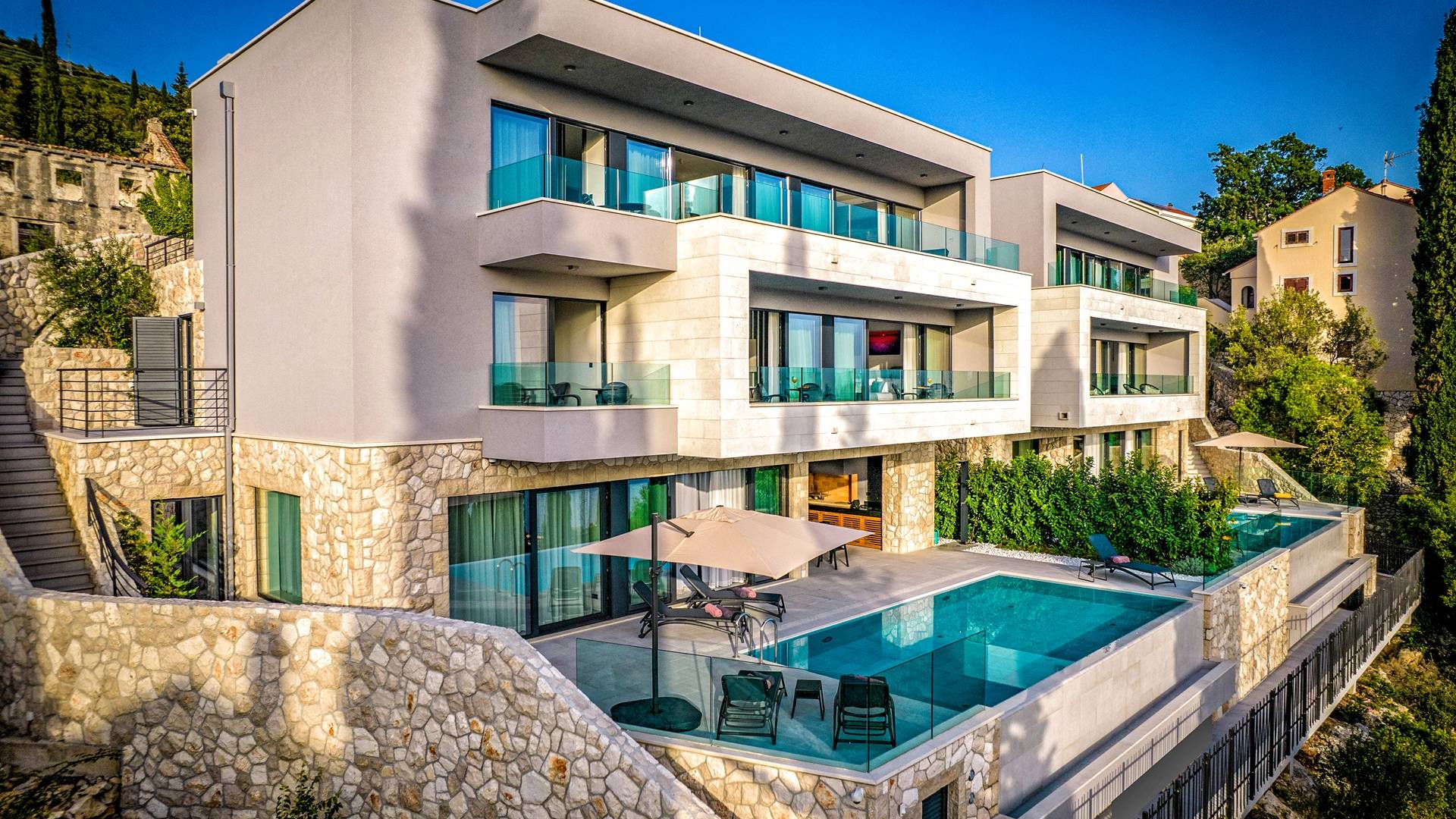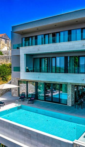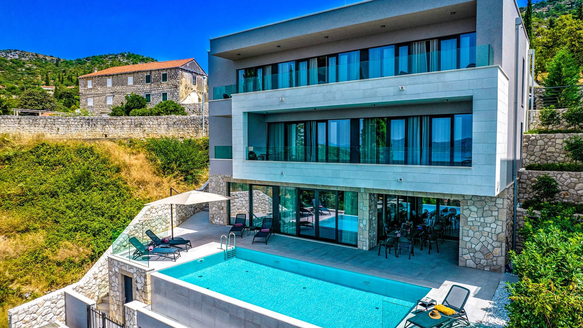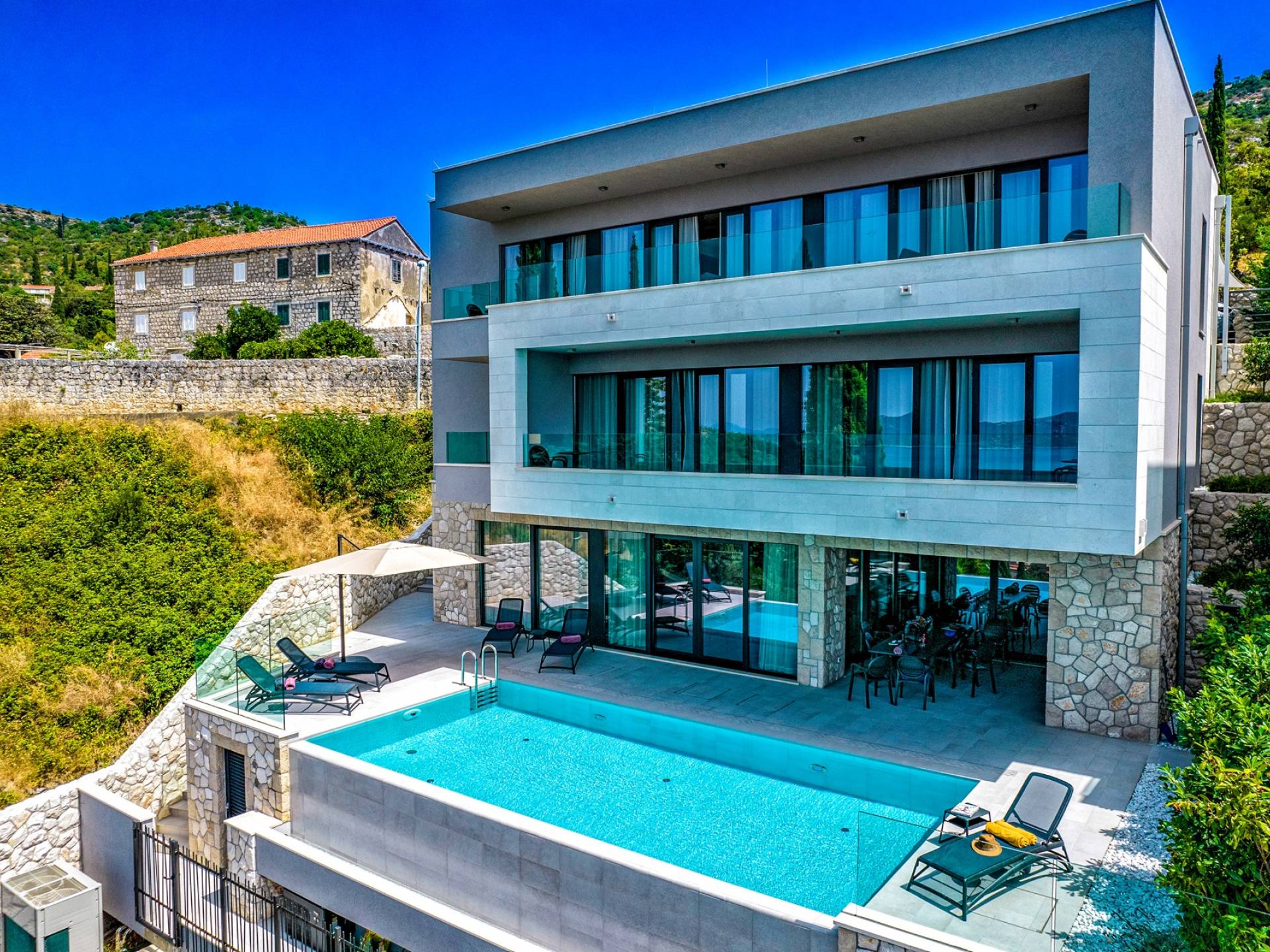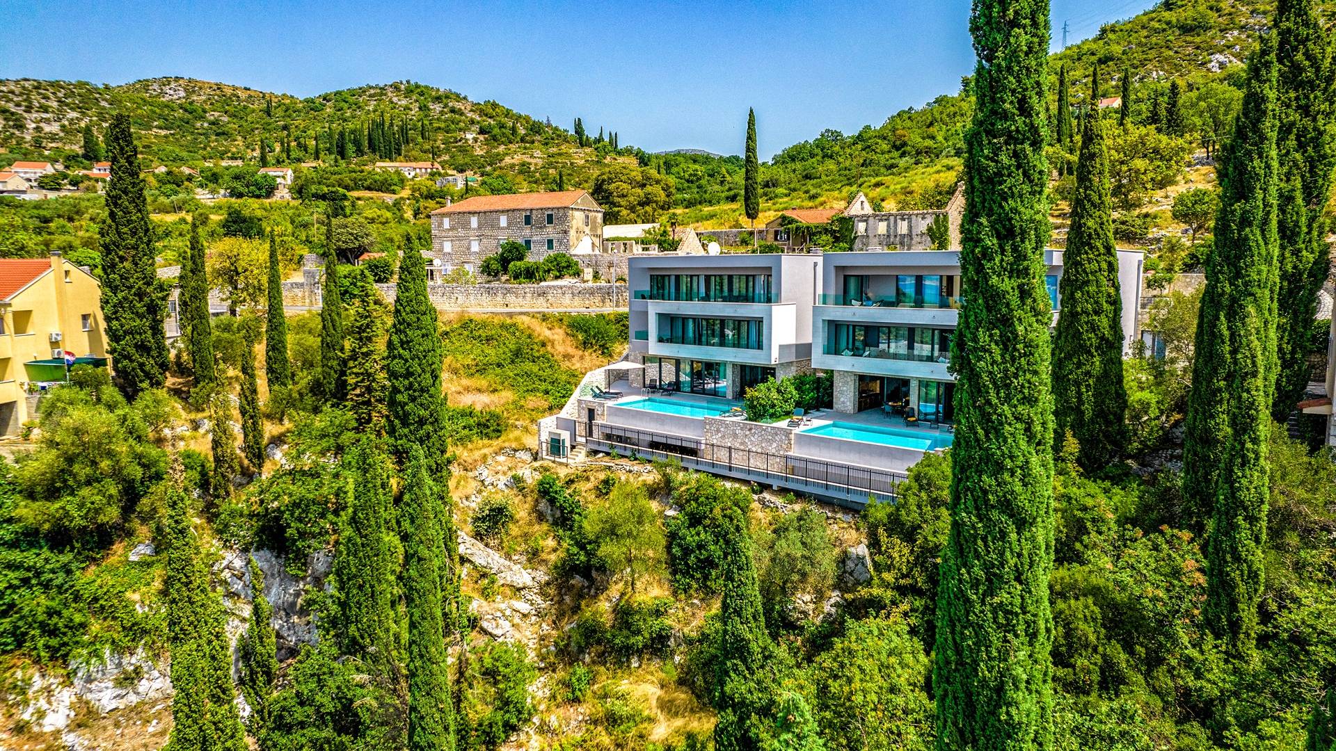 Эта недавно построенная вилла - прекрасный образец современной и новаторской архитектуры. просторный и светлый, а высокие потолки и стеклянные стены дарят ощущение свободы и открывают вид на острова Дубровника. Противоположности, то есть острова и Адриатическое море с одной стороны и окружающие холмы с другой, делают Орашац уникальным. Окруженная красивым природным ландшафтом, построенная на склоне холма, вилла обеспечивает фантастический вид на море и окружающее побережье. Вилла с высококачественной мебелью идеально вписалась в средиземноморский ландшафт холмов и построена на многоуровневых террасах.