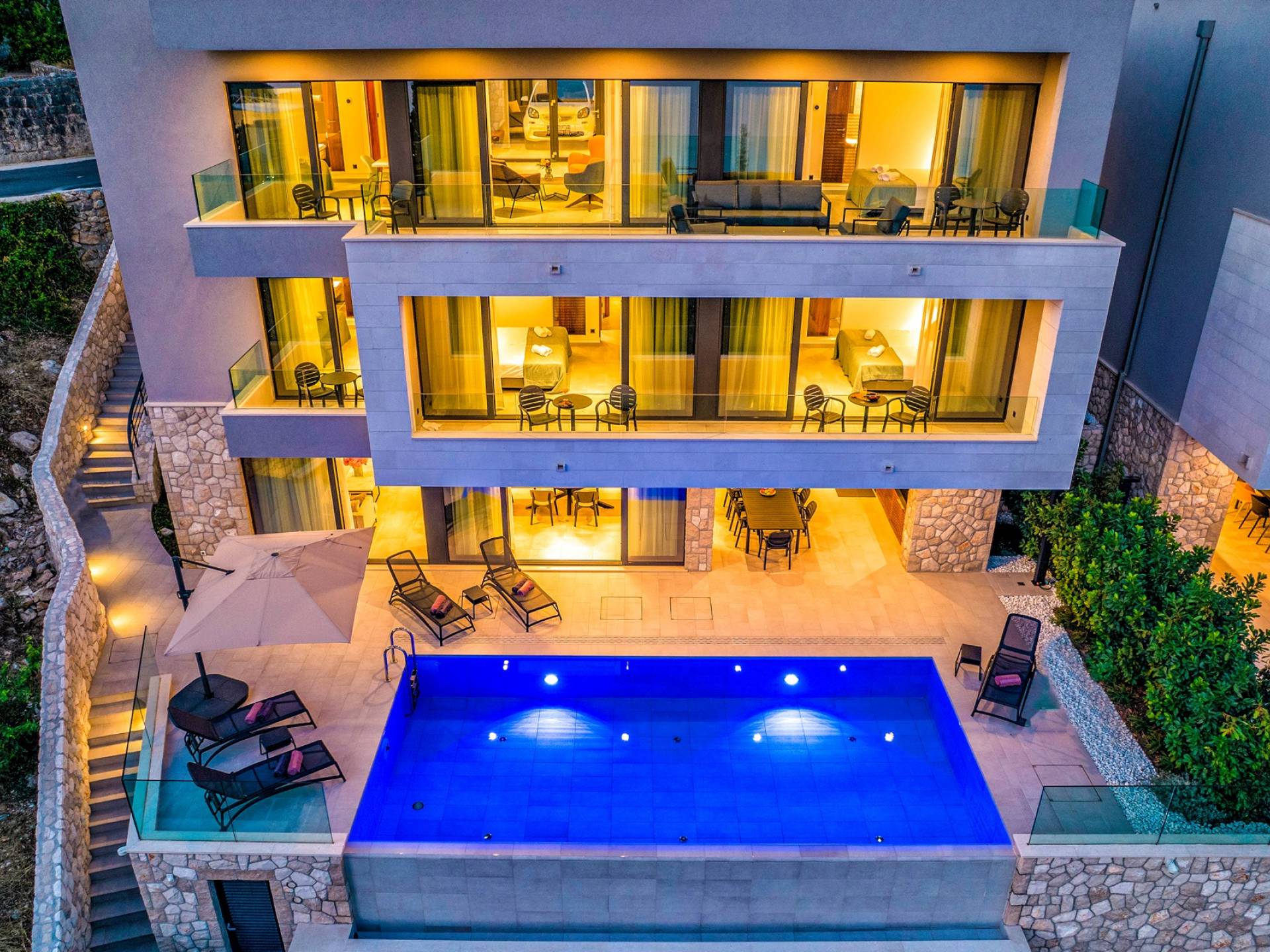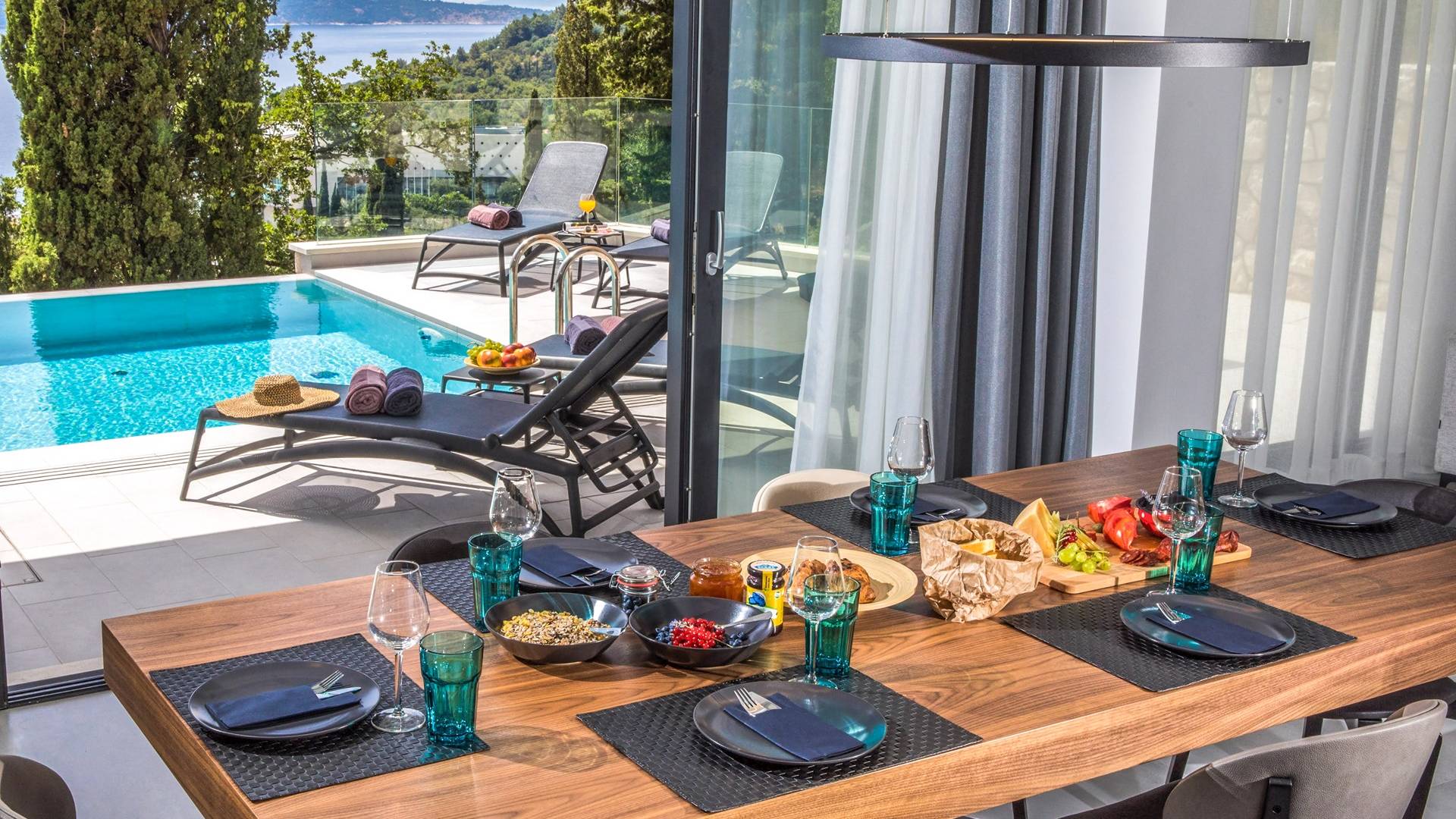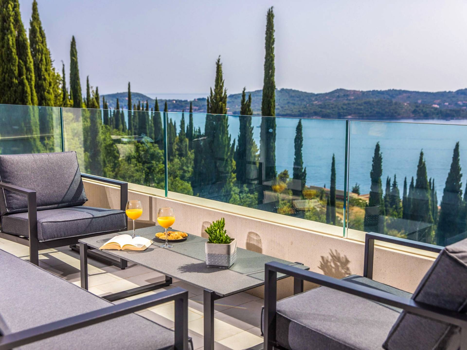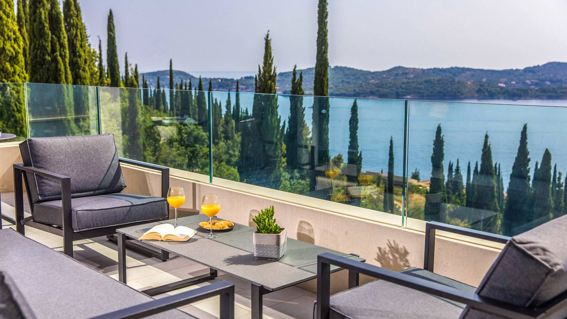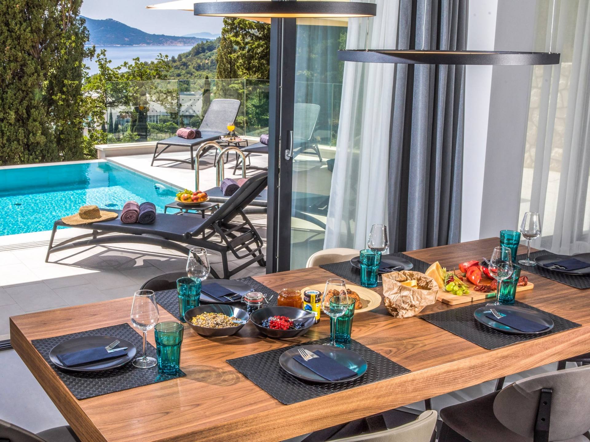 Эта недавно построенная вилла - прекрасный образец современной и новаторской архитектуры. просторный и светлый, а высокие потолки и стеклянные стены дарят ощущение свободы и открывают вид на острова Дубровника. Противоположности, то есть острова и Адриатическое море с одной стороны и окружающие холмы с другой, делают Орашац уникальным. Окруженная красивым природным ландшафтом, построенная на склоне холма, вилла обеспечивает фантастический вид на море и окружающее побережье. Вилла с высококачественной мебелью идеально вписалась в средиземноморский ландшафт холмов и построена на многоуровневых террасах.