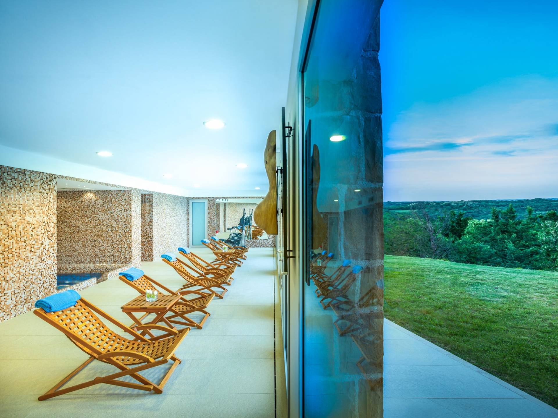 Вы можете выбрать между сауной и паровой баней, джакузи или просто насладиться зоной отдыха с потрясающим видом на зеленые холмы. Часть СПА также оборудована тренажерами. В окружающем саду площадью 2400 м² есть беседка, которая идеально подходит для отдыха теплыми летними вечерами...