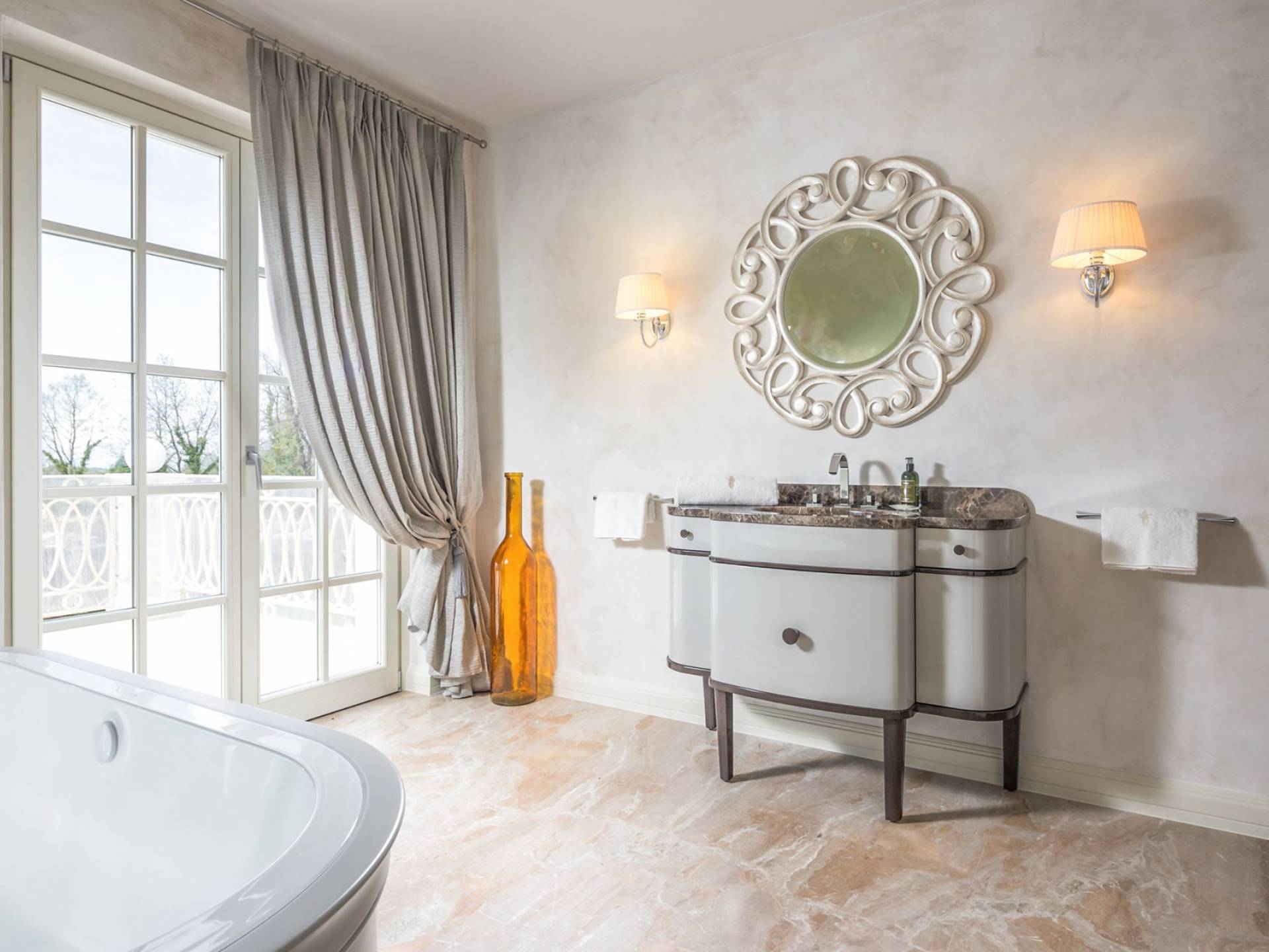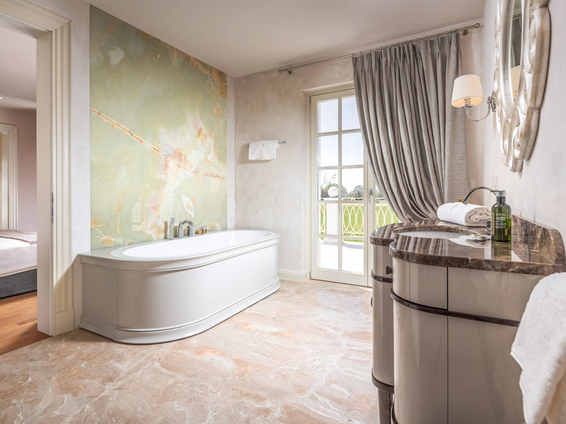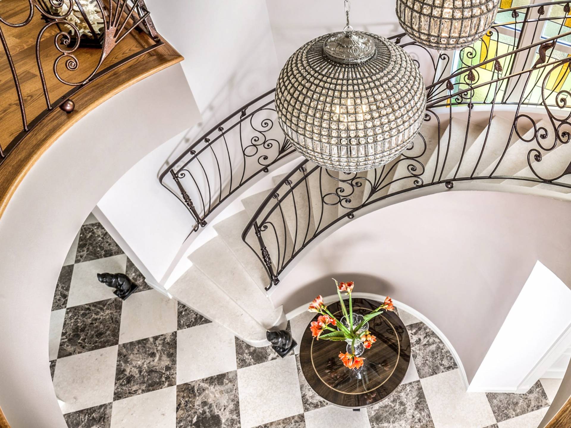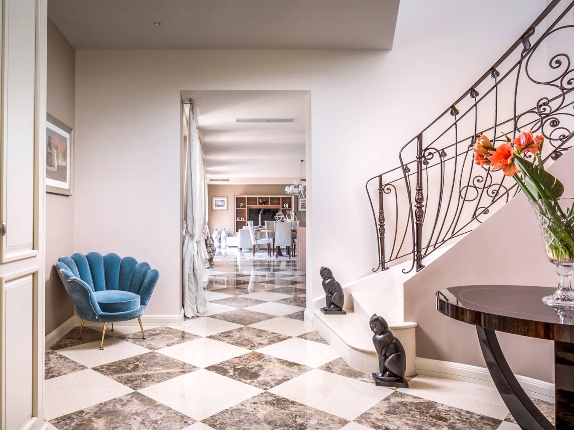 Эксклюзивная вилла Amaryllis оформлена в очень элегантном неподвластном времени классическом стиле. В вестибюле доминирует лестница с роскошными люстрами, облицованными мрамором и освещенными через витражи, стилизованные под романские окна.