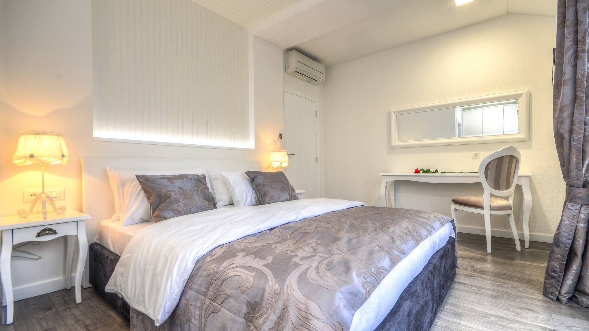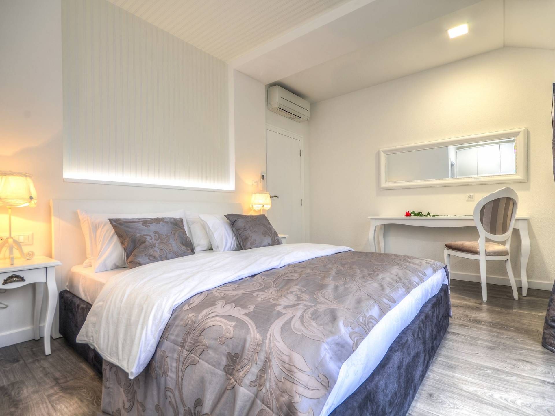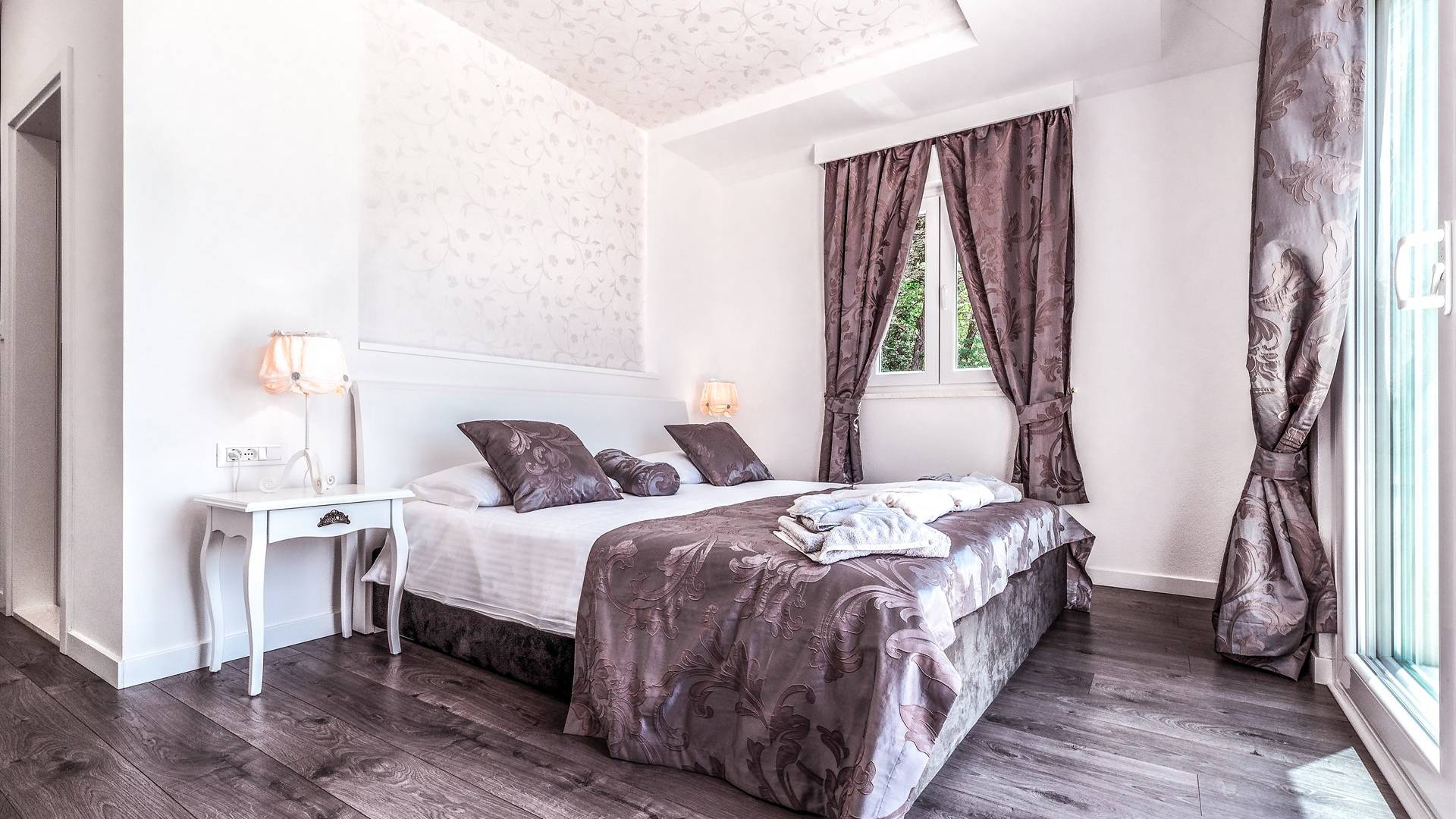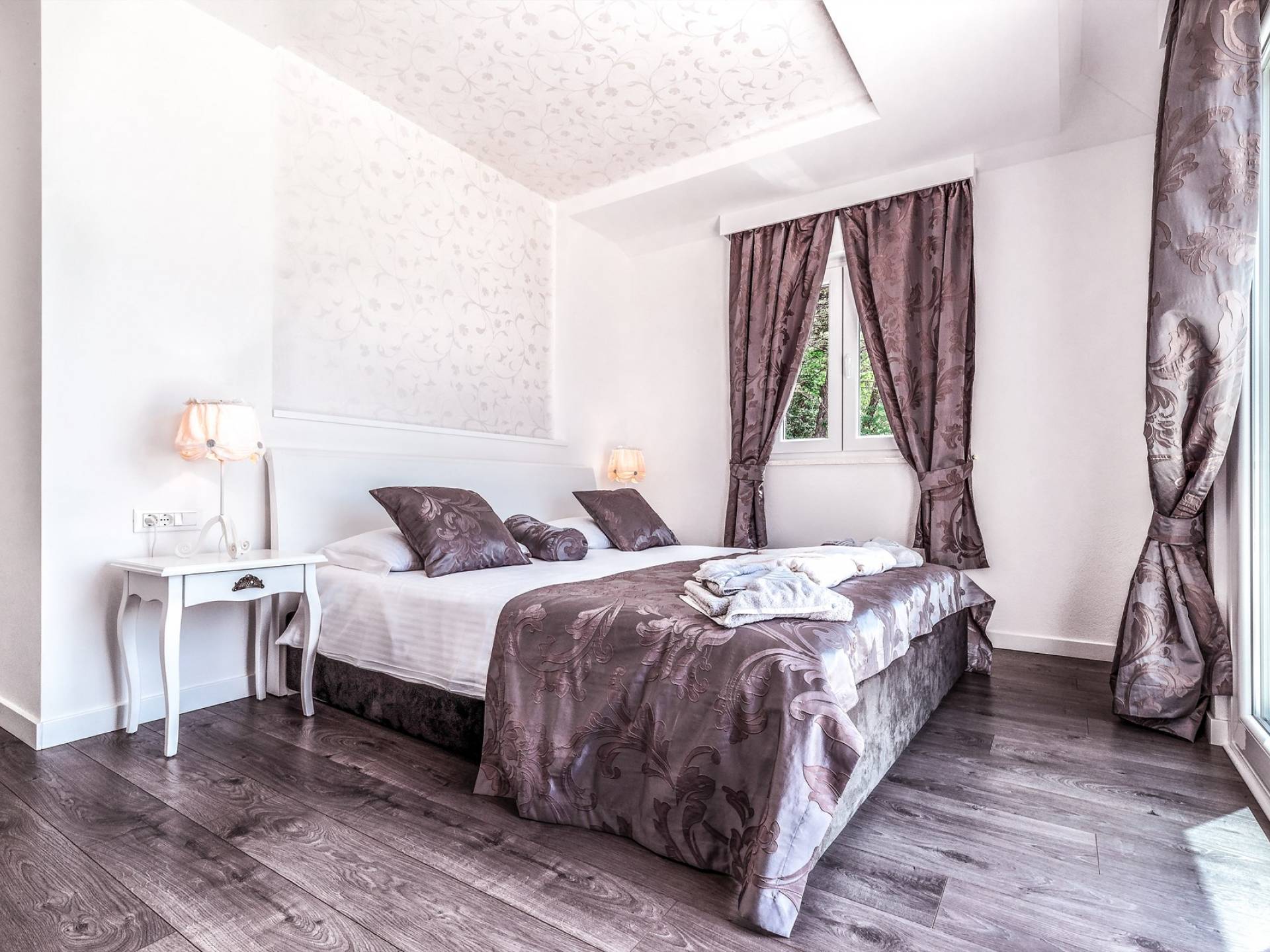 Номер 1: ориентирован на юг, с одной двуспальной кроватью (180 × 200), ванной комнатой с гидромассажной ванной, балконом с видом на море.