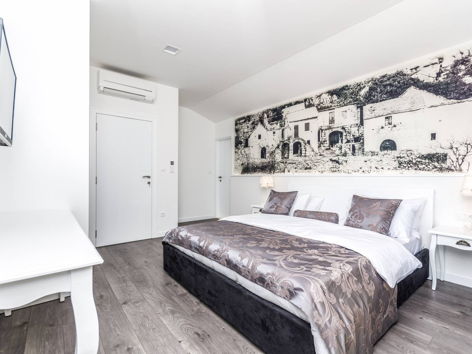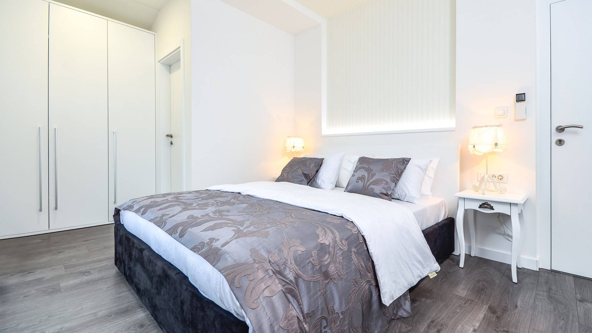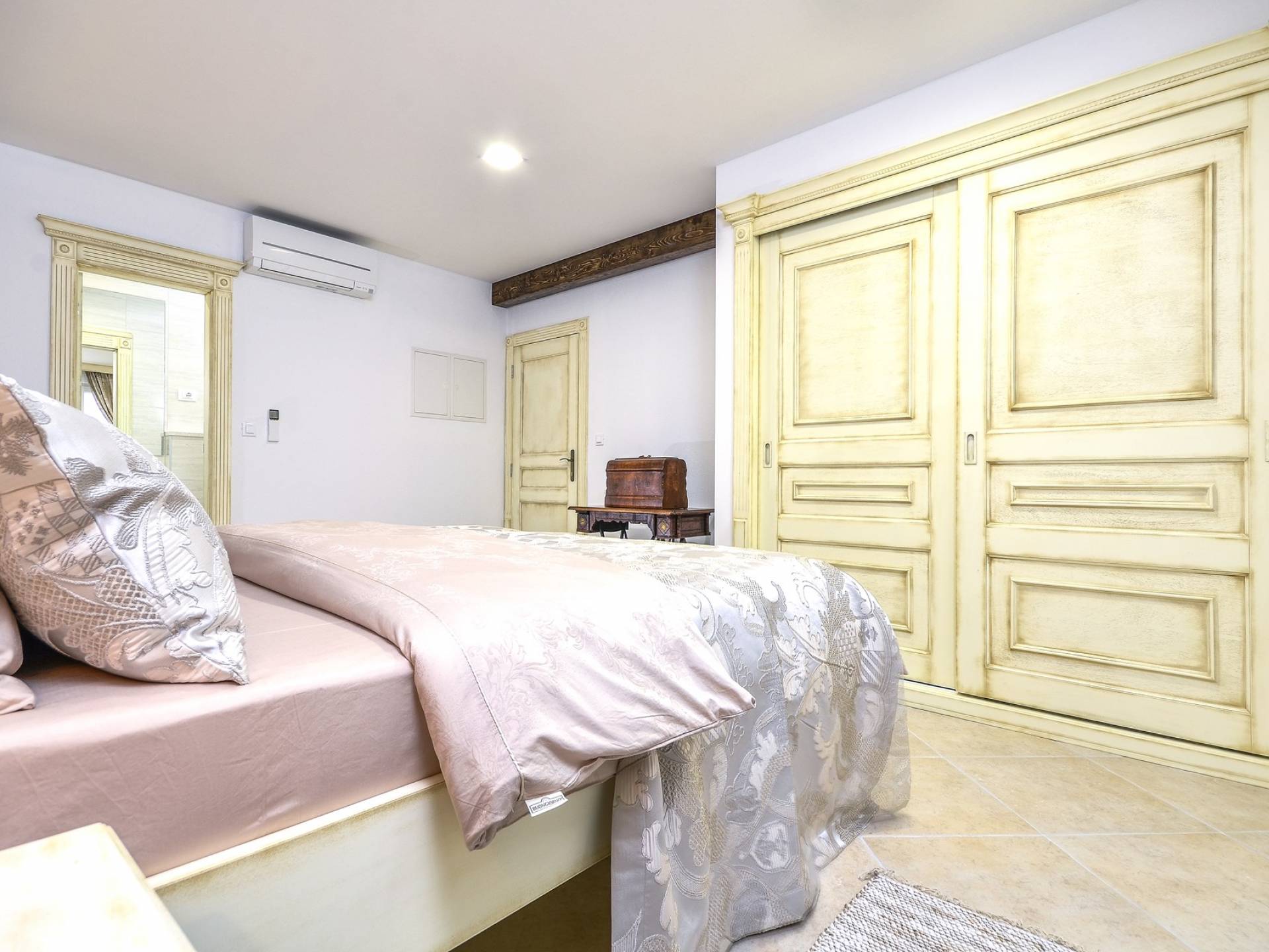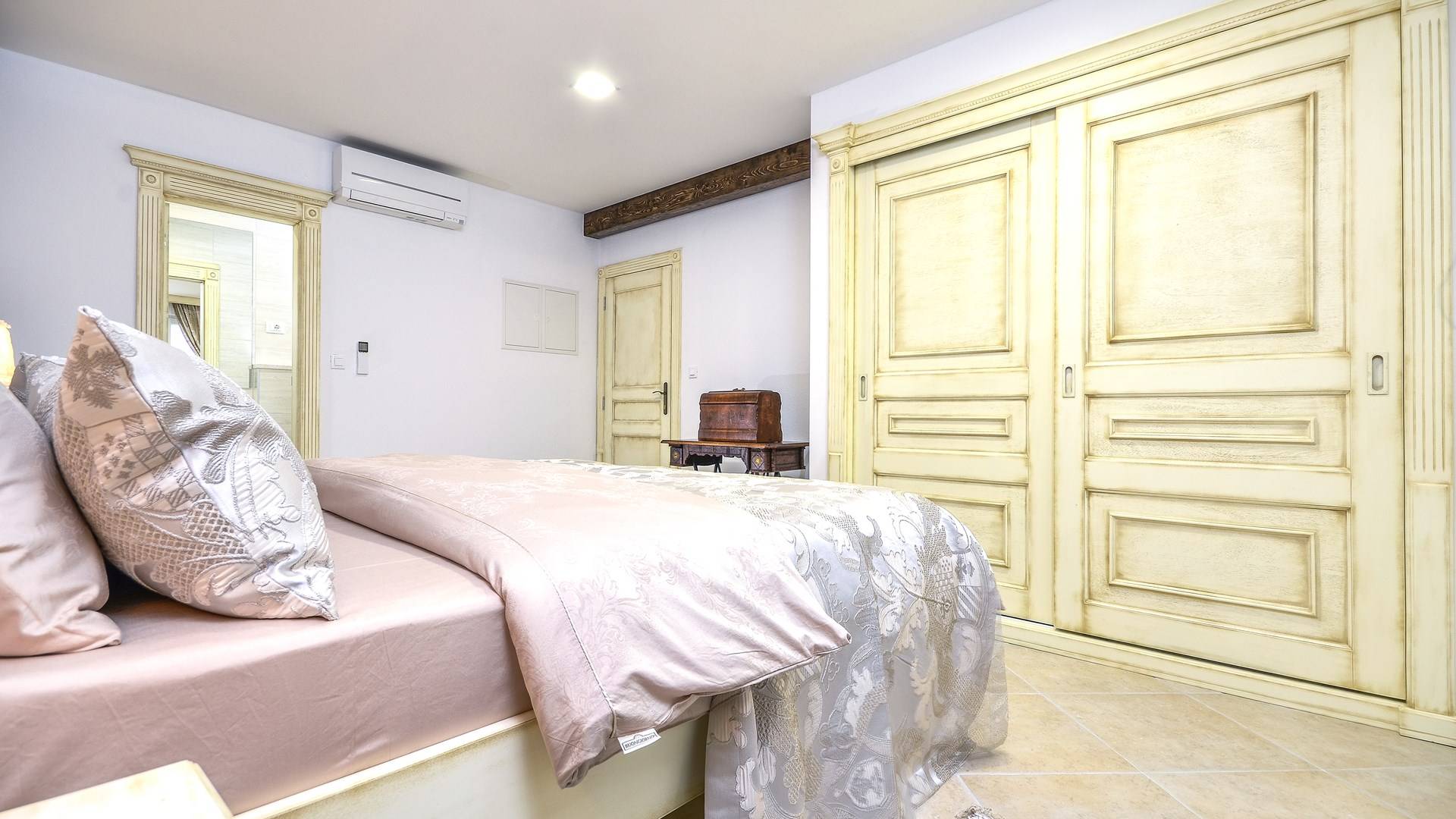 Номер 1: ориентирован на юг, с одной двуспальной кроватью (180 × 200), ванной комнатой с гидромассажной ванной, балконом с видом на море.