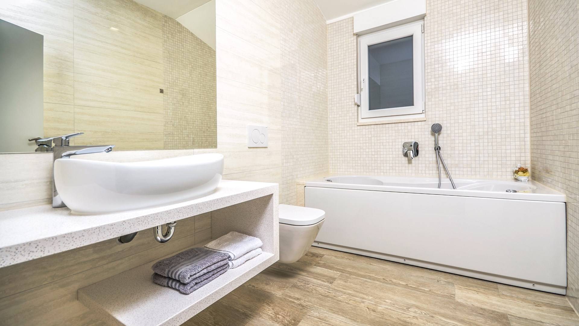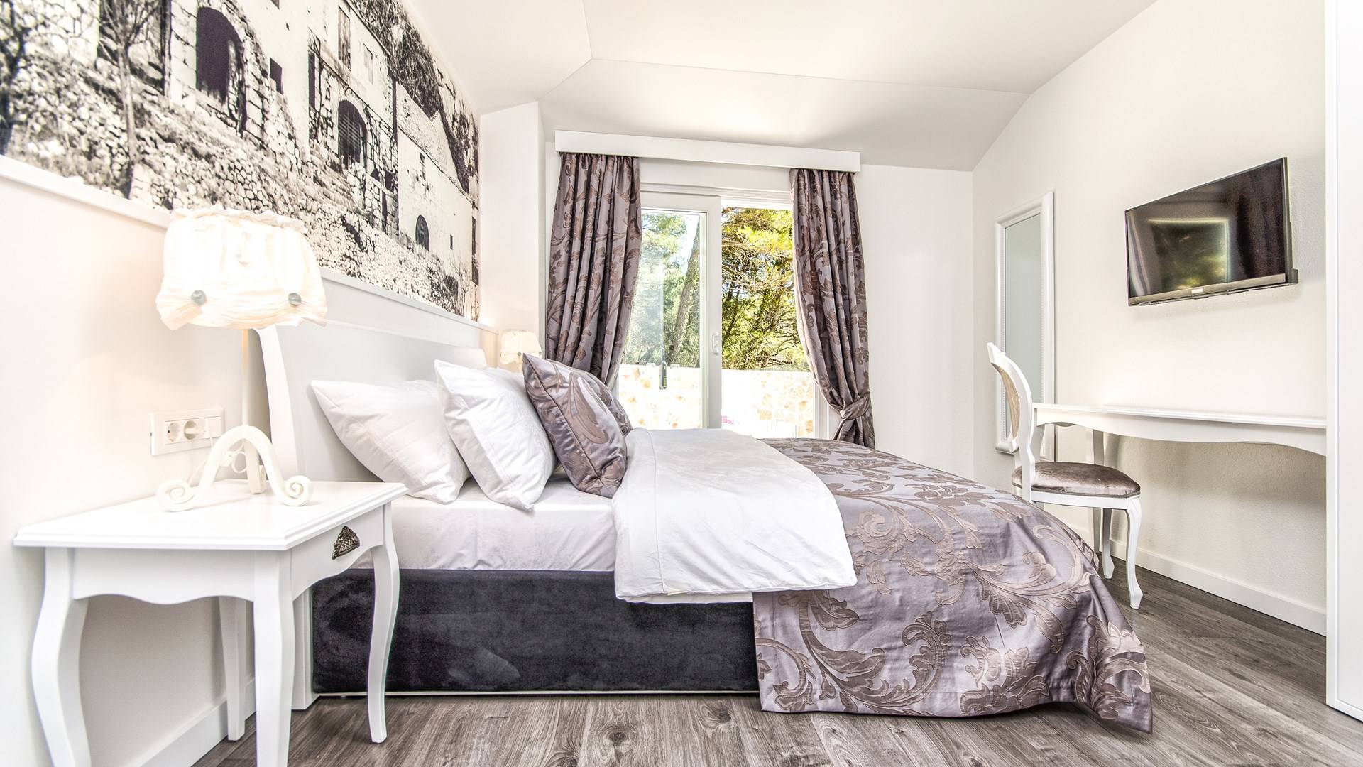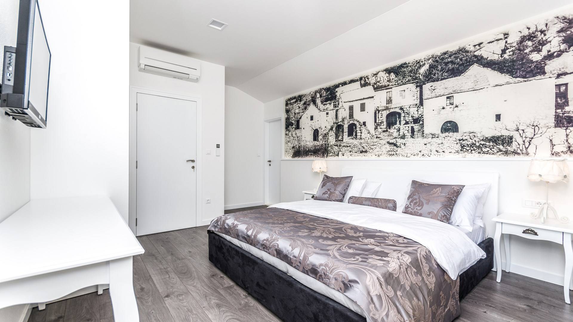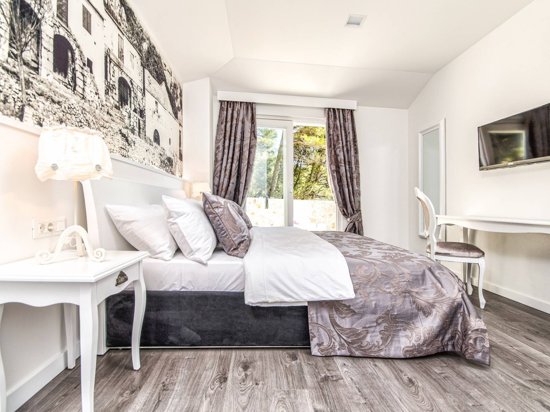 Номер 1: ориентирован на юг, с одной двуспальной кроватью (180 × 200), ванной комнатой с гидромассажной ванной, балконом с видом на море.