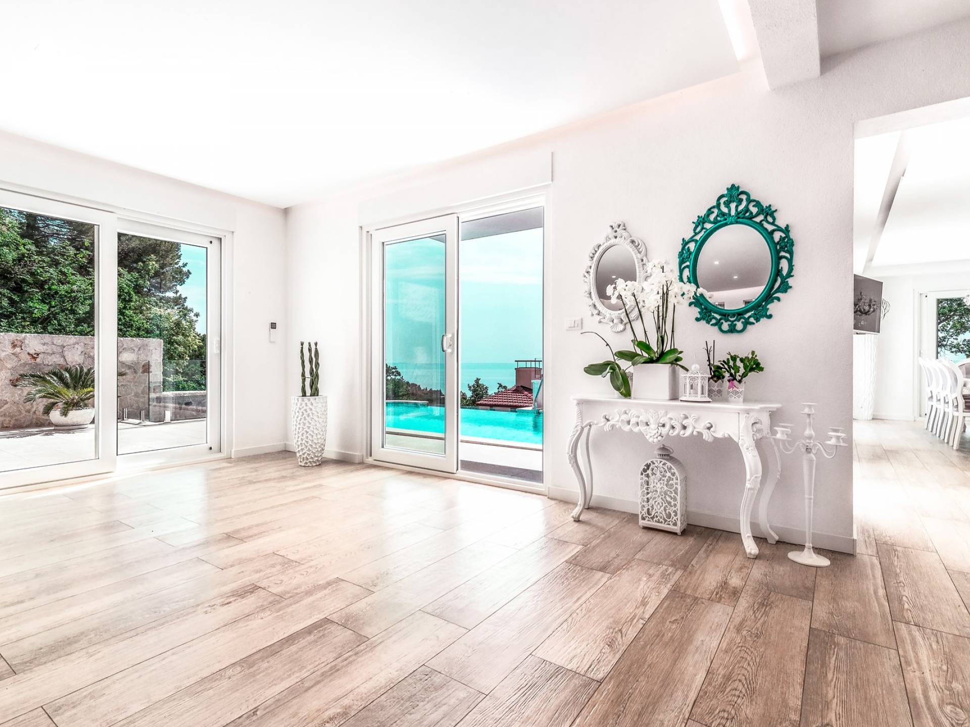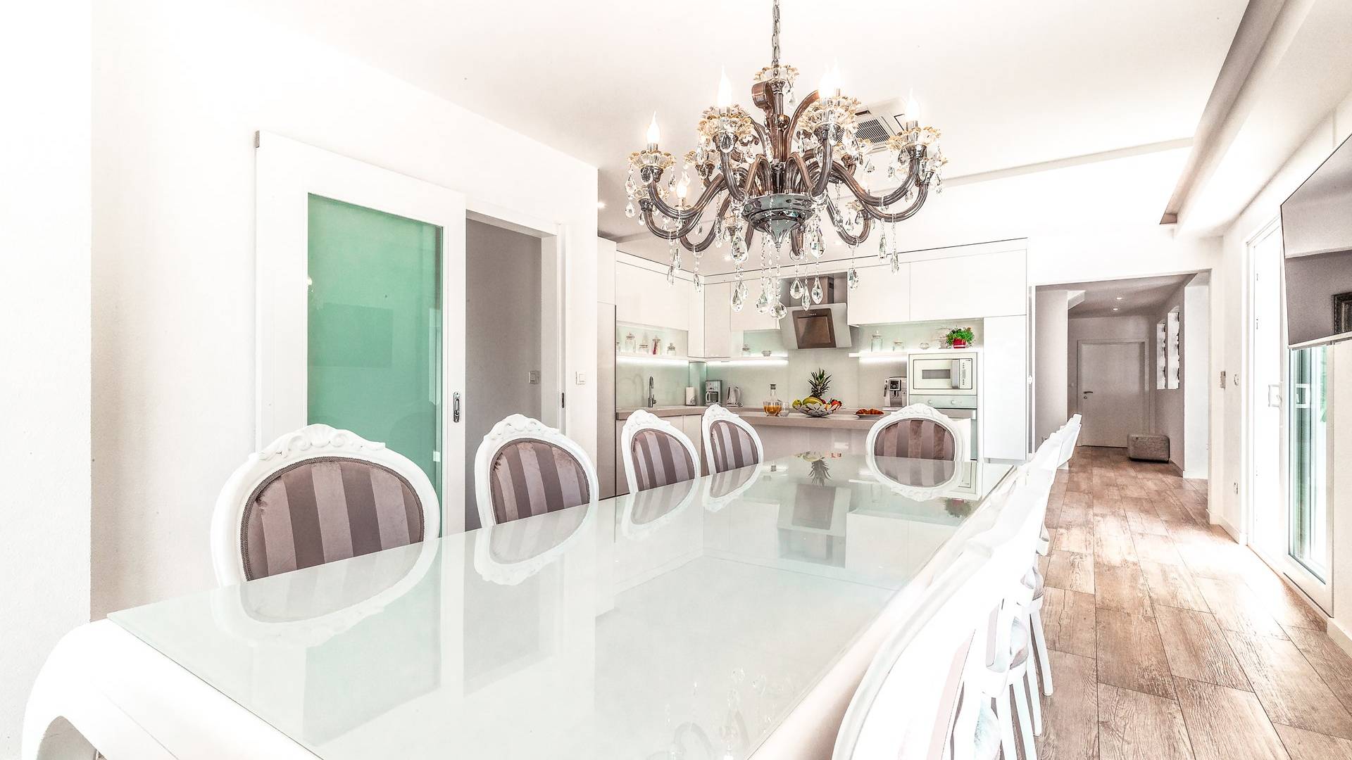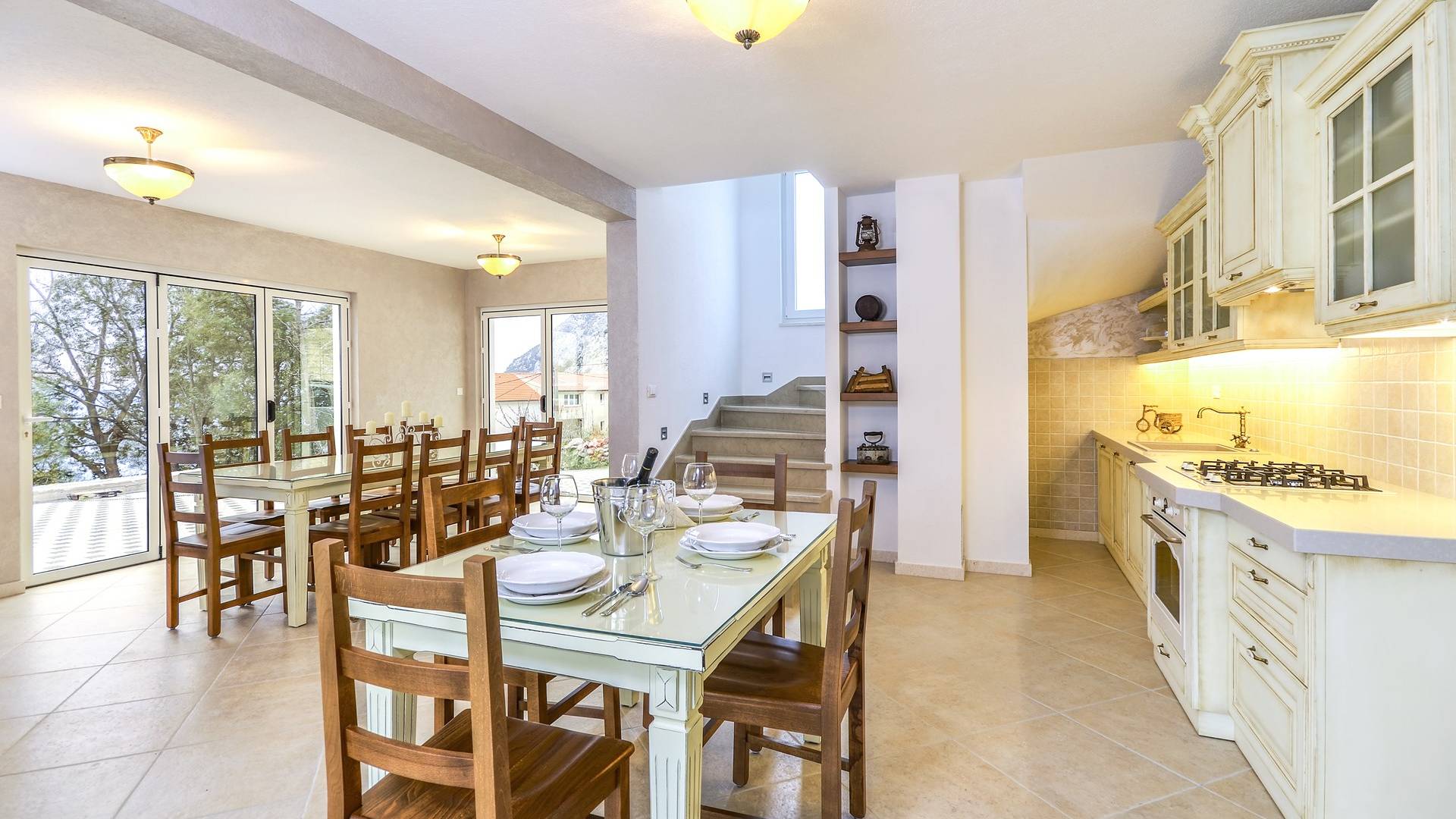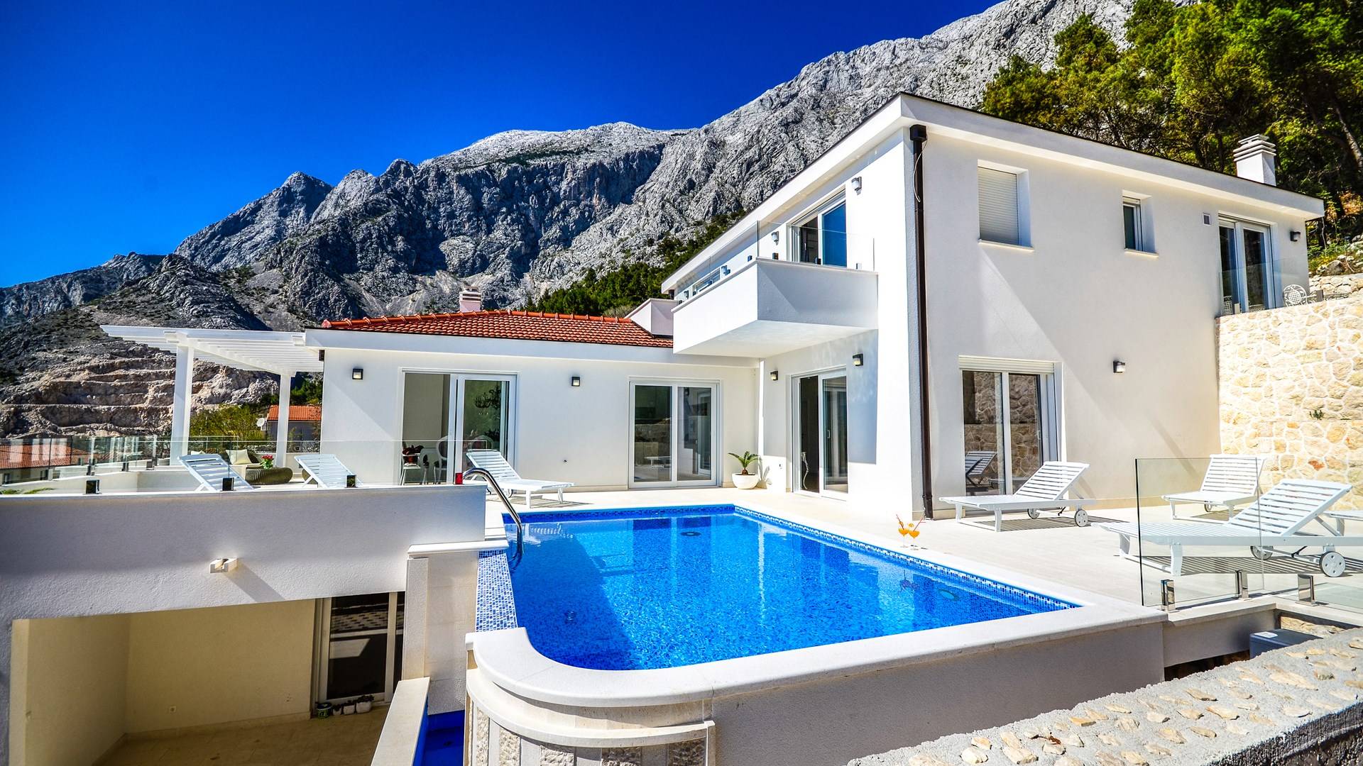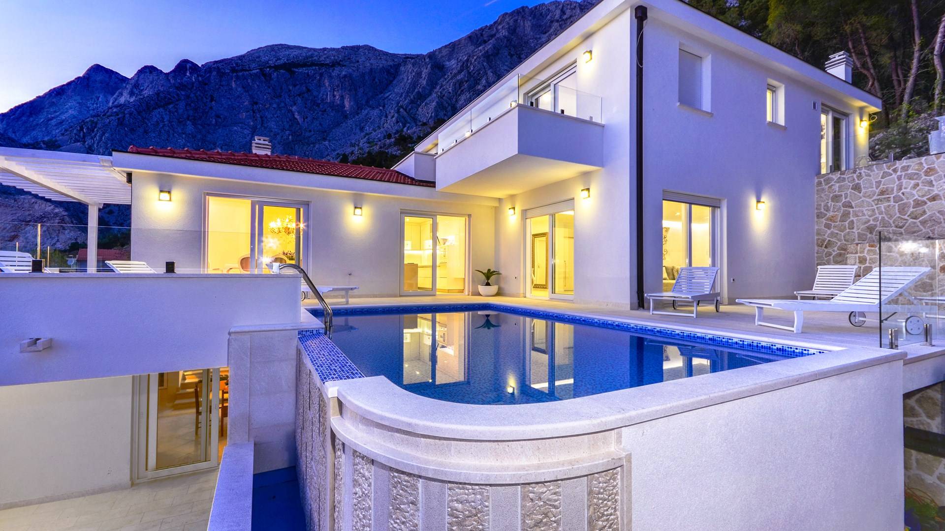 Villa Gabrielle Baška Voda - это впечатляющая вилла с 5 спальнями площадью 450 м2, полностью перестроенная в 2016 году и отвечающая очень высоким стандартам размещения туристов. Вилла Gabrielle находится в тихой бухте, в окружении красивого сада и парковочного места, если вы приедете на машине. Благодаря своей архитектуре, из всех комнат виллы открывается прекрасный вид на море, горы и острова. Благодаря большим окнам весь дом залит солнцем и светом.