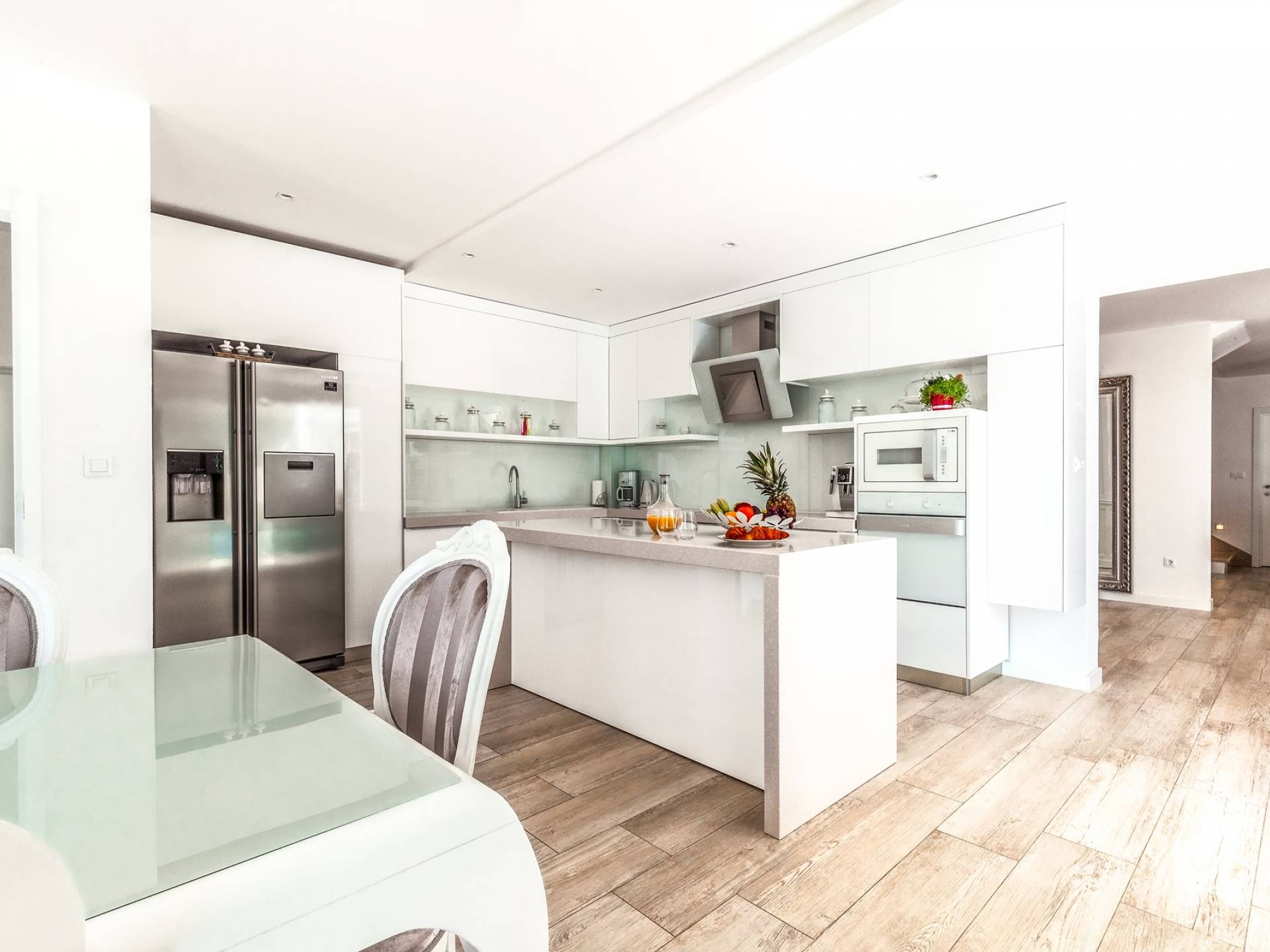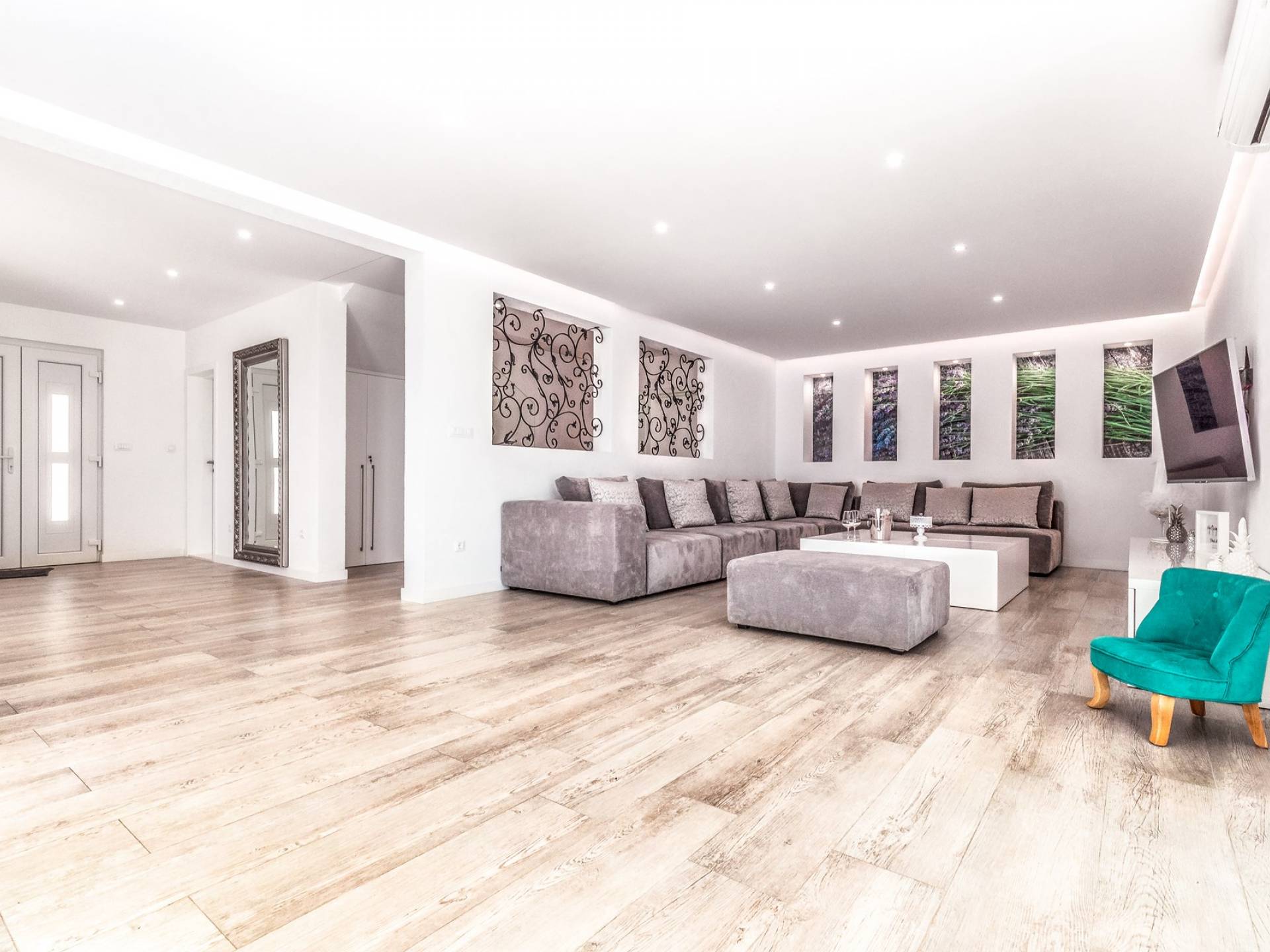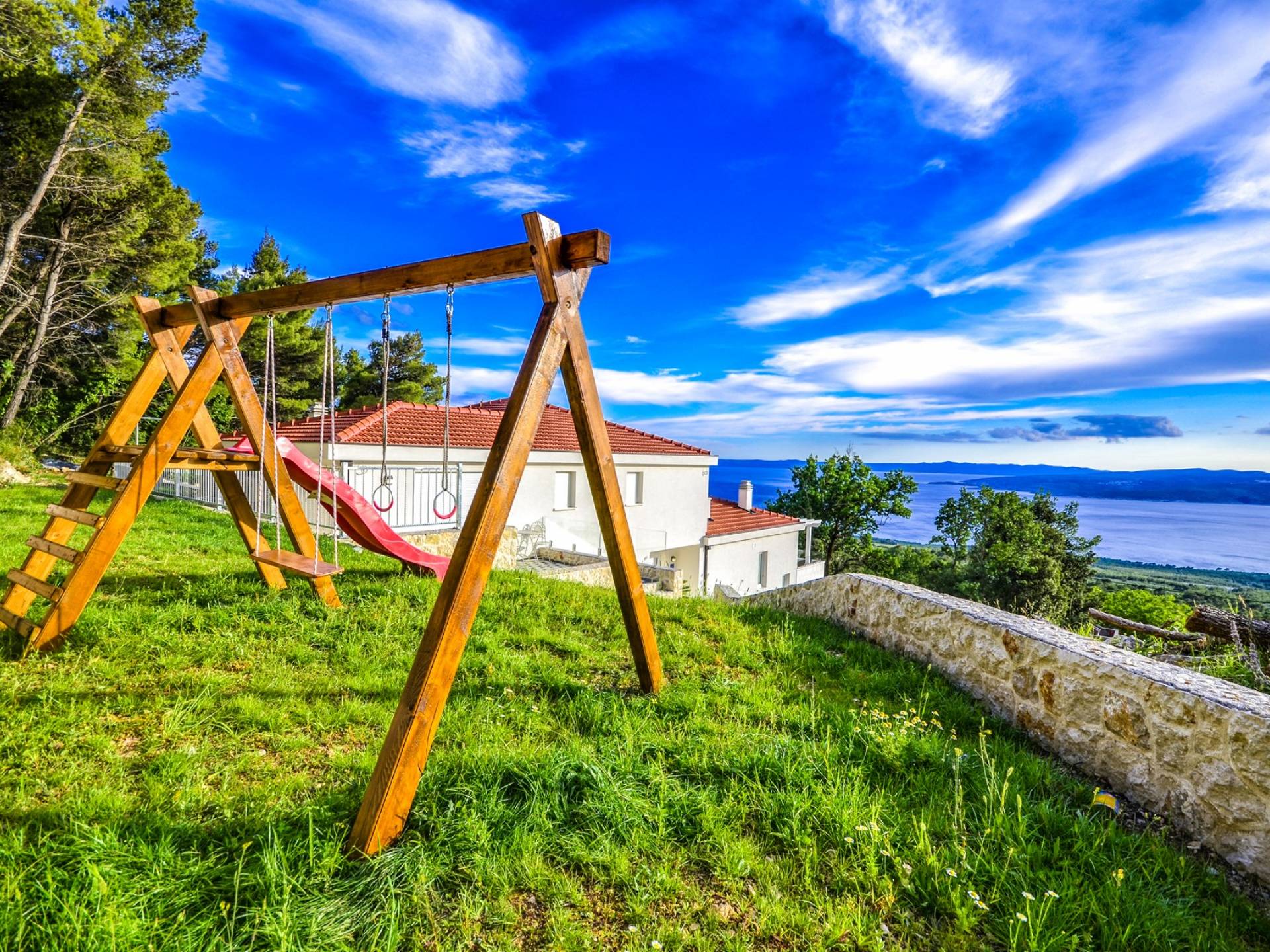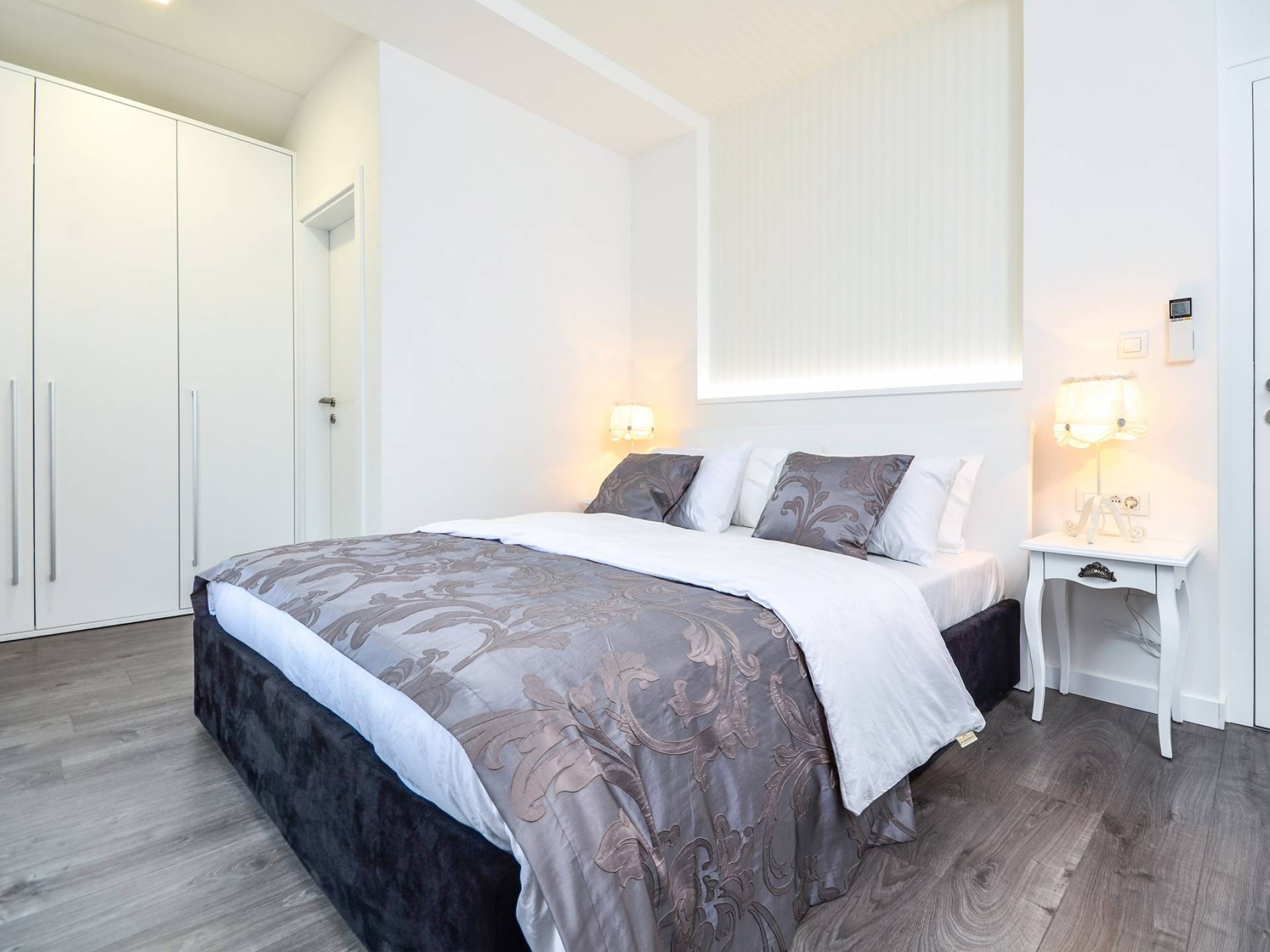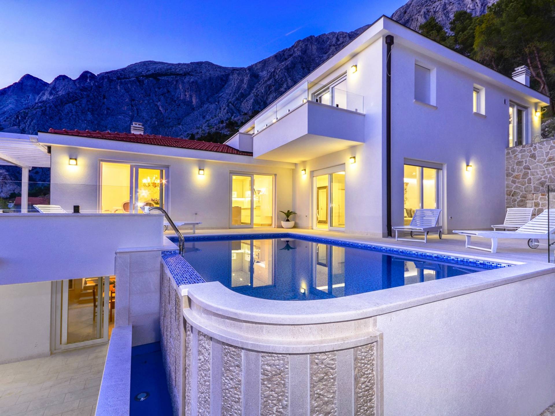 Villa Gabrielle Baška Voda - это впечатляющая вилла с 5 спальнями площадью 450 м2, полностью перестроенная в 2016 году и отвечающая очень высоким стандартам размещения туристов. Вилла Gabrielle находится в тихой бухте, в окружении красивого сада и парковочного места, если вы приедете на машине. Благодаря своей архитектуре, из всех комнат виллы открывается прекрасный вид на море, горы и острова. Благодаря большим окнам весь дом залит солнцем и светом.
