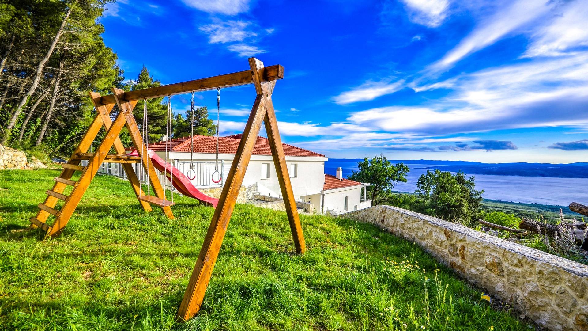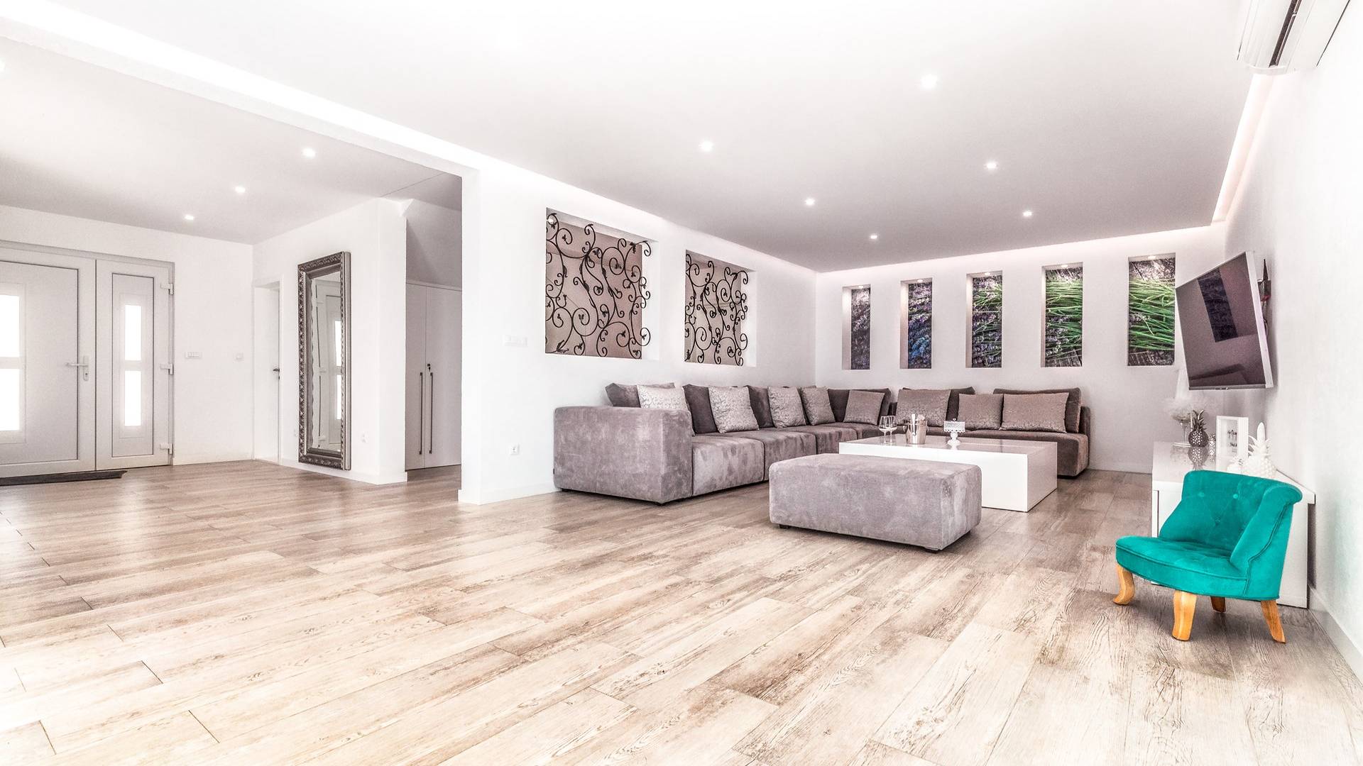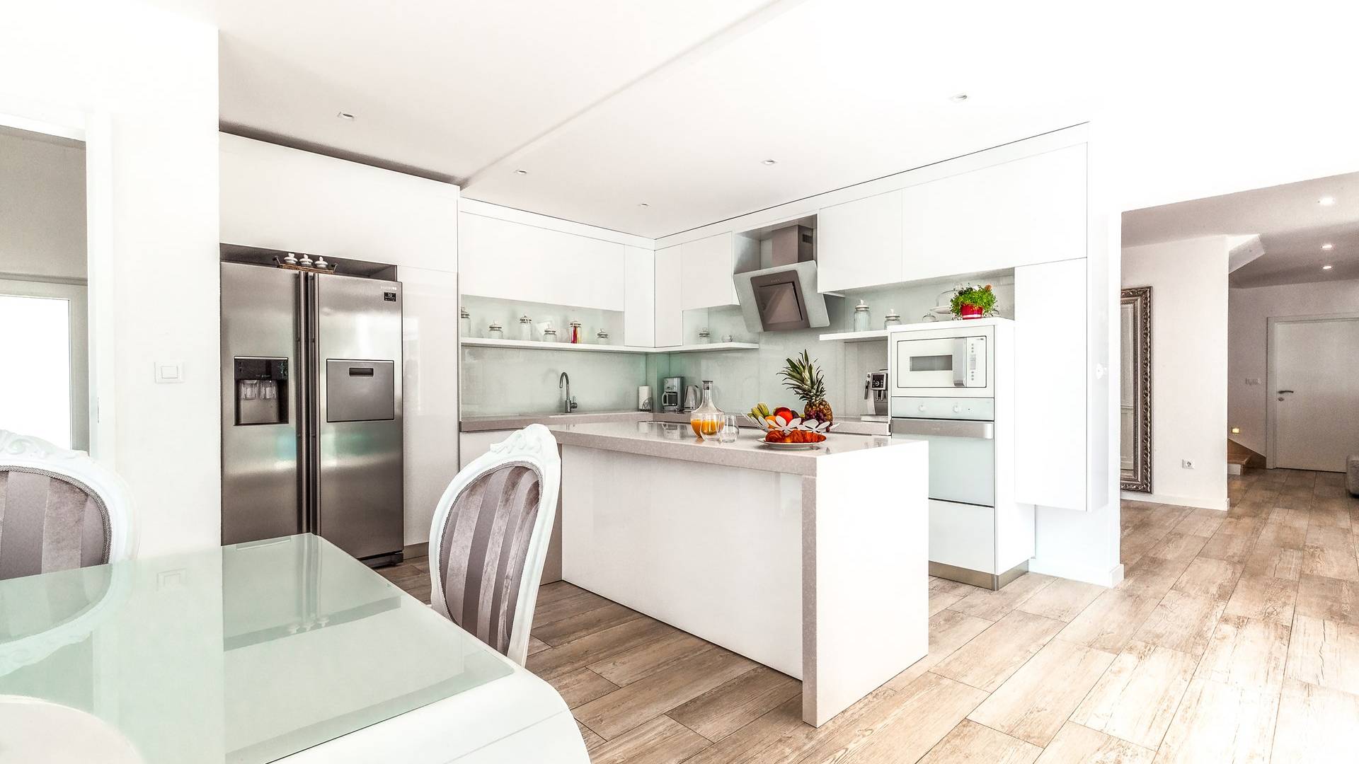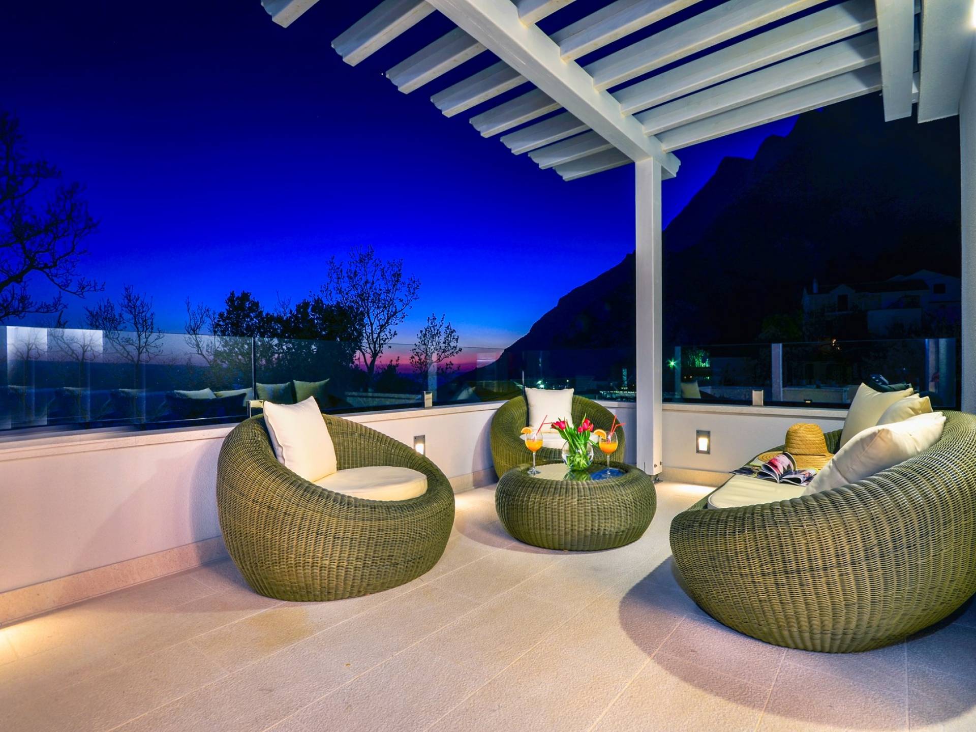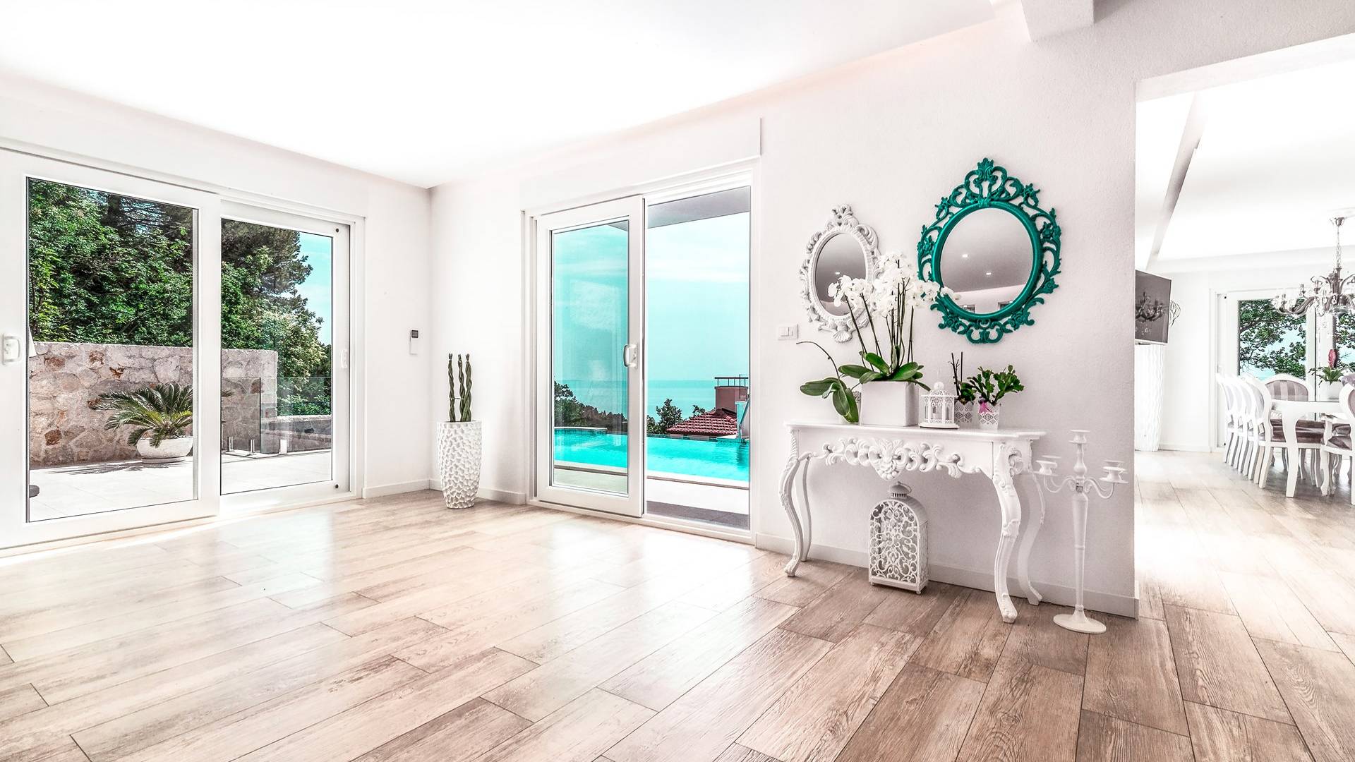 Villa Gabrielle Baška Voda - это впечатляющая вилла с 5 спальнями площадью 450 м2, полностью перестроенная в 2016 году и отвечающая очень высоким стандартам размещения туристов. Вилла Gabrielle находится в тихой бухте, в окружении красивого сада и парковочного места, если вы приедете на машине. Благодаря своей архитектуре, из всех комнат виллы открывается прекрасный вид на море, горы и острова. Благодаря большим окнам весь дом залит солнцем и светом.
