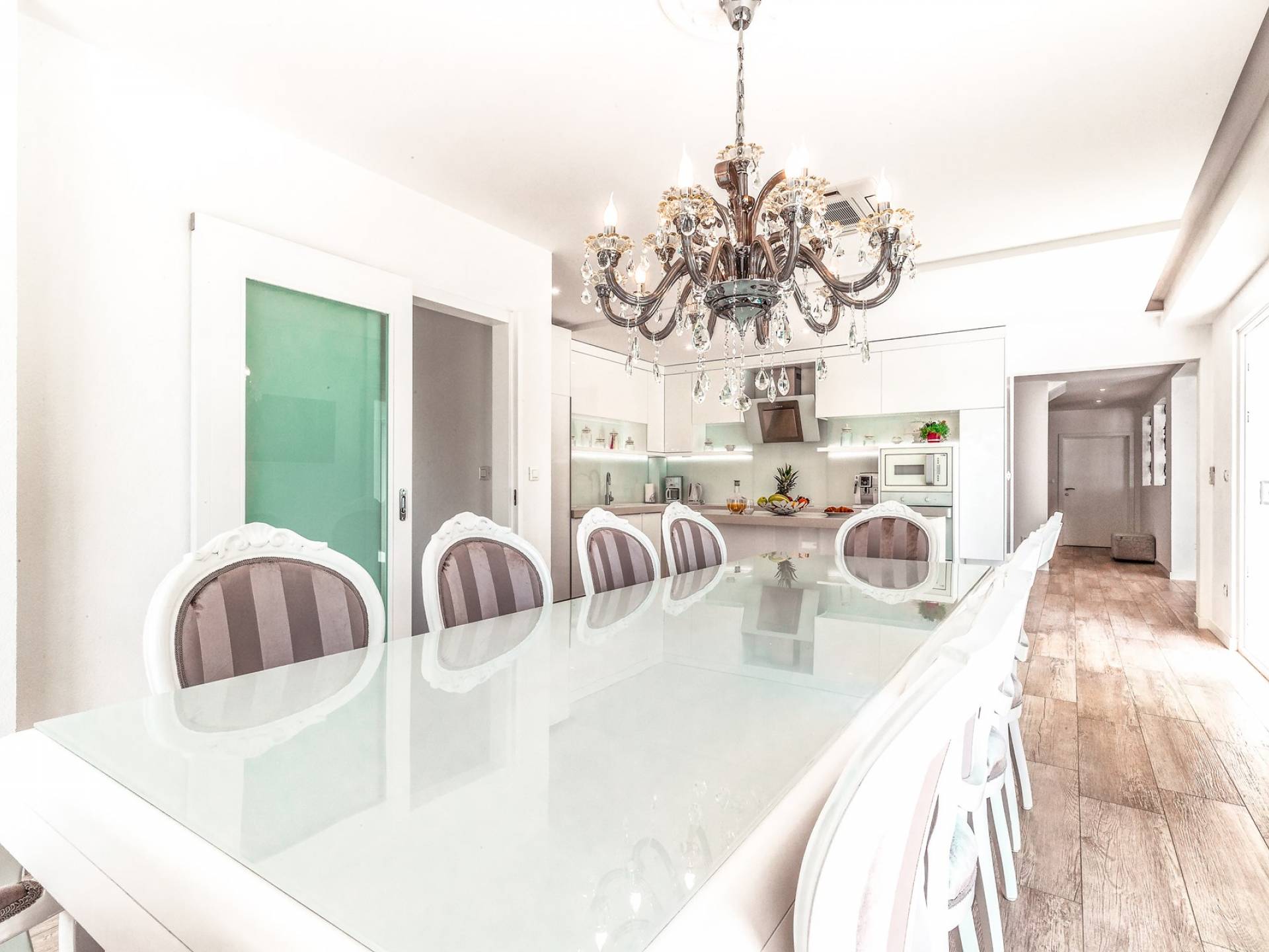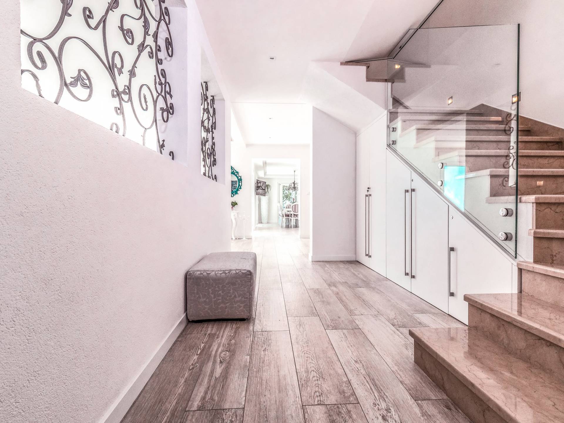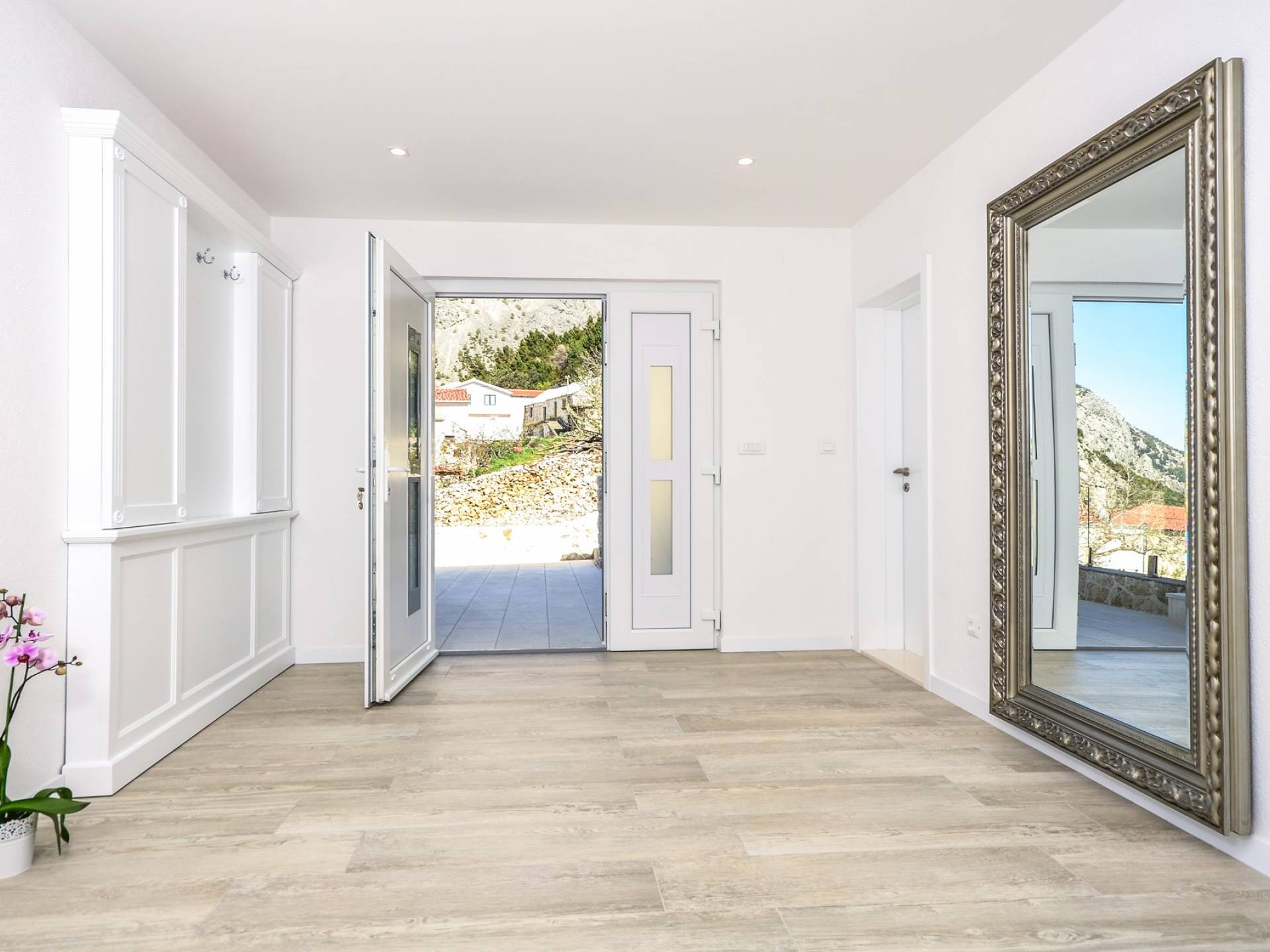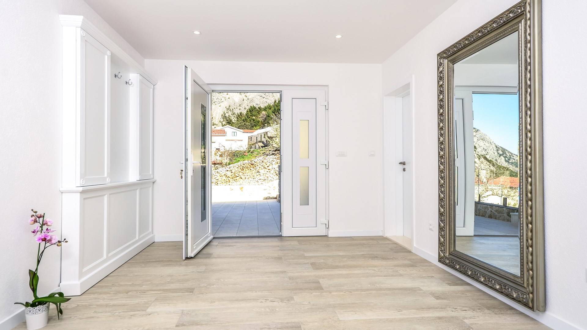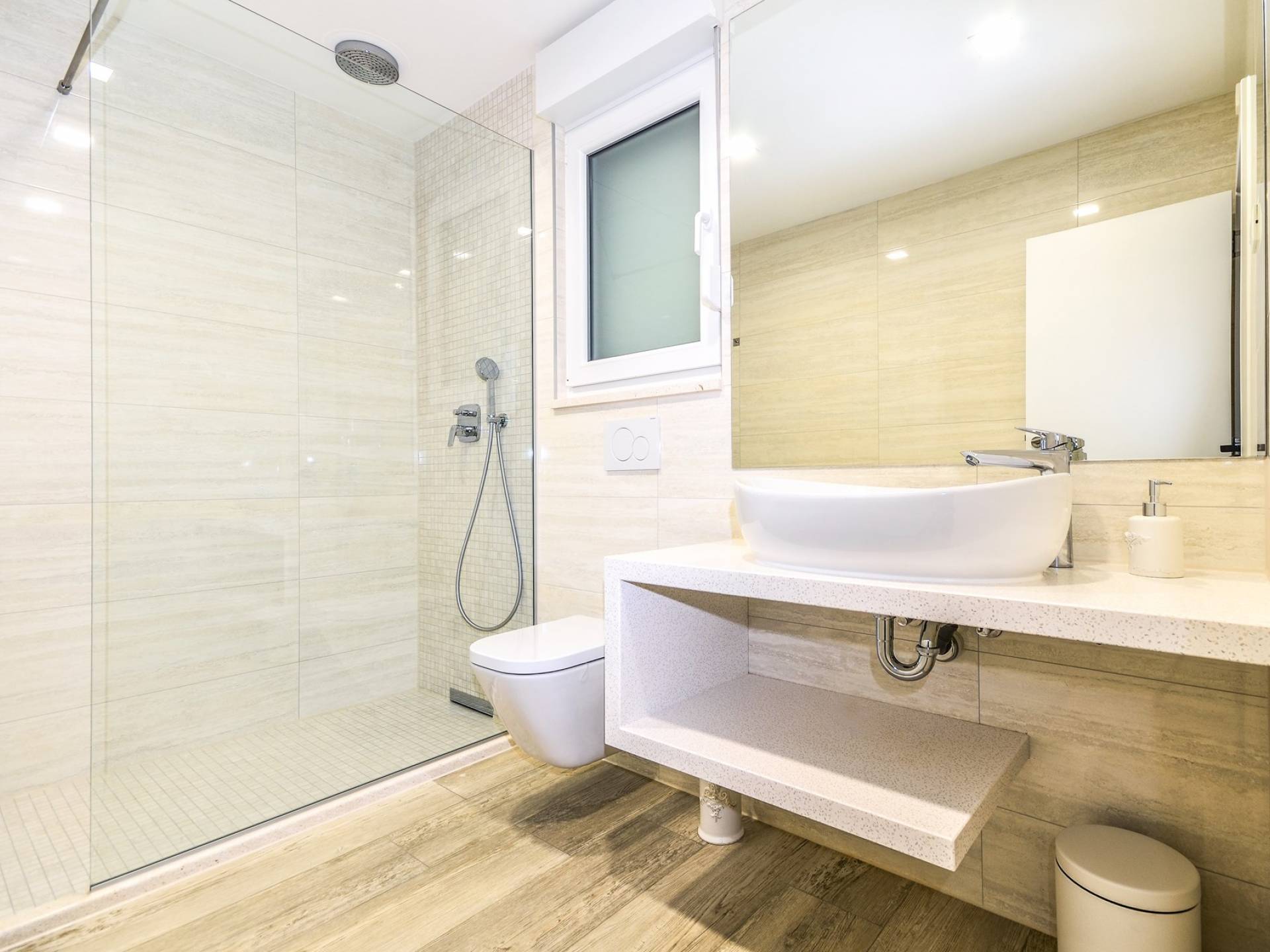 Villa Gabrielle Baška Voda - это впечатляющая вилла с 5 спальнями площадью 450 м2, полностью перестроенная в 2016 году и отвечающая очень высоким стандартам размещения туристов. Вилла Gabrielle находится в тихой бухте, в окружении красивого сада и парковочного места, если вы приедете на машине. Благодаря своей архитектуре, из всех комнат виллы открывается прекрасный вид на море, горы и острова. Благодаря большим окнам весь дом залит солнцем и светом.