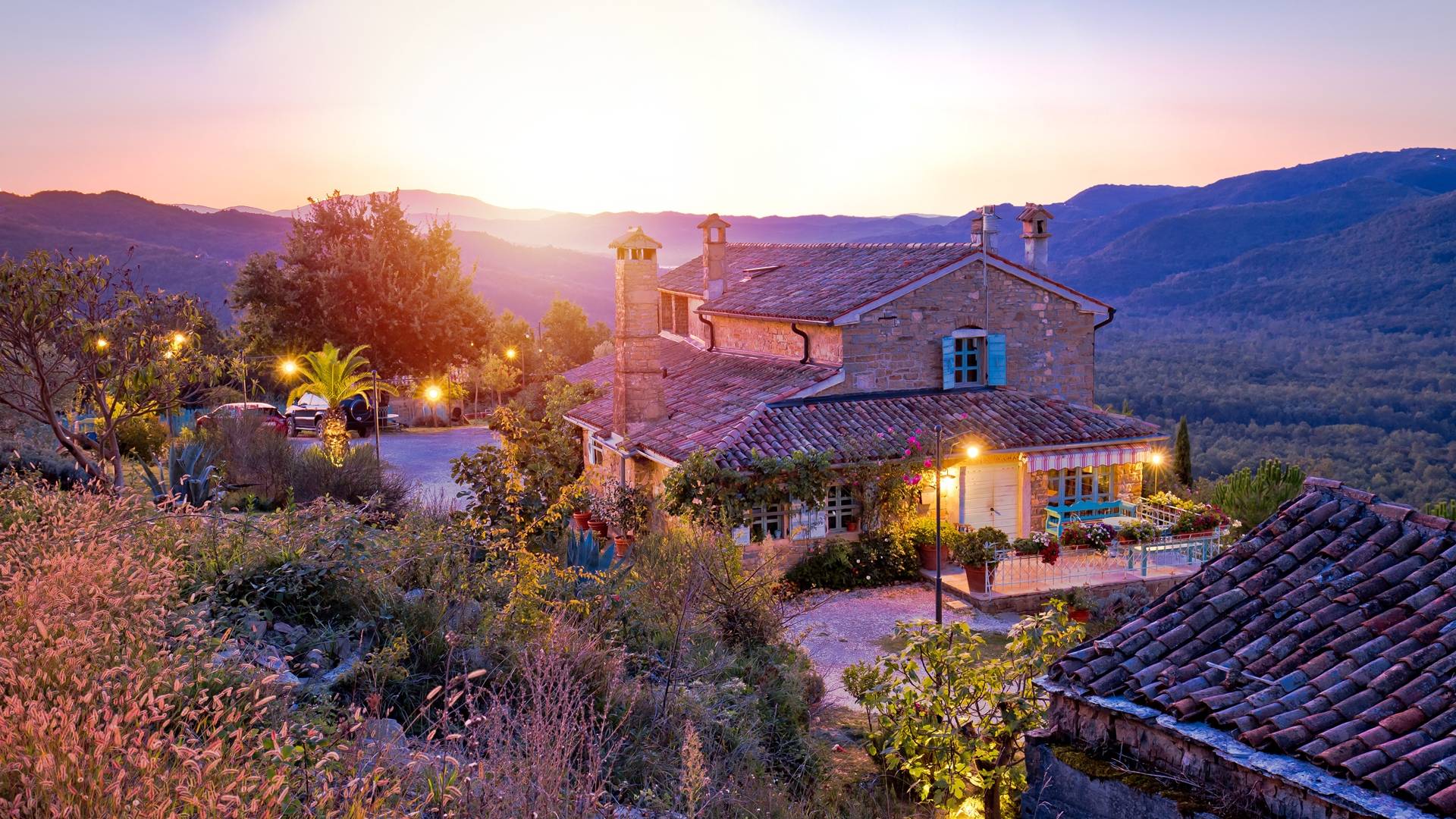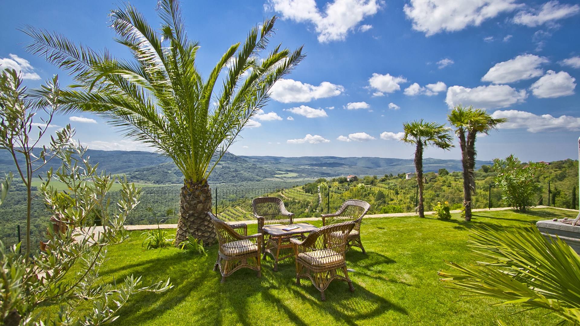 Уютная и домашняя, но в то же время изысканная и особенная, вилла Sancta Maria Motovun отличается атмосферой богемного шика, которая нам очень понравилась. Он расположен в большом частном саду, засаженном пальмами, лимонными деревьями, олеандром, азалией и ароматными кустами лаванды (все красиво освещены ночью), а с одной стороны есть бирюзовый бассейн, а также органический огород, где вы можете выбрать свой собственный. производить.