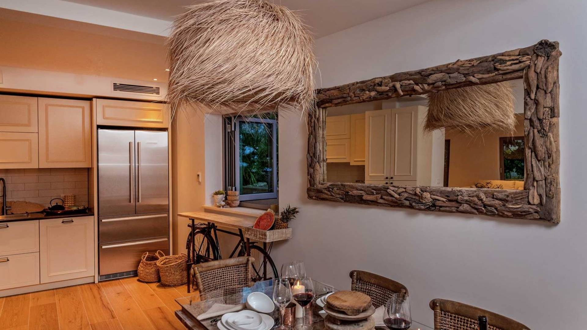 Артефакты со всего мира создают уникальный дом для отдыха с декором в деревенском стиле. Эти эклектичные сокровища придают зданию индивидуальное очарование. Сочетание деревянных и белых элементов придает яркость каждому уголку дома, а искусно выполненные произведения искусства украшают эту изысканную роскошную жемчужину на берегу моря.