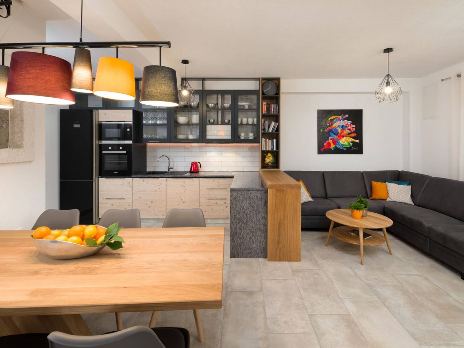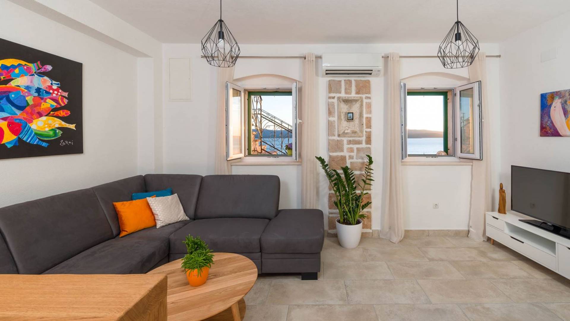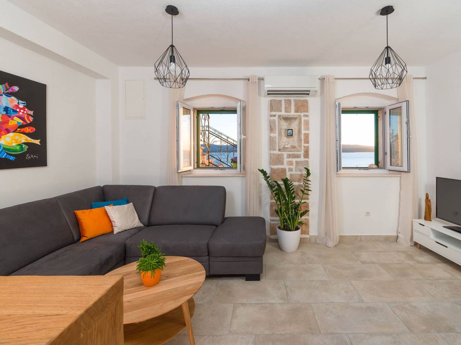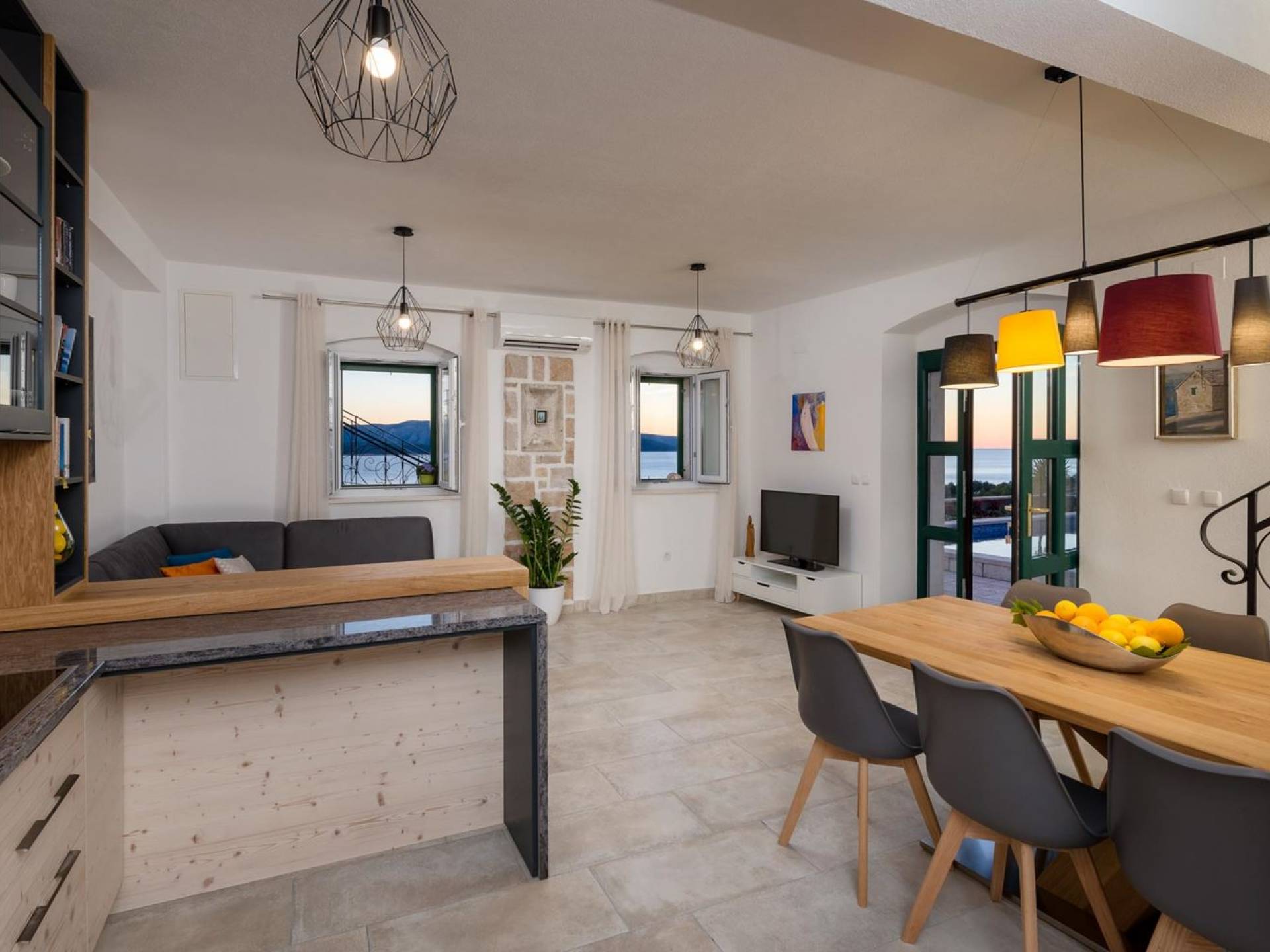 Самая волшебная часть собственности - это захватывающий дух вид на синее море, виноградники, оливковые рощи, остров Хвар... Незабываемые закаты и рассветы, а также все чудесные оттенки синего между ними.