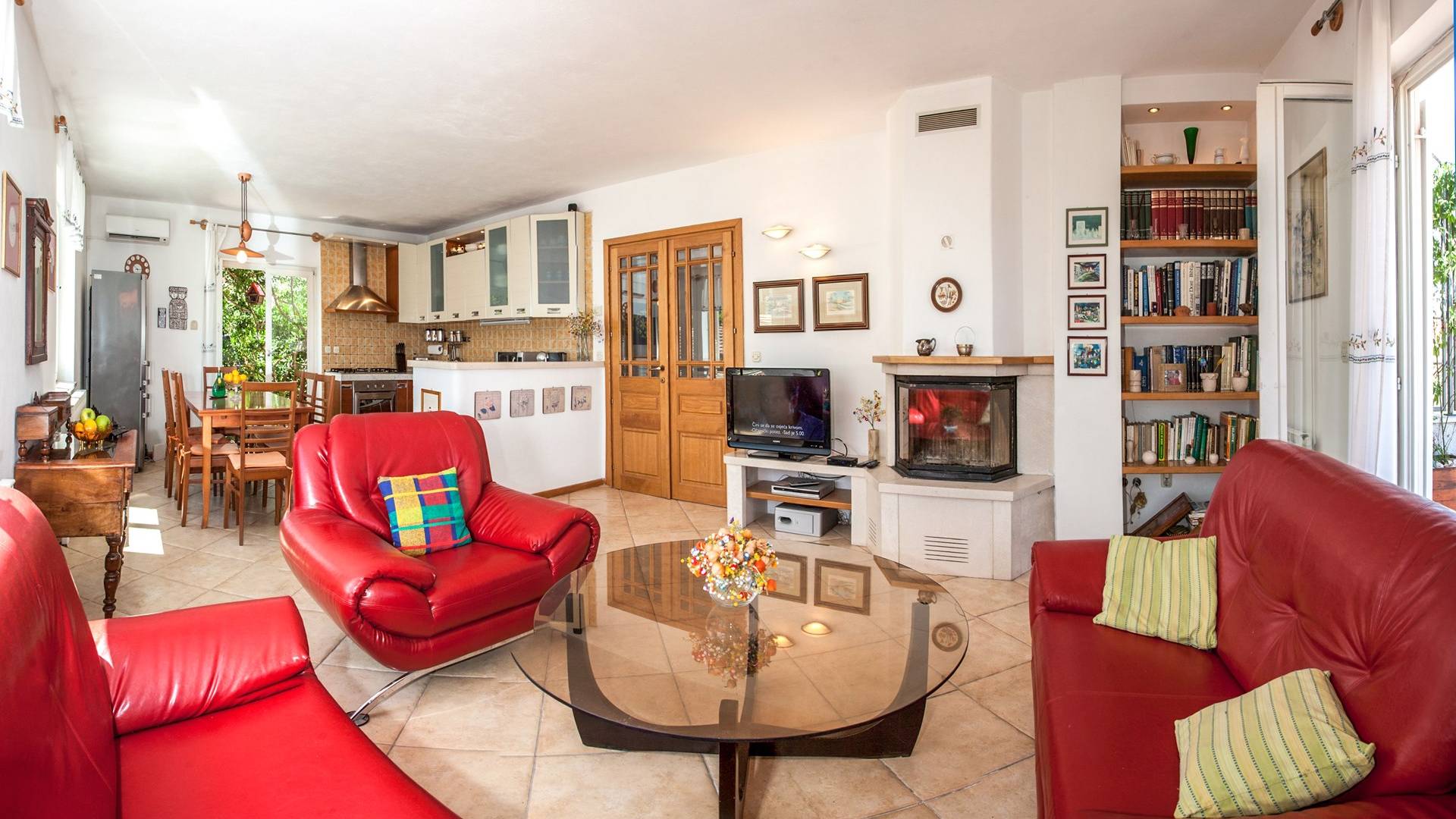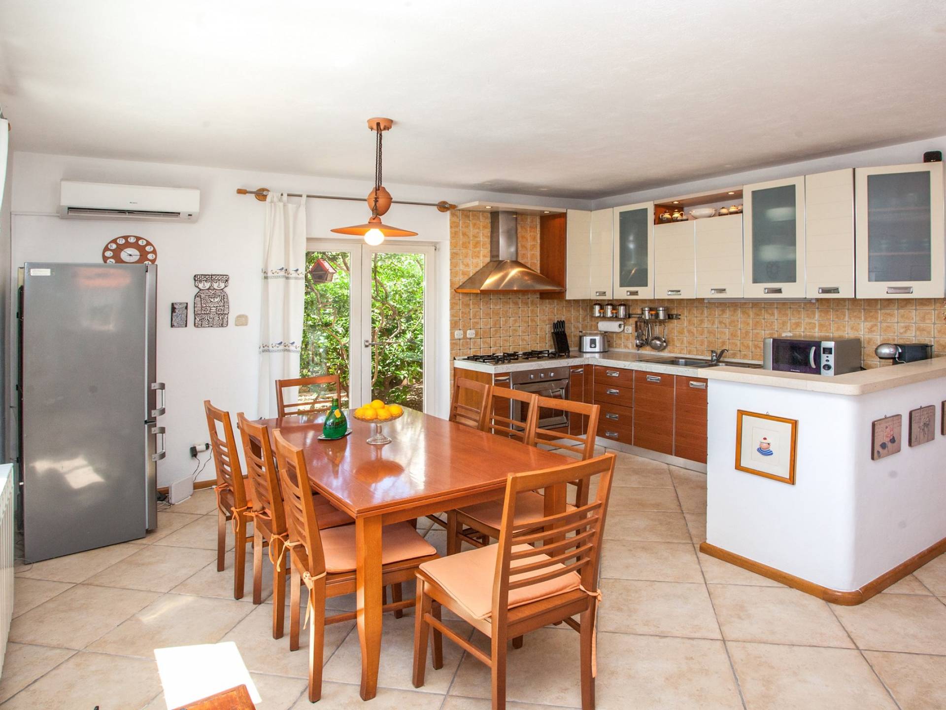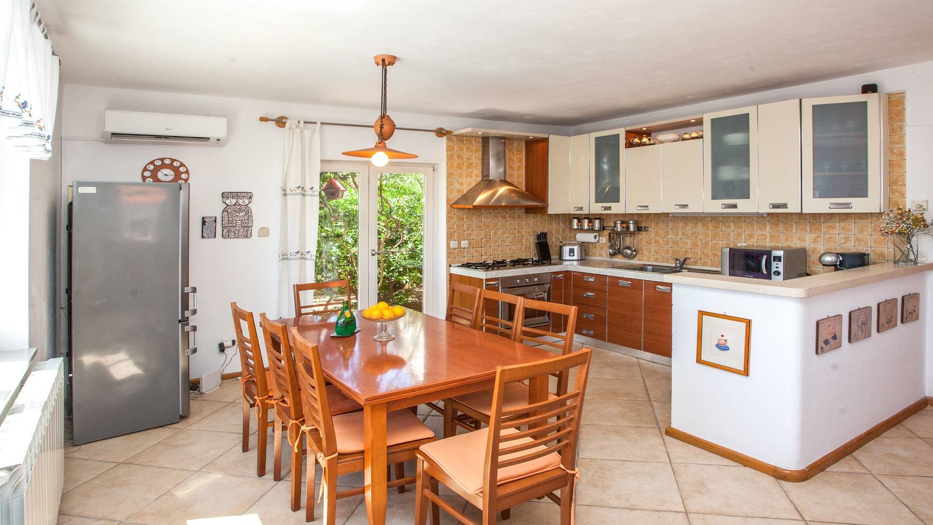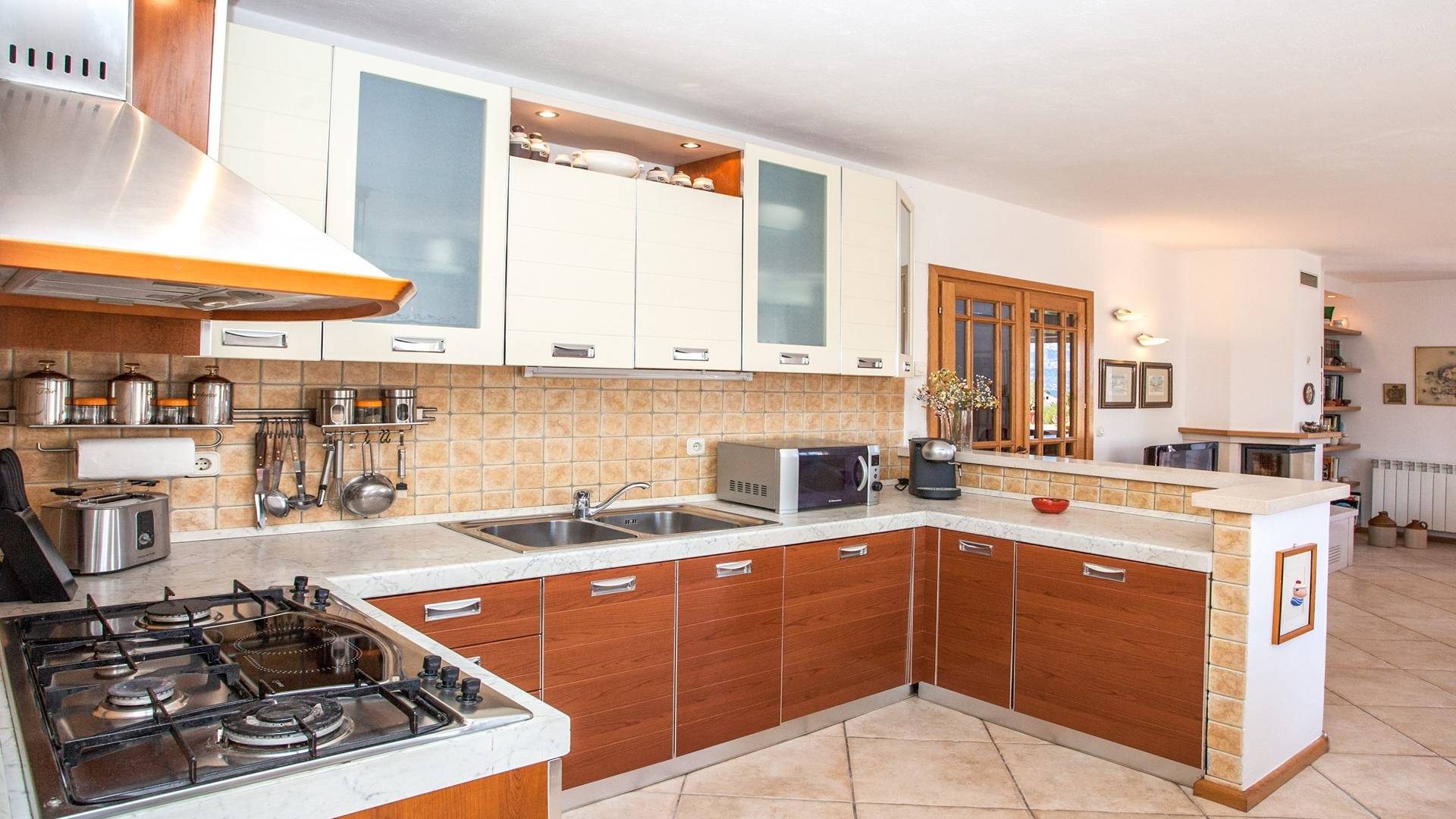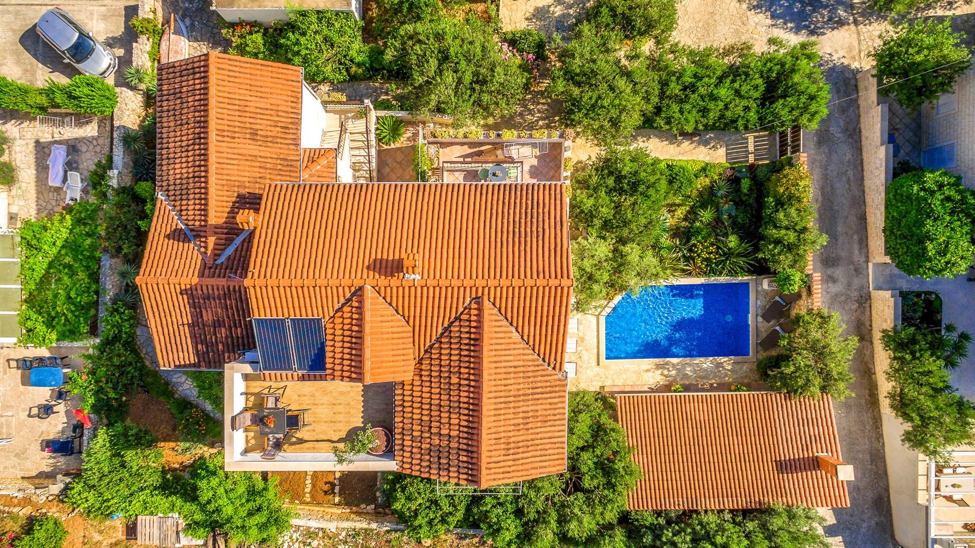 Интерьер дома украшен антикварной деревянной мебелью с некоторыми старинными приспособлениями, которые больше не используются. Кухня, столовая и гостиная в одном лице будут хорошо прогреваться зимой благодаря камину, рядом с которым находится книжный шкаф, и балконной террасе. Здесь можно посидеть, выпить кофе и насладиться видом на Супетар и город Сплит.