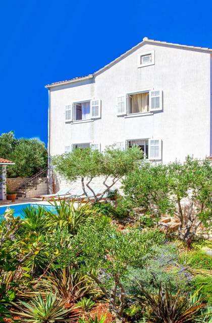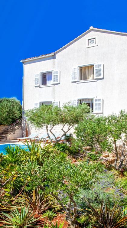 Вилла Лкресия Брач расположена в центре, хотя на первый взгляд этого и не скажешь: большой сад, заботливо и тщательно обустроенный мелкими и крупными растениями, кактусами, агавами, гончарными изделиями, цветами разных цветов, оливковыми и лимонными и занавес плюща доминирует над областью.