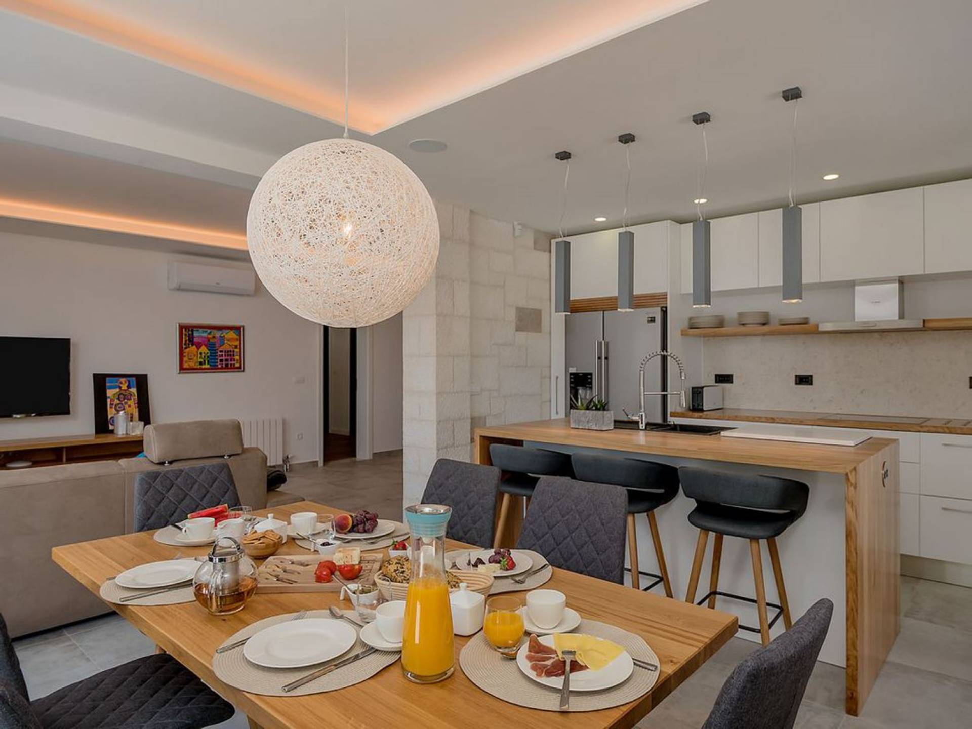 Вилла Неа Брач - это роскошная вилла с 4 спальнями и частным бассейном. Отель Nea, спрятанный среди террасных садов и веранд с видом на Адриатическое море, находится всего в нескольких минутах езды от живописного центра Сумартина. Всего в нескольких шагах от пляжа, он расположен на двух этажах и может вместить до восьми гостей. Панорамный бассейн, светлые внутренние помещения и идеальное сочетание современного дизайна и традиционной средиземноморской архитектуры делают эту виллу идеальным местом для спокойного отдыха на побережье острова Брач, находясь в непосредственной близости от самых привлекательных городов и чудес, что делает ее отличная отправная точка для однодневных поездок.