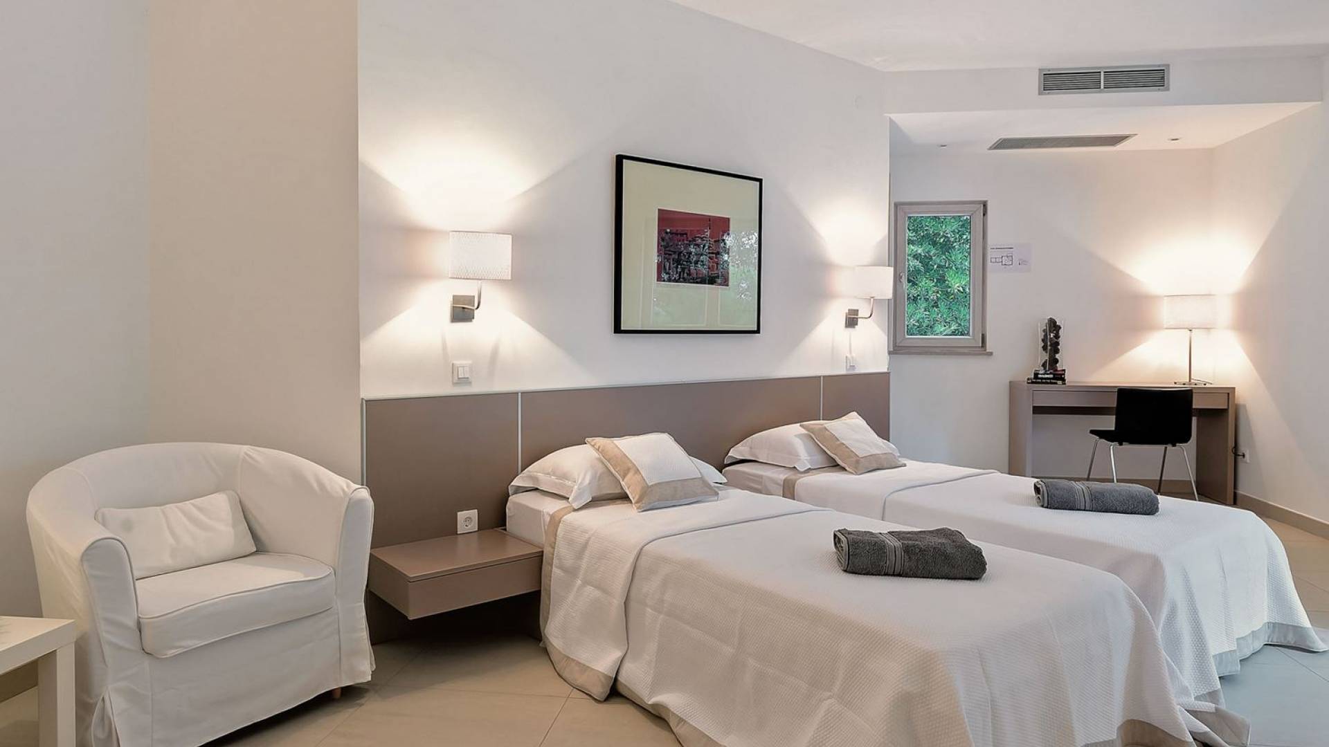 Вилла имеет 7 спален, 7 ванных комнат и подходит для размещения 14 человек. Эта вилла с семью спальнями оснащена кондиционером с индивидуальной системой контроля и полами с подогревом для зимней аренды. Гостиная и столовая выходят на частный бассейн и солнечную террасу, откуда также открывается великолепный вид.