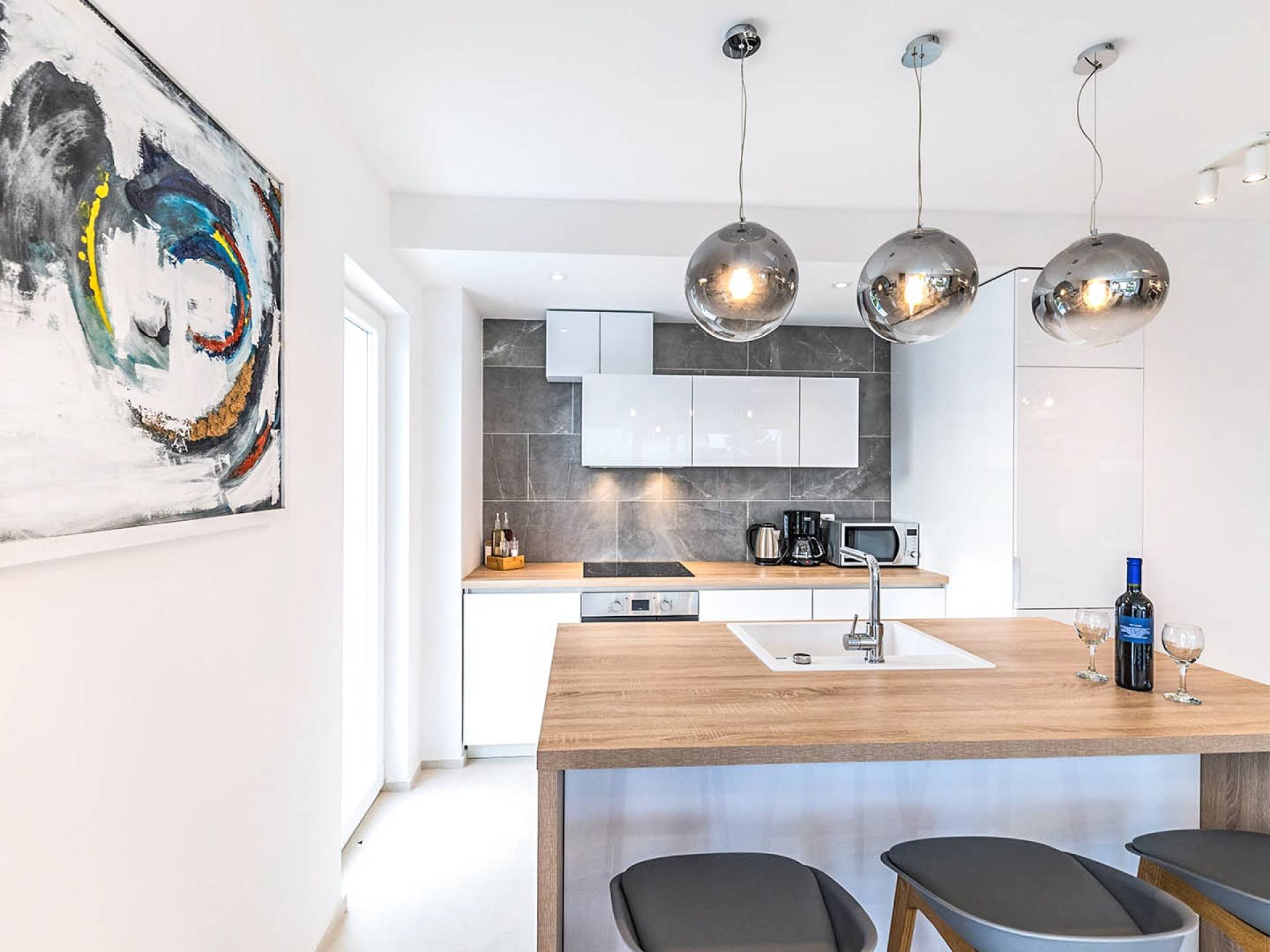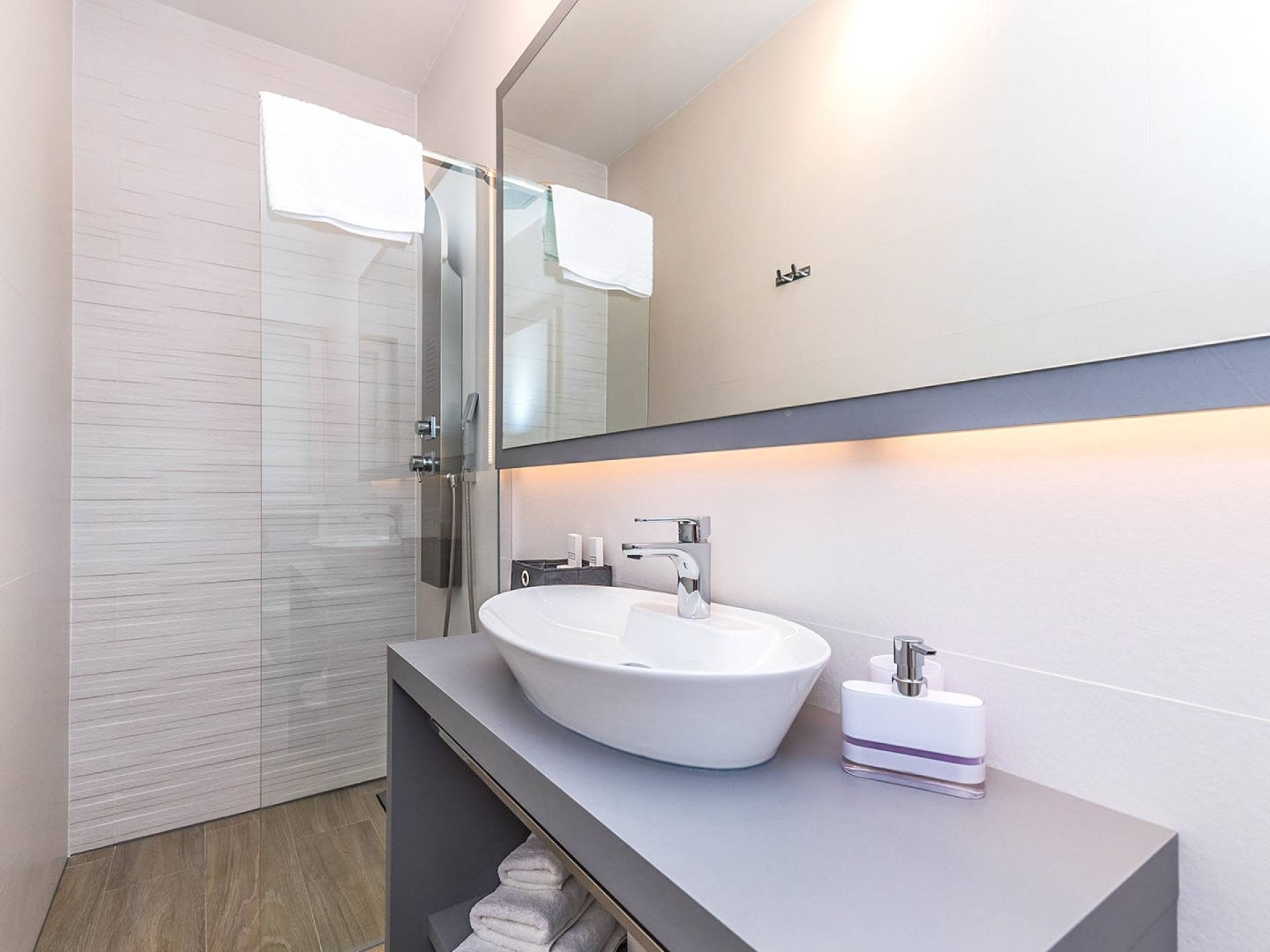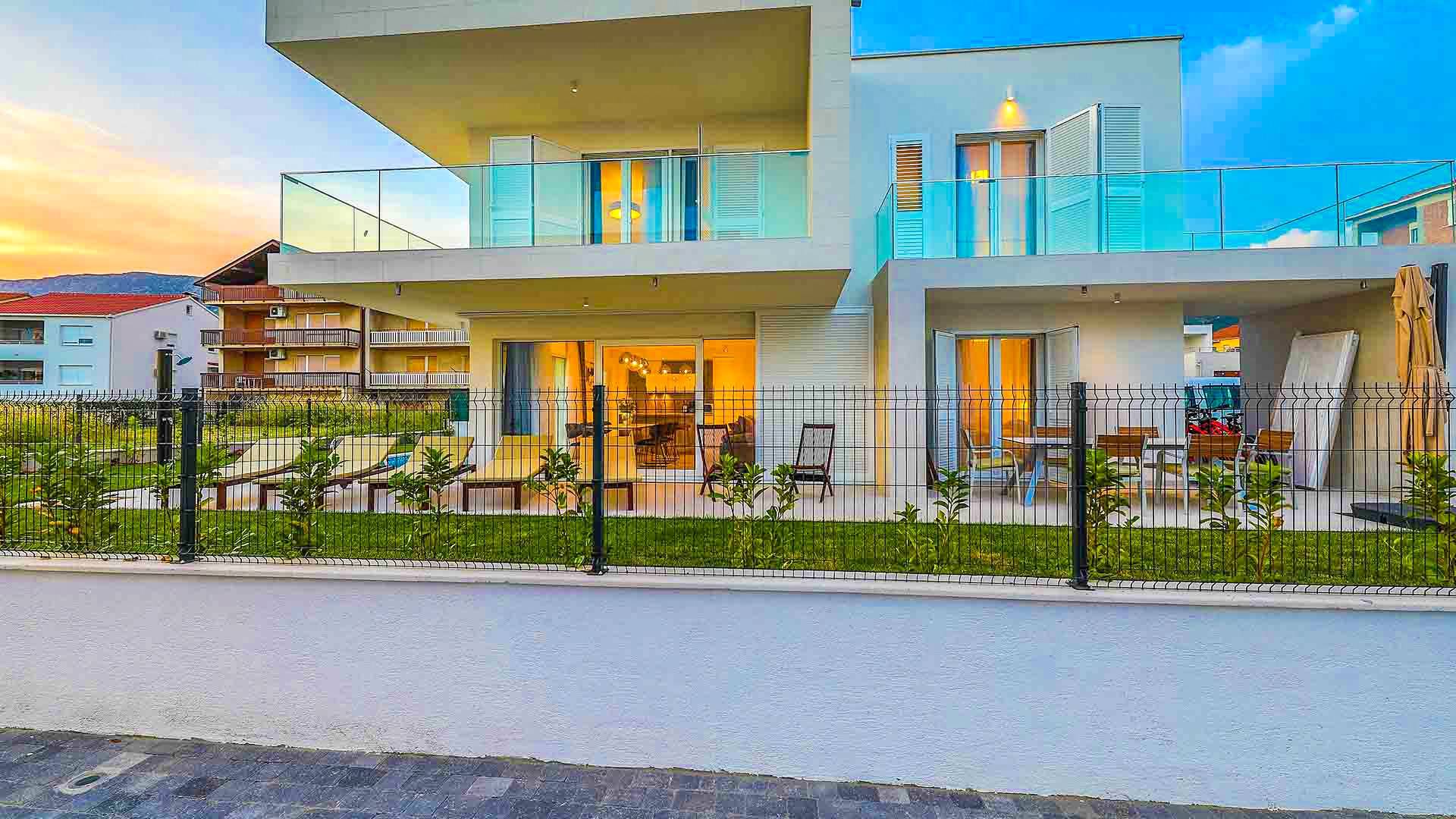 Резиденция расположена всего в 900 м от ближайшего пляжа и в нескольких минутах ходьбы от ближайшего продуктового магазина (180 м), ресторанов (650 м) и кафе (800 м), а пристань для яхт Каштела всего в 950 м. . Отель имеет легкий доступ к главной прибрежной дороге и автомагистрали, предлагая множество туристических возможностей в прибрежном регионе и в глубине Далмации.