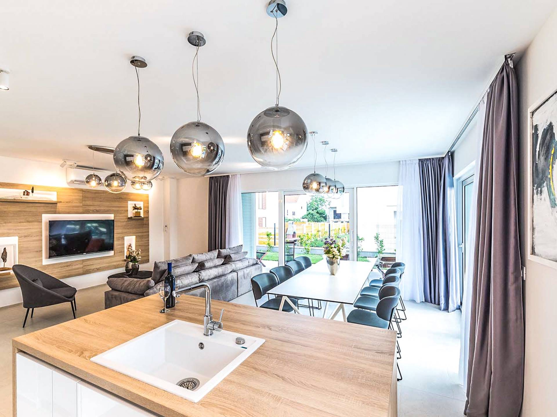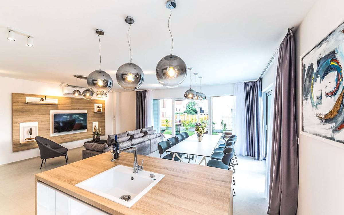 Вилла Элизабет Сплит занимает площадь 142 м2, разделенную на первый и второй этаж, и состоит из 4 современных спален, в которых могут с комфортом разместиться до 10 человек. Первый этаж спроектирован как просторная и светлая гостиная, которая состоит из полностью оборудованной современной кухни, современной гостиной с обеденной зоной, 1 спальни с двуспальной кроватью и 1 ванной комнаты с душевой кабиной. Из гостиной есть выход в сад и к бассейну через большую раздвижную стеклянную дверь, благодаря которой вся зона становится открытой.