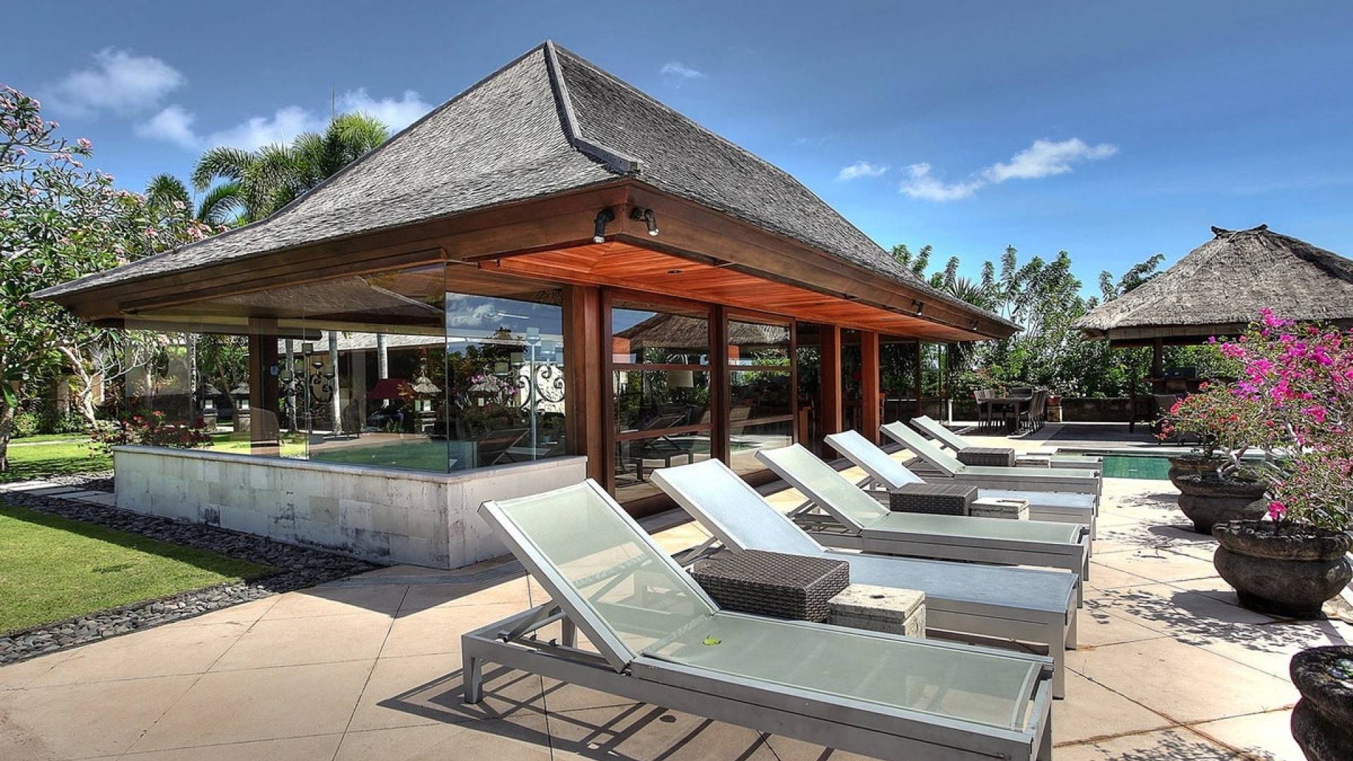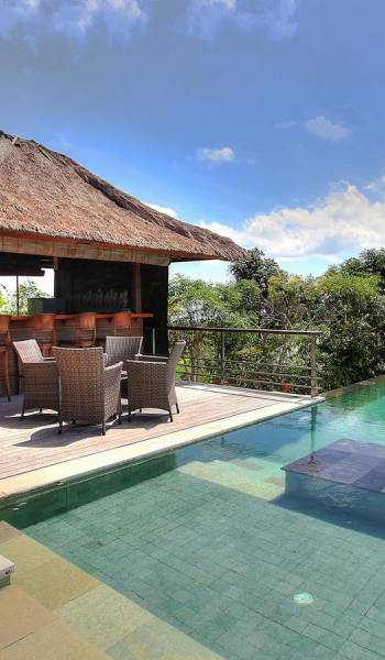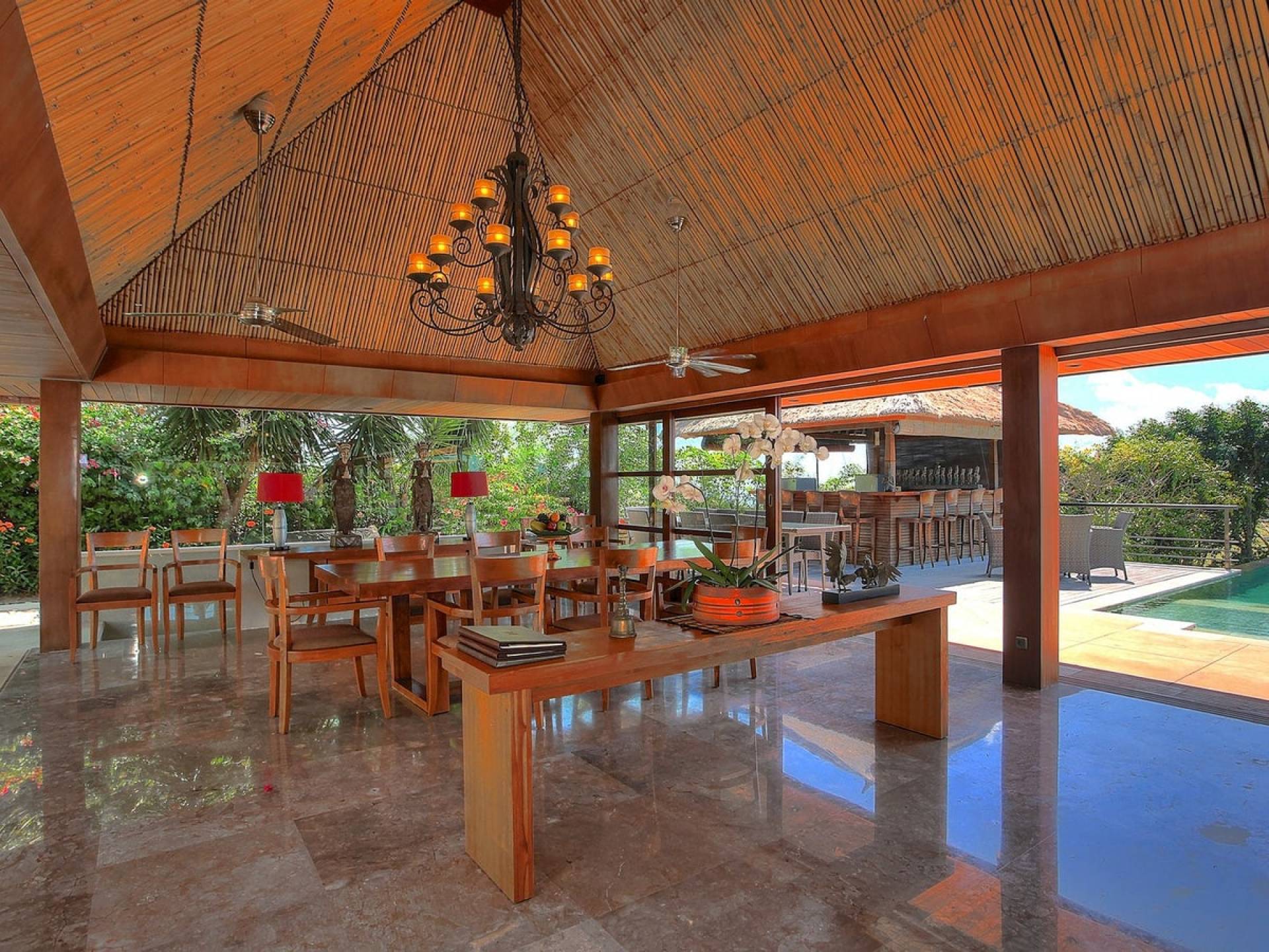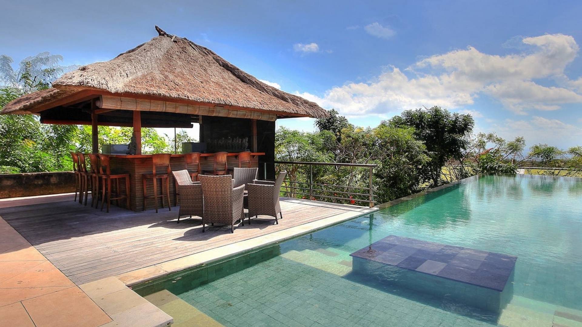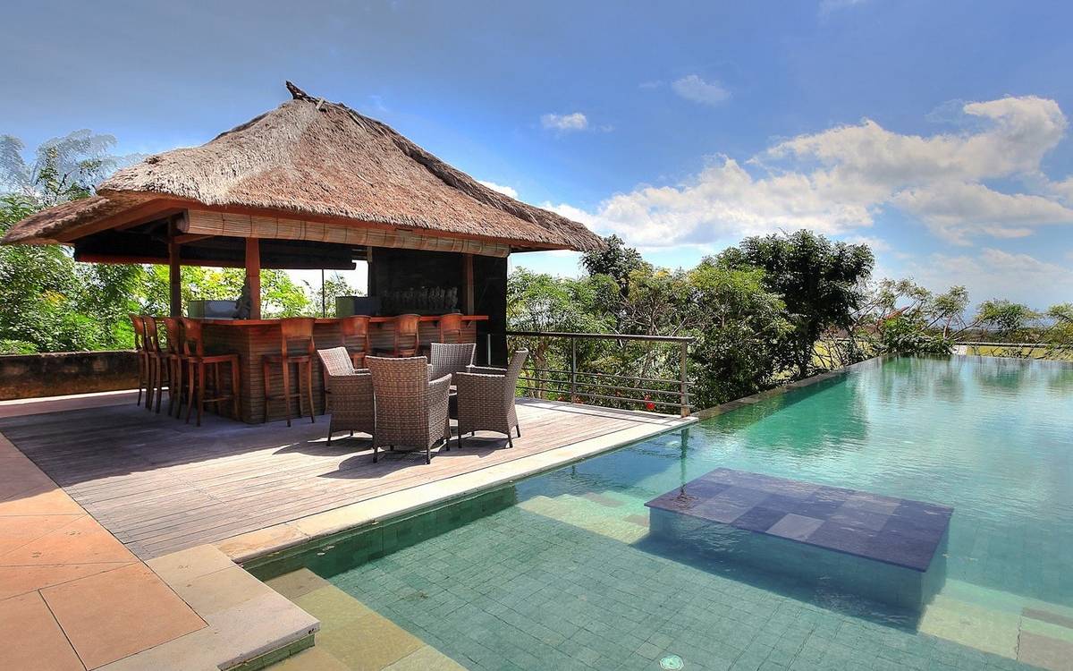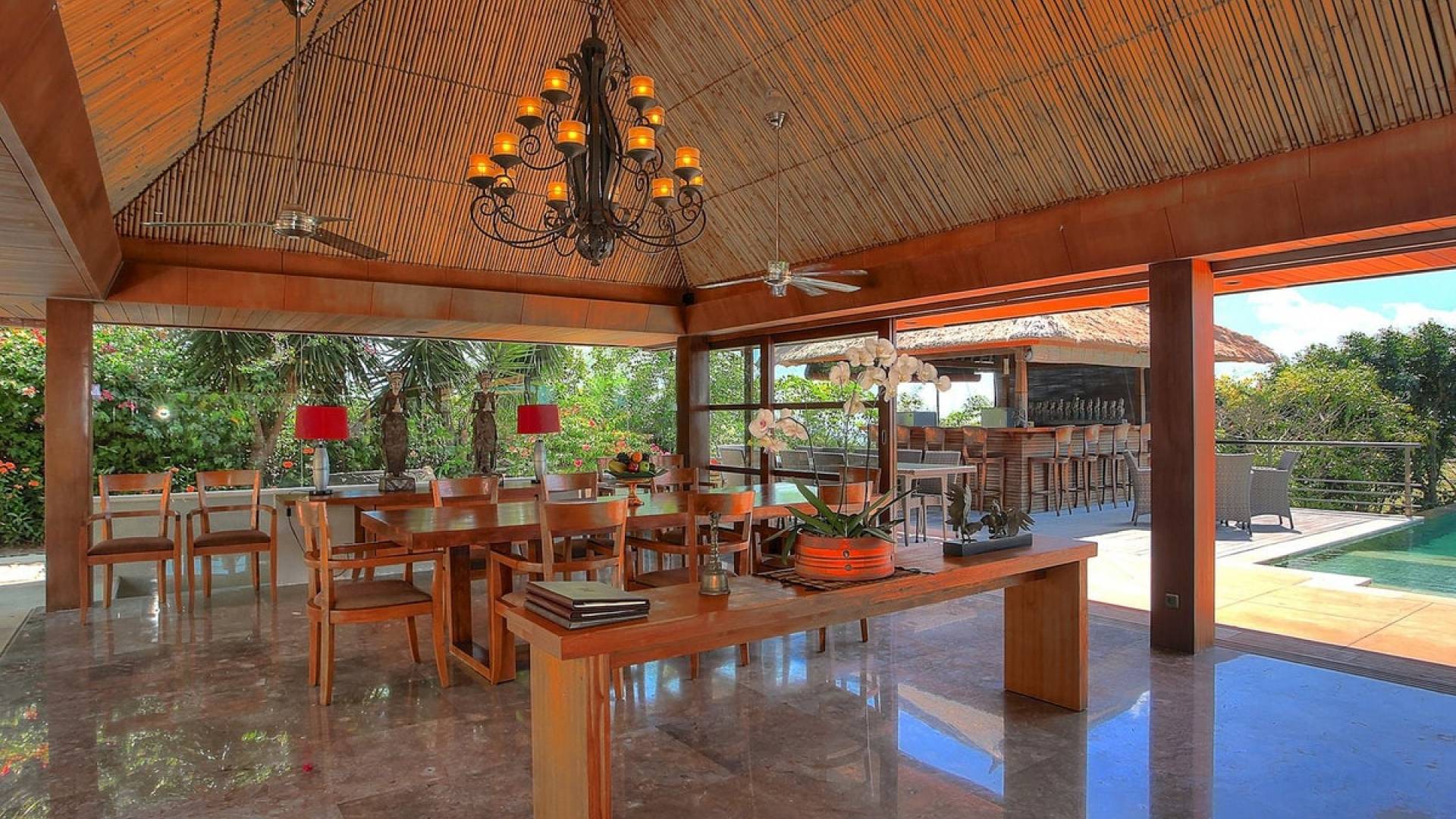 Эта полностью укомплектованная вилла с пятью спальнями, спроектированная так, чтобы максимально открывать великолепные виды и ловить ветерок, состоит из нескольких павильонов и впечатляющего 16-метрового частного бассейна, дополненного лужайками, террасами и водными элементами. В современной балийской архитектуре используются такие местные материалы, как палиманский камень, тиковое дерево и кровельная черепица из железного дерева.