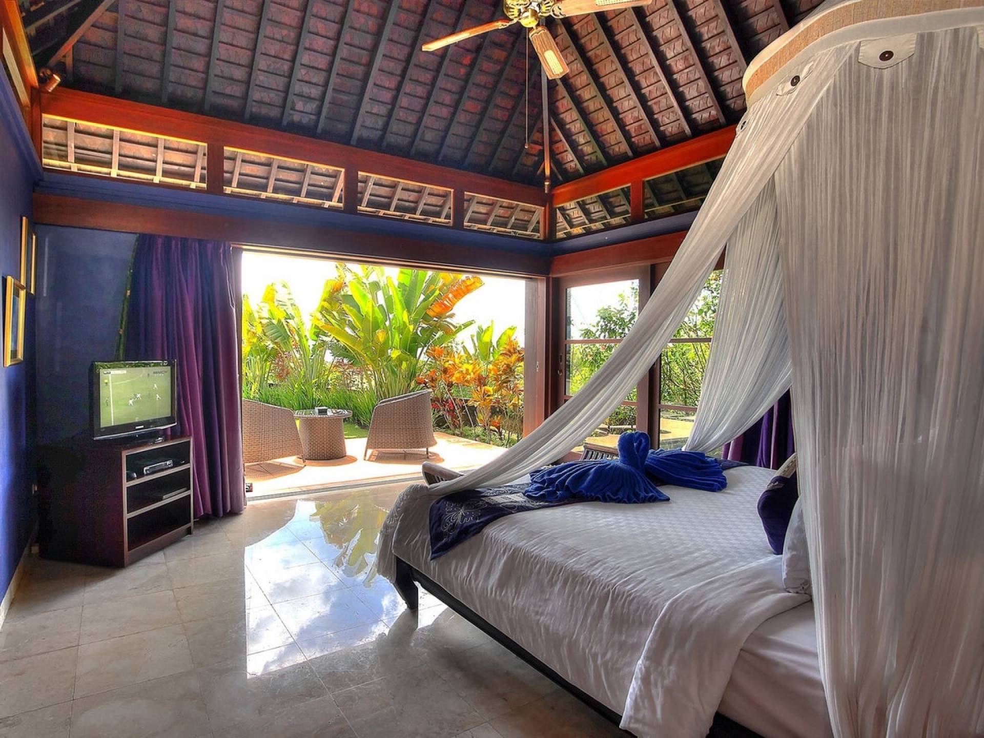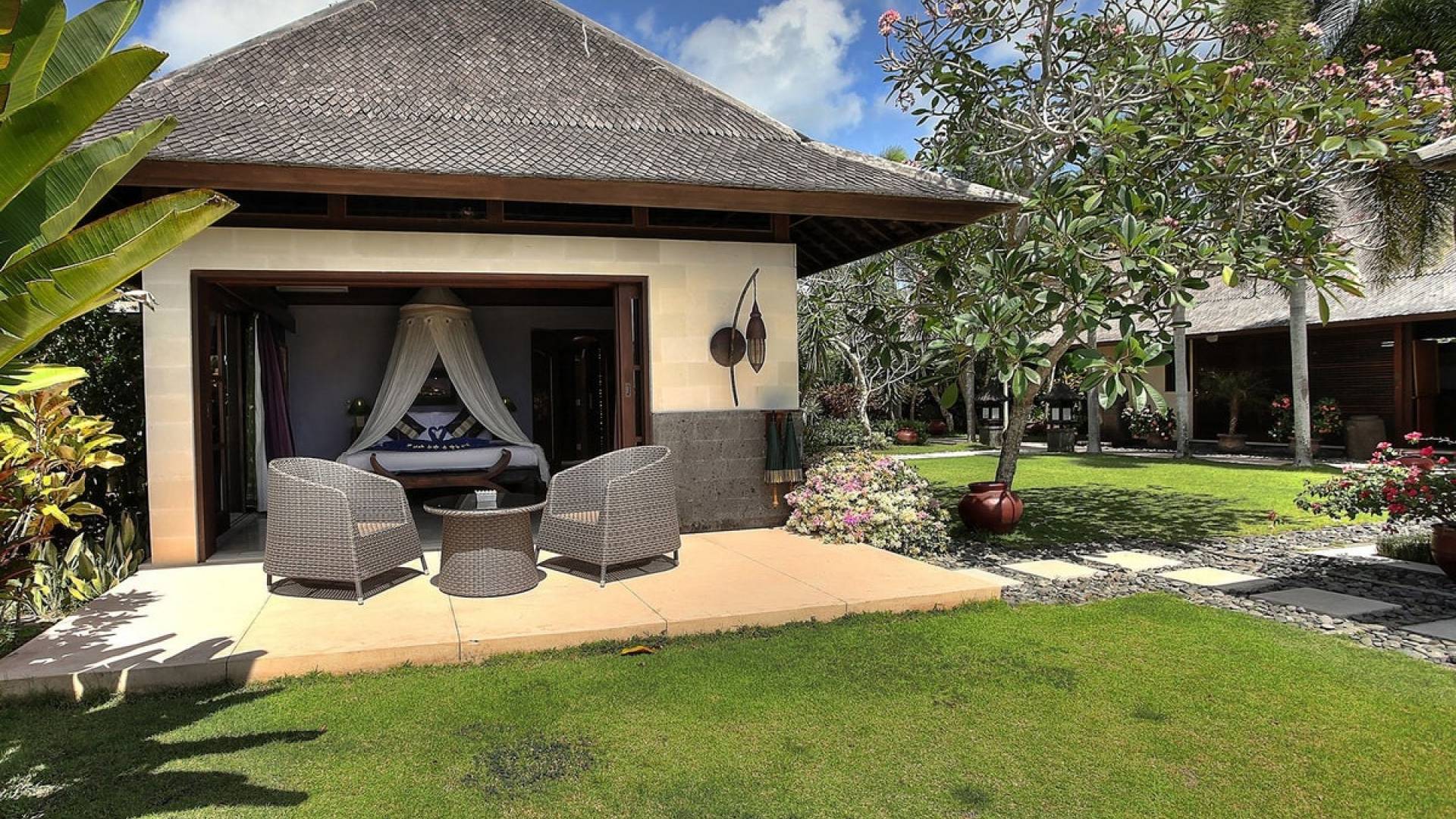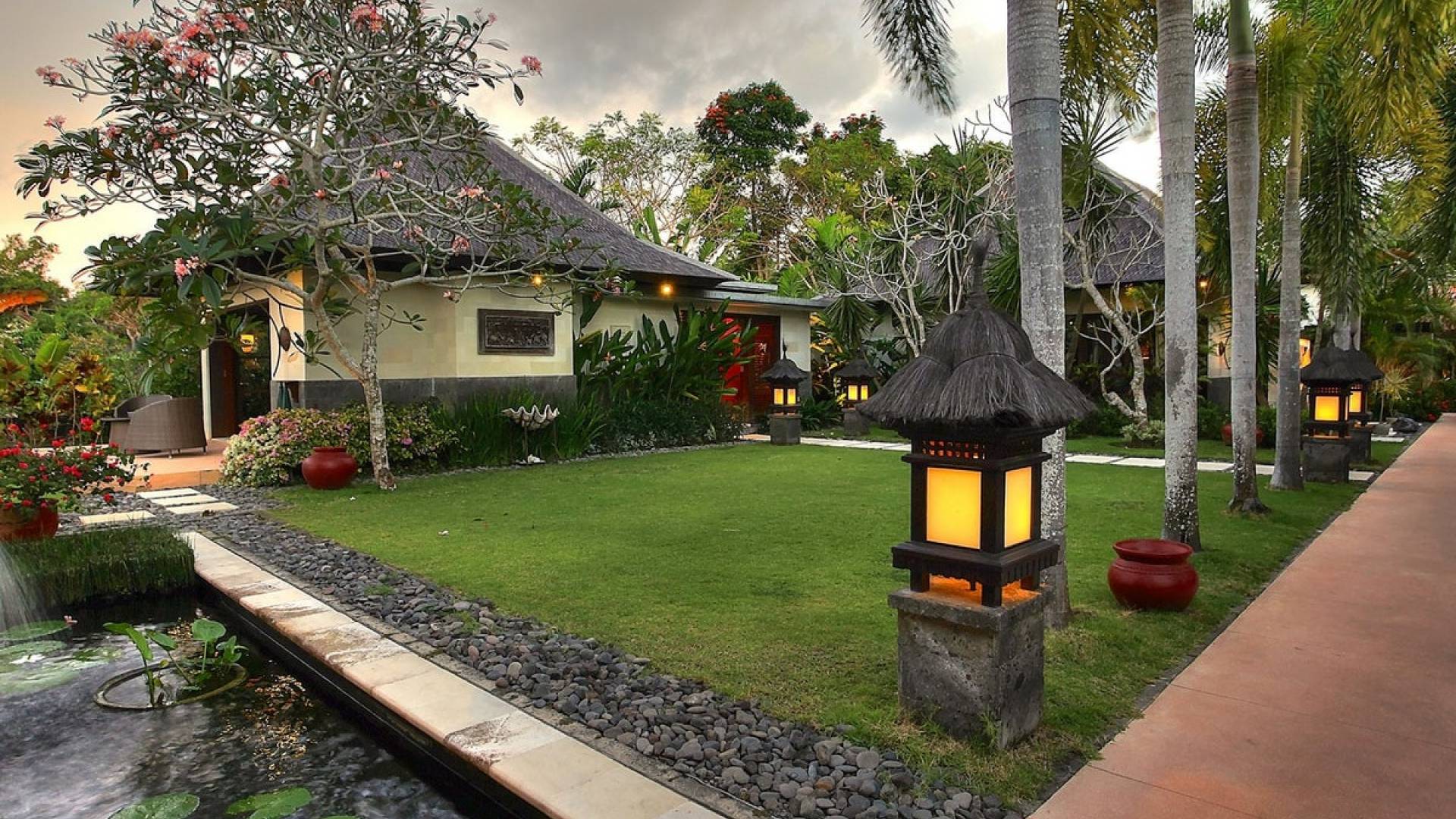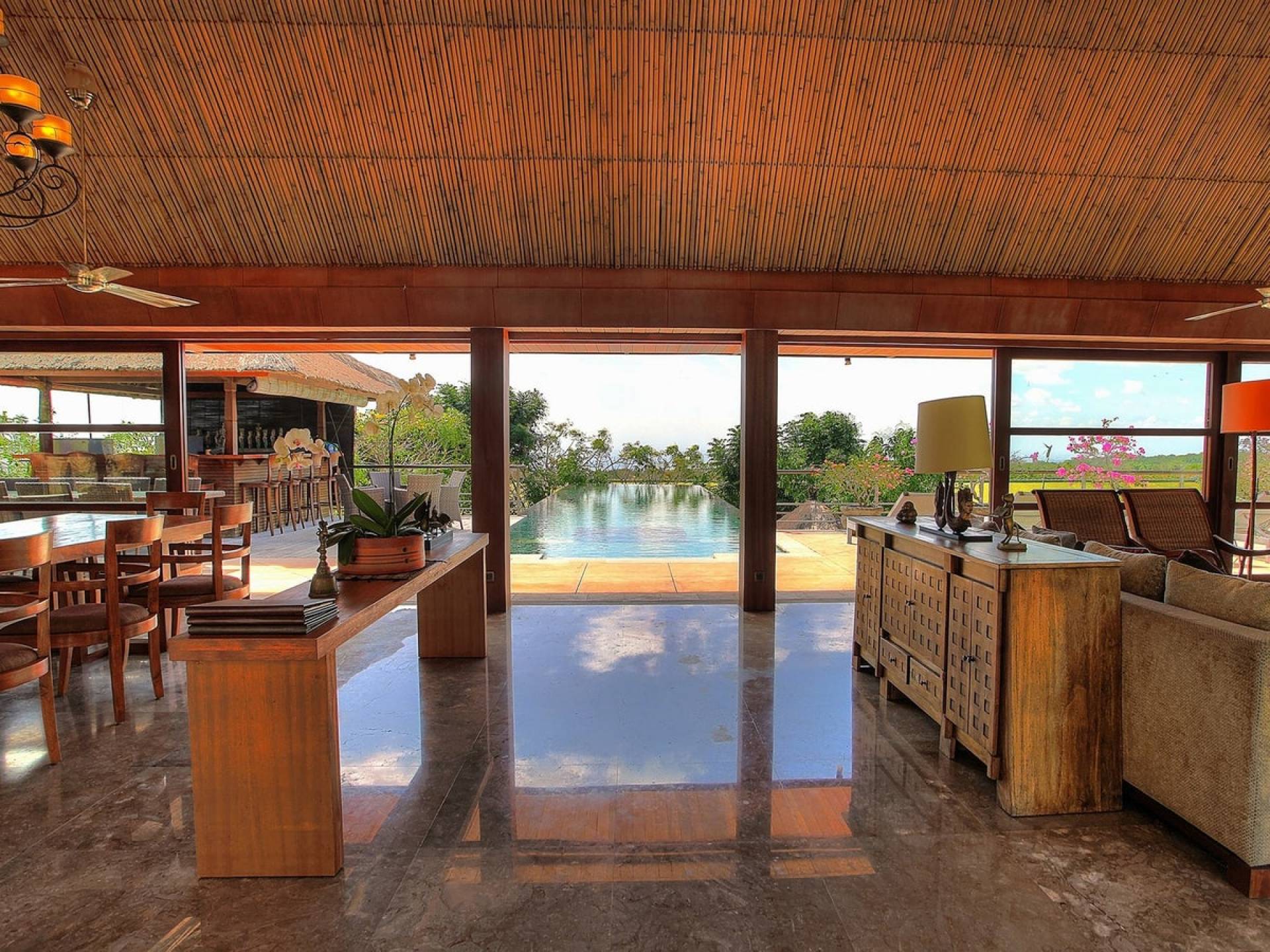 Эта полностью укомплектованная вилла с пятью спальнями, спроектированная так, чтобы максимально открывать великолепные виды и ловить ветерок, состоит из нескольких павильонов и впечатляющего 16-метрового частного бассейна, дополненного лужайками, террасами и водными элементами. В современной балийской архитектуре используются такие местные материалы, как палиманский камень, тиковое дерево и кровельная черепица из железного дерева.