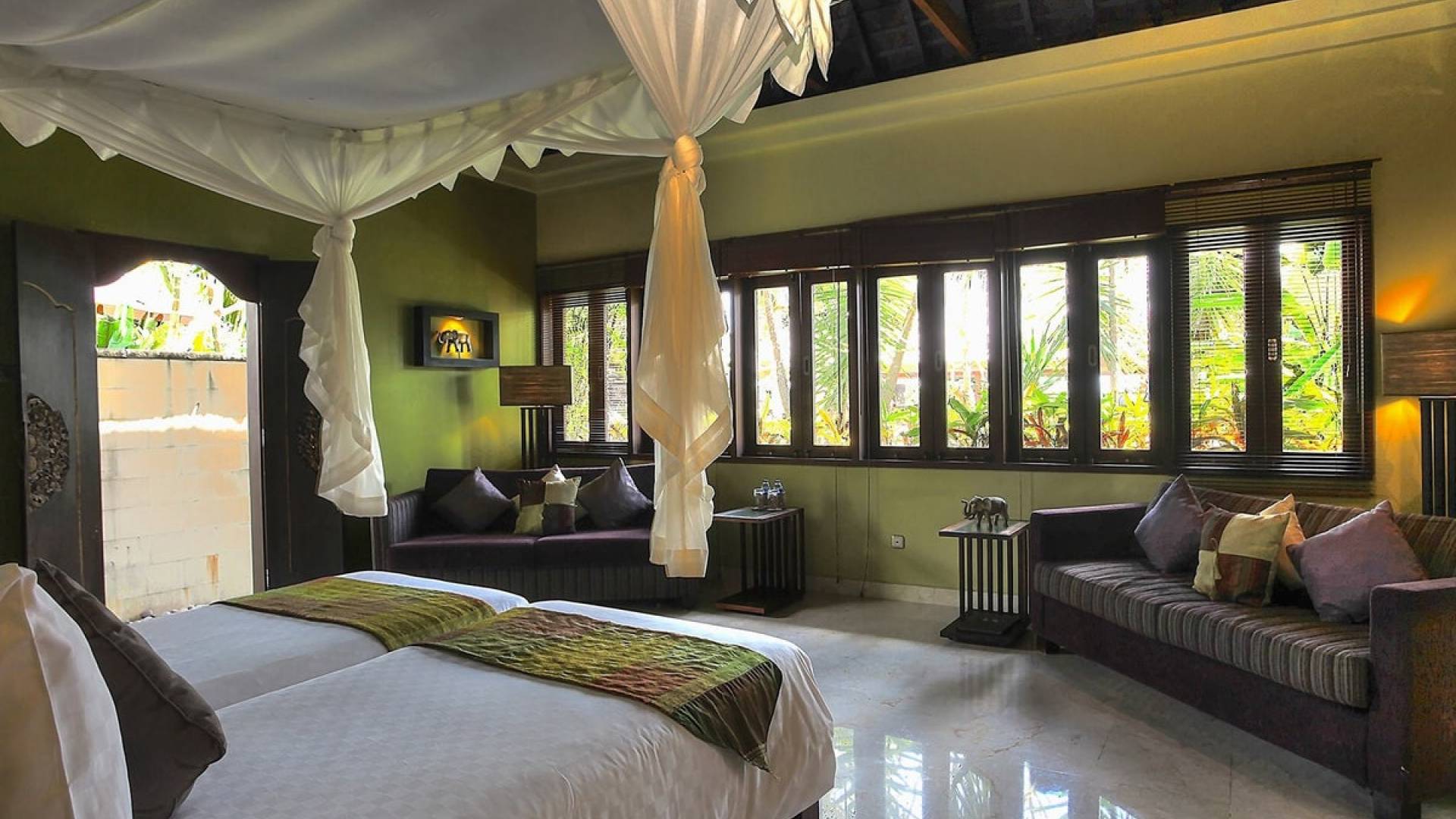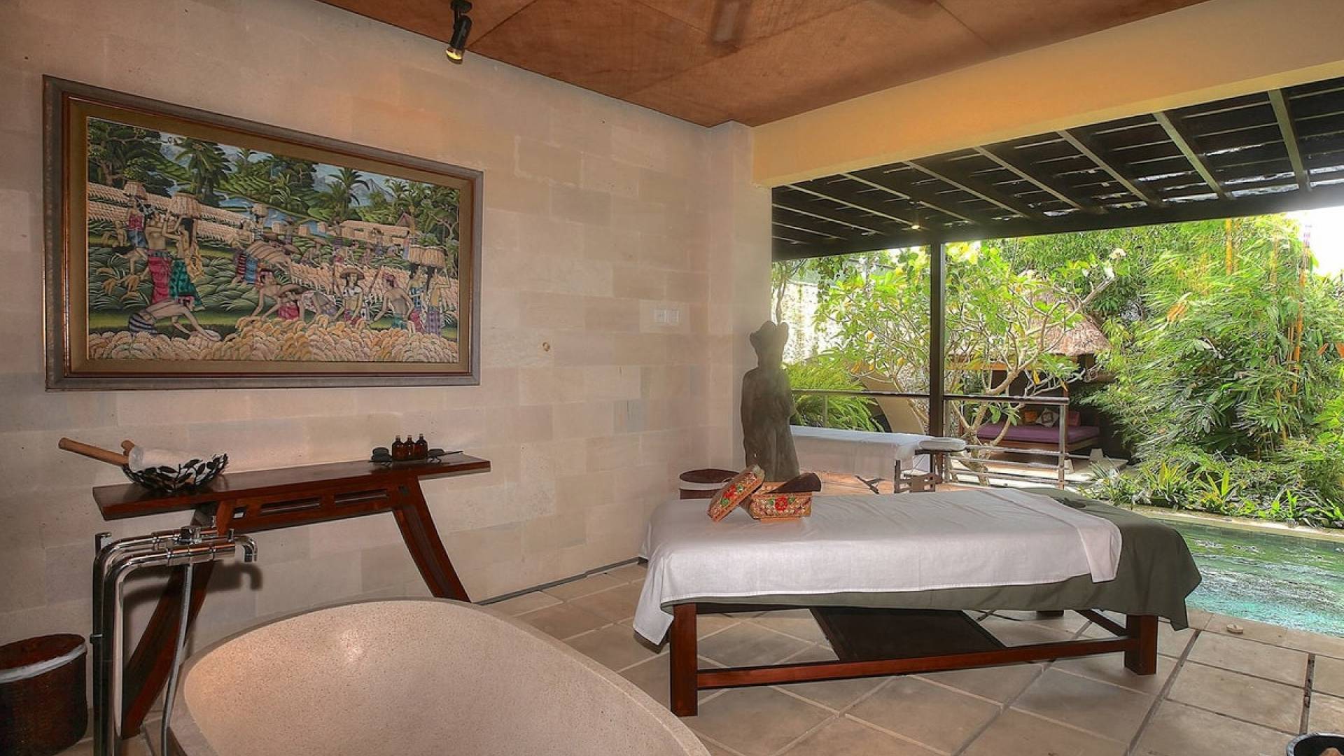 Внутри виллы Indah Manis Bali вы найдете просторный открытый жилой и обеденный павильон между садами и частным бассейном с великолепным видом. В трех спальнях установлена кровать размера «king-size», а в двух других - две односпальные кровати, и они подходят для размещения детей. Для вашего развлечения есть медиа-зал с домашним кинотеатром, удобными диванами, обширной библиотекой развлечений, играми и книгами, а также полуоткрытая игровая комната с бильярдным столом и кушеткой. Наконец, вы можете насладиться расслабляющим массажем в спа-салоне или потренироваться в хорошо оборудованном фитнес-зале.