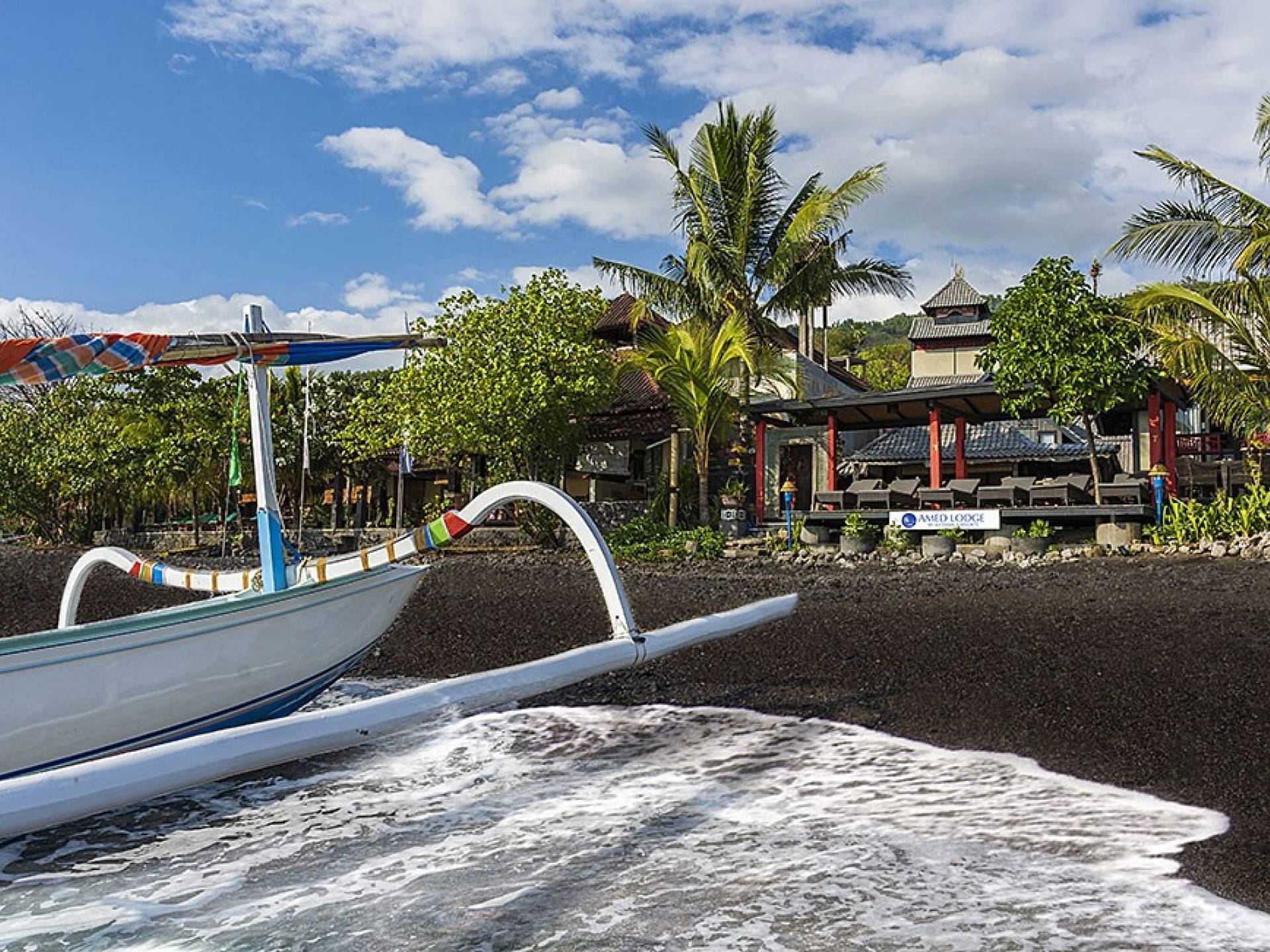 Регентство славится потрясающими видами на океан и восход солнца, а также захватывающими местами для дайвинга, включая дайв-сайт Пирамиды и затонувший корабль USS Liberty. Амед Лодж - это тропическое убежище, где обещано теплое балийское гостеприимство и безмятежность.