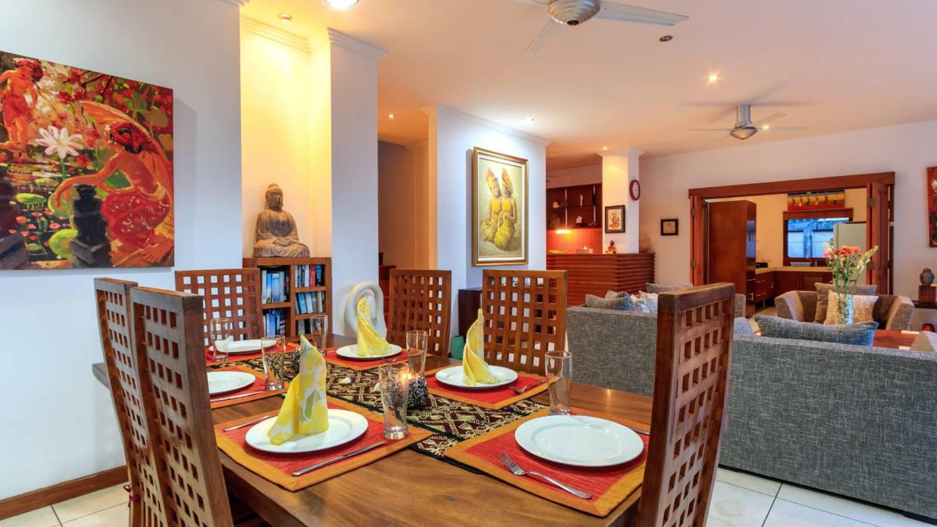 Отель Villa Pantai Candidasa расположен между горами и морем. Этот роскошный курортный отель с 2 спальнями имеет прямой выход к океану и на удивление доступен по цене. Вилла Pantai Candidasa сочетает в себе современный комфорт с тропической атмосферой и балийским шармом. Это идеальное место, чтобы расслабиться в течение нескольких дней, очистить разум, глубоко расслабиться и весело провести время с друзьями и семьей. Это отель на берегу океана, где вы будете спать, плавать, отдыхать и обедать под шум моря в течение всего дня, и это замечательно! Гостиная спроектирована для вашего комфорта со стеклянными дверями от пола до потолка, которые открываются в сад и к бассейну с видом на море. Вилла Pantai представляет собой потрясающий двухэтажный павильон, в котором царит настоящая домашняя атмосфера, где европейский стиль сочетается с балийским шармом. Гостиная украшена картинами и традиционными произведениями искусства. Мягкие диваны и кресла из ротанга создают очень удобные места, где можно свернуться калачиком с книгой, посмотреть телевизор или выпить чай и полюбоваться видом. Есть красивый обеденный стол из красного дерева на 6 человек, а на кухне есть все, что нужно вашему загородному дому.