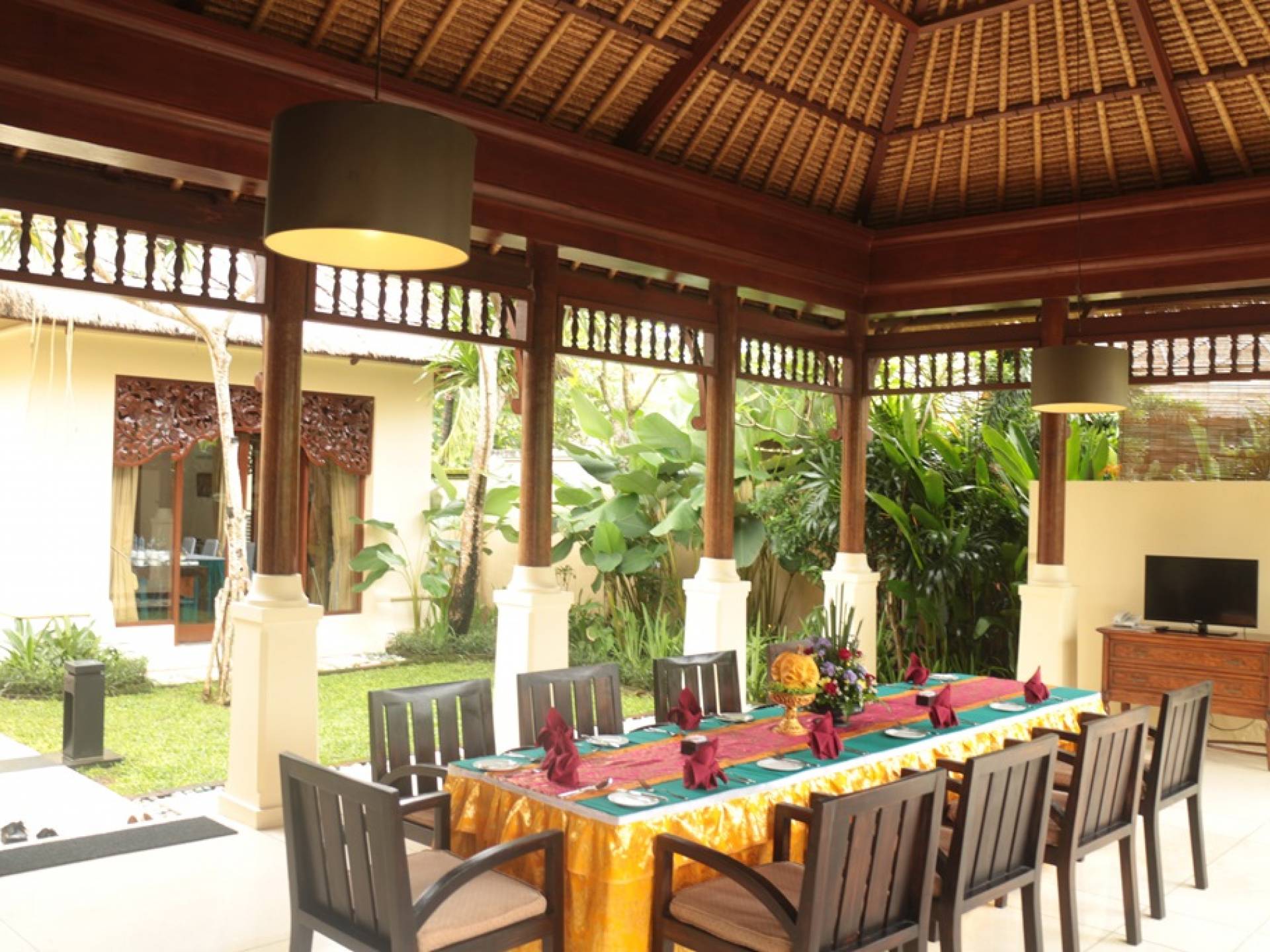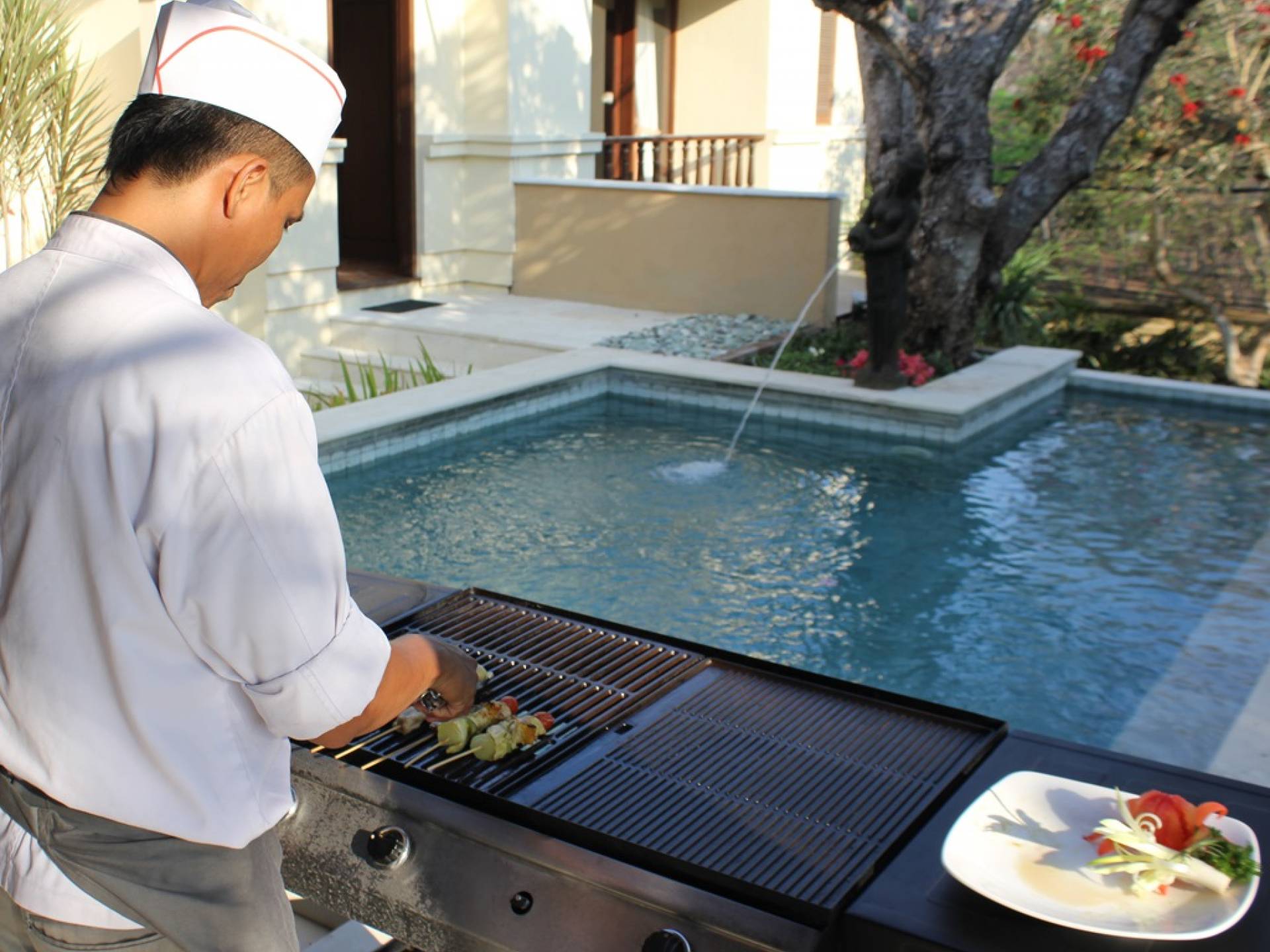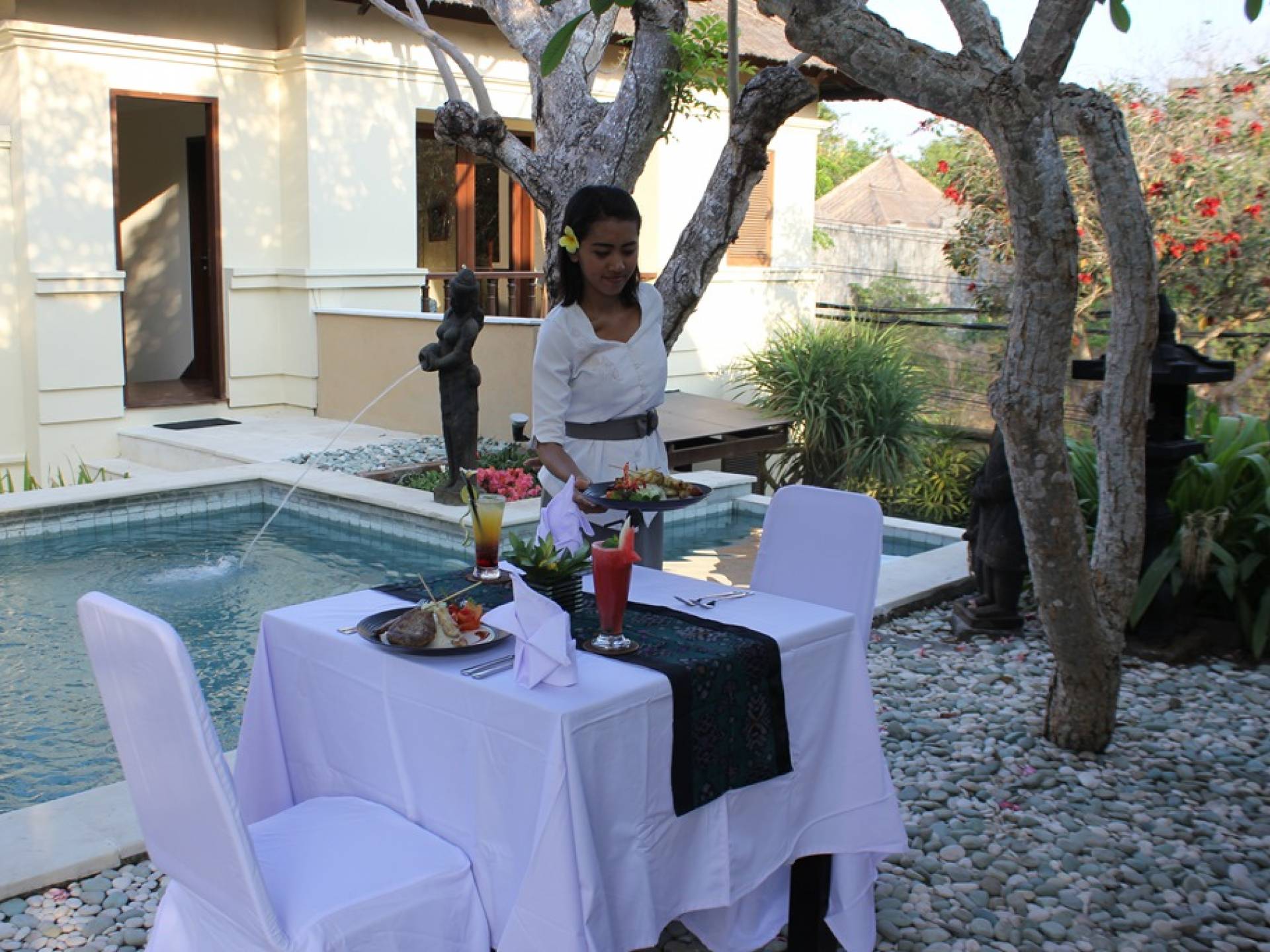 Кафе Silik, расположенное рядом с вестибюлем, сочетает в себе лучшие и самые свежие ингредиенты с Бали для создания широкого ассортимента блюд индонезийской и интернациональной кухни. Открыто с завтрака до ужина. Обед на вилле, который включает в себя завтрак, который подается ежедневно у частного бассейна, а также большой выбор блюд индонезийской и интернациональной кухни, а также обширное меню барбекю.