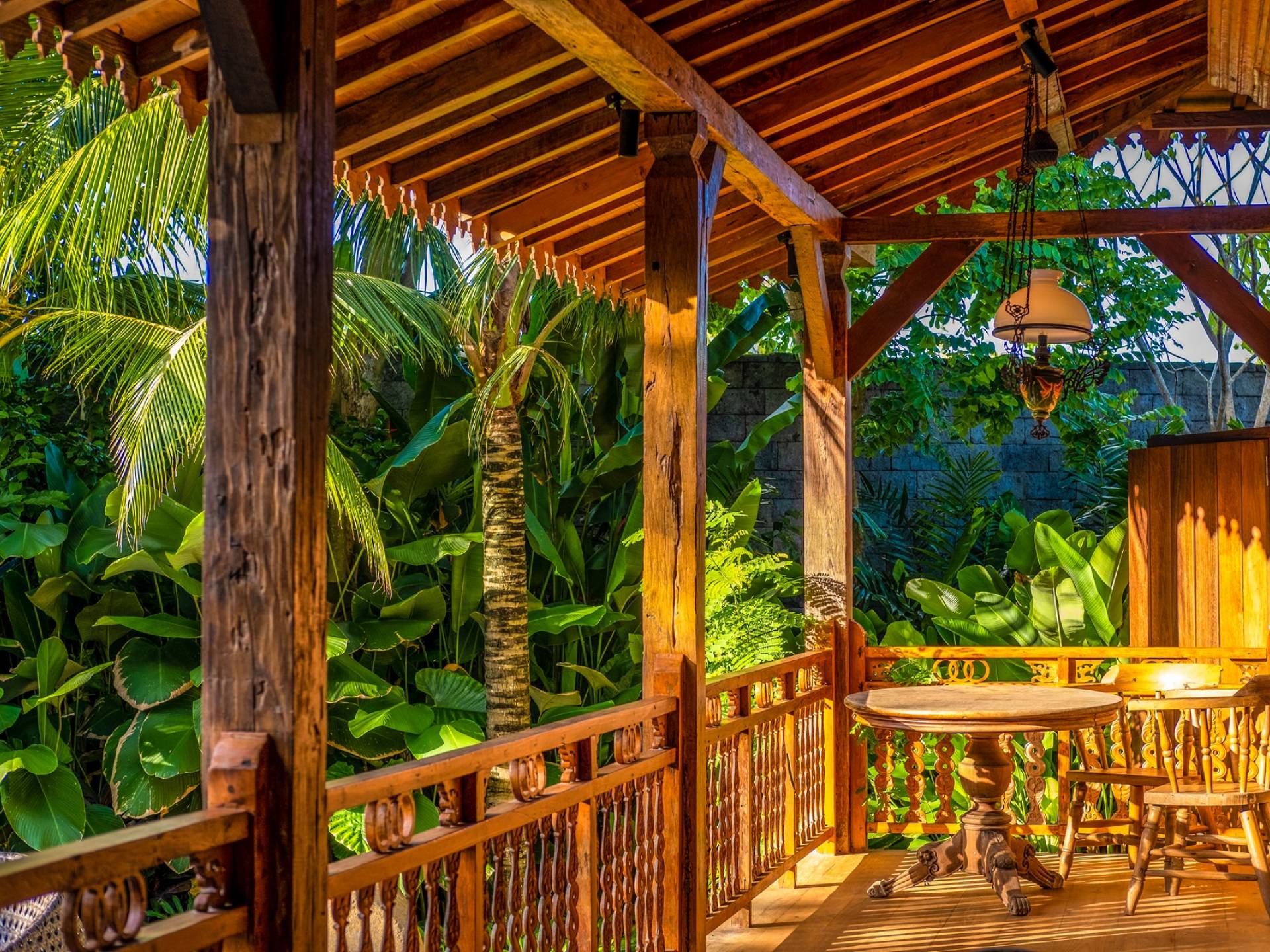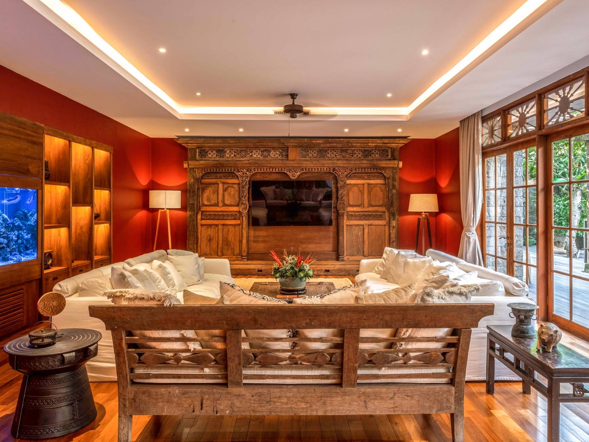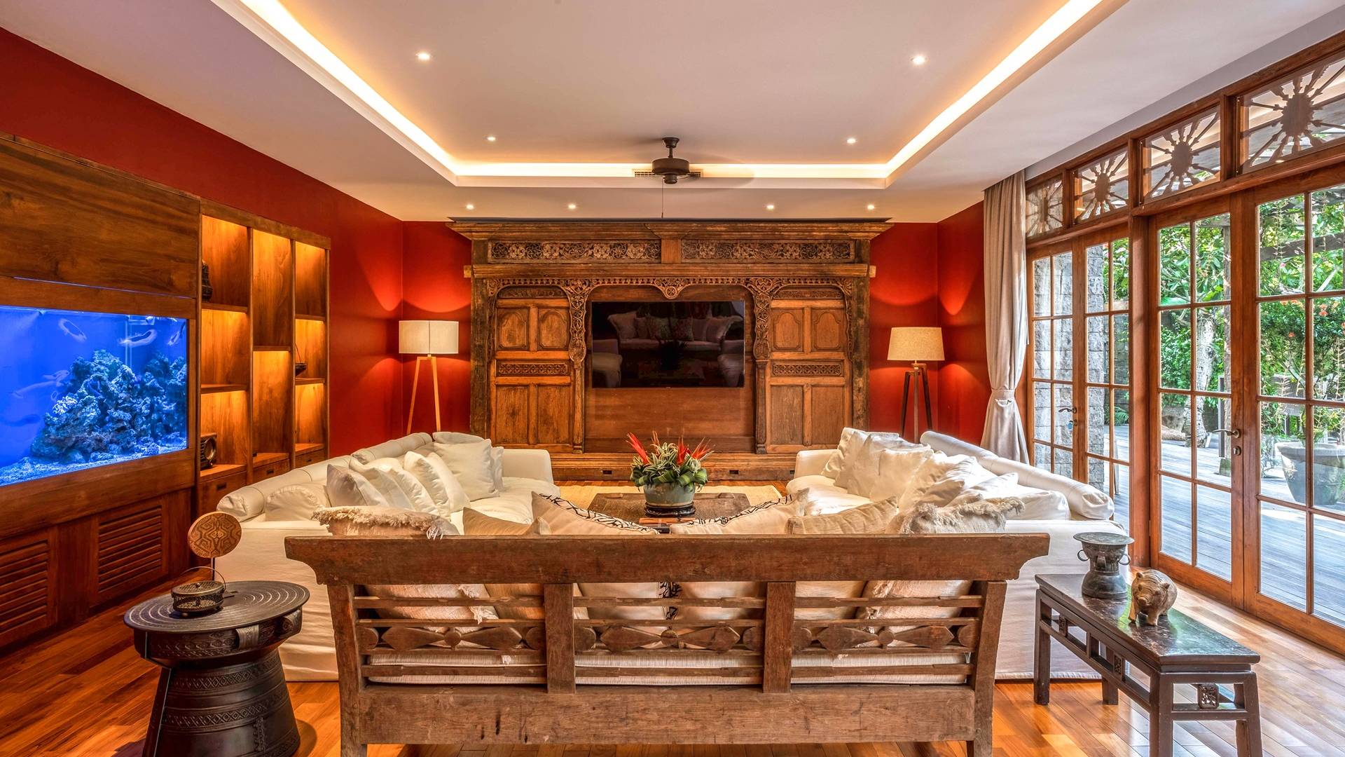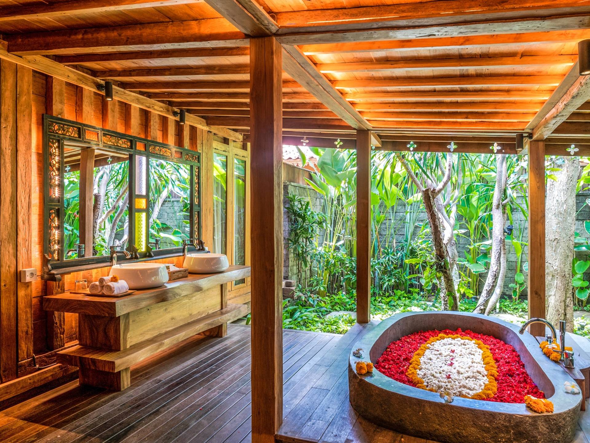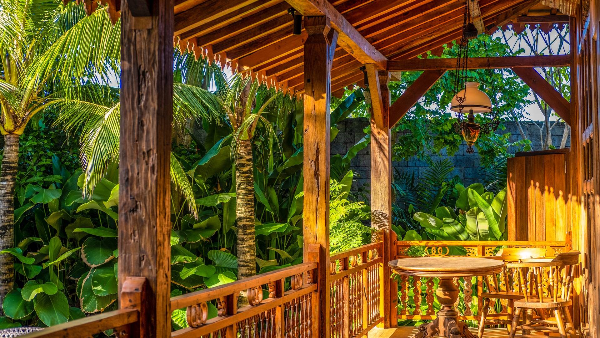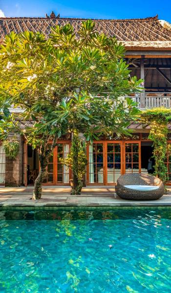 Огромный полуоткрытый павильон в балийском стиле - сердце общества на вилле. Под высокой соломенной крышей из аланг-аланга вы найдете шикарные, но современные кресла, традиционную яванскую кушетку и большой диван. Кухня в островном стиле и барная стойка с раковиной оборудованы эспрессо-машиной, а барные стулья у стойки - идеальное место, чтобы насладиться коктейлем или бутылкой вина, чтобы отпраздновать отпуск на Бали. В обеденной зоне потрясающий старинный обеденный стол из железного дерева - идеальное место для повседневных завтраков, а также ужинов при свечах, приготовленных вашим поваром на частной вилле.