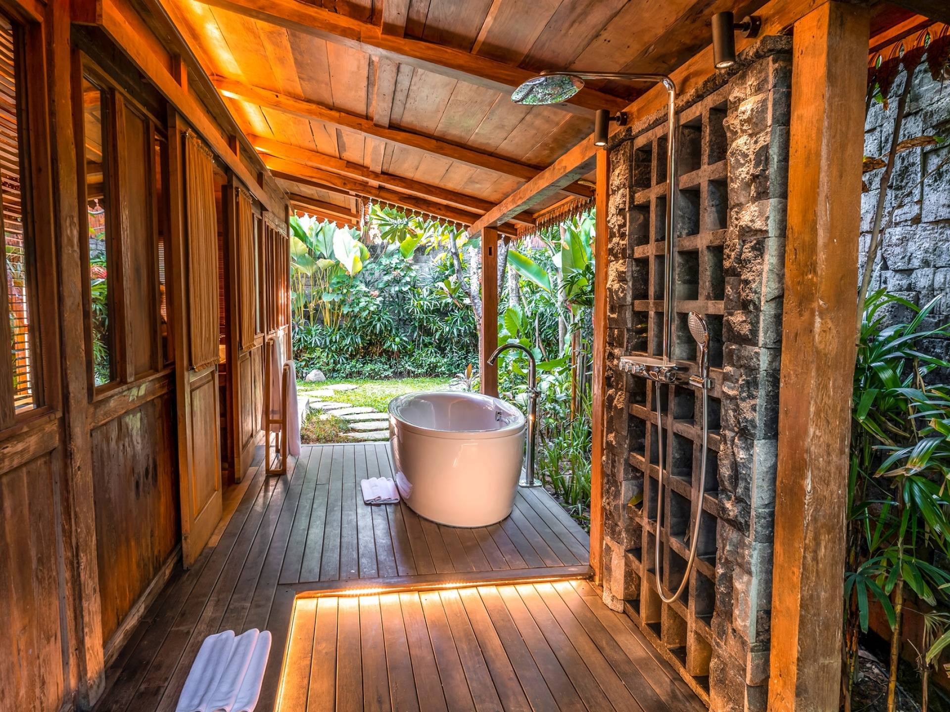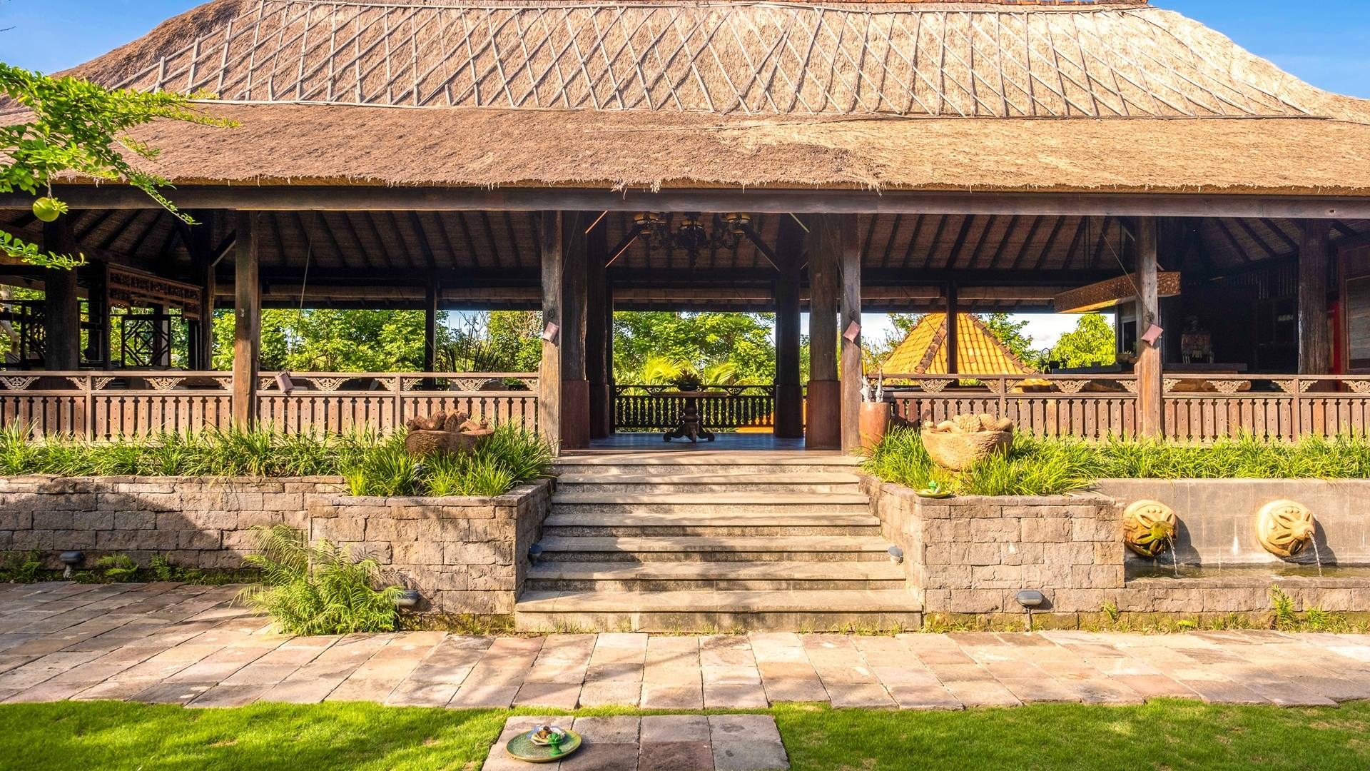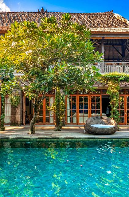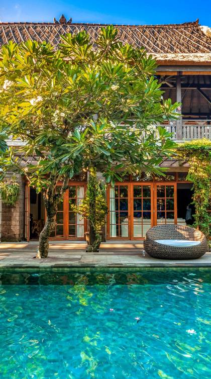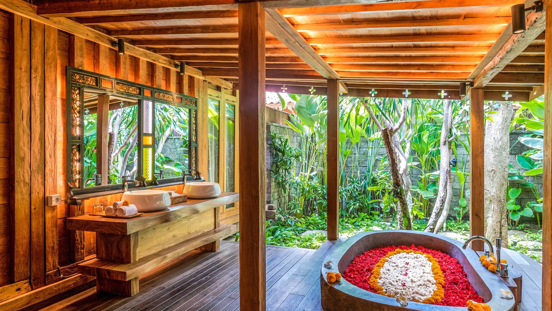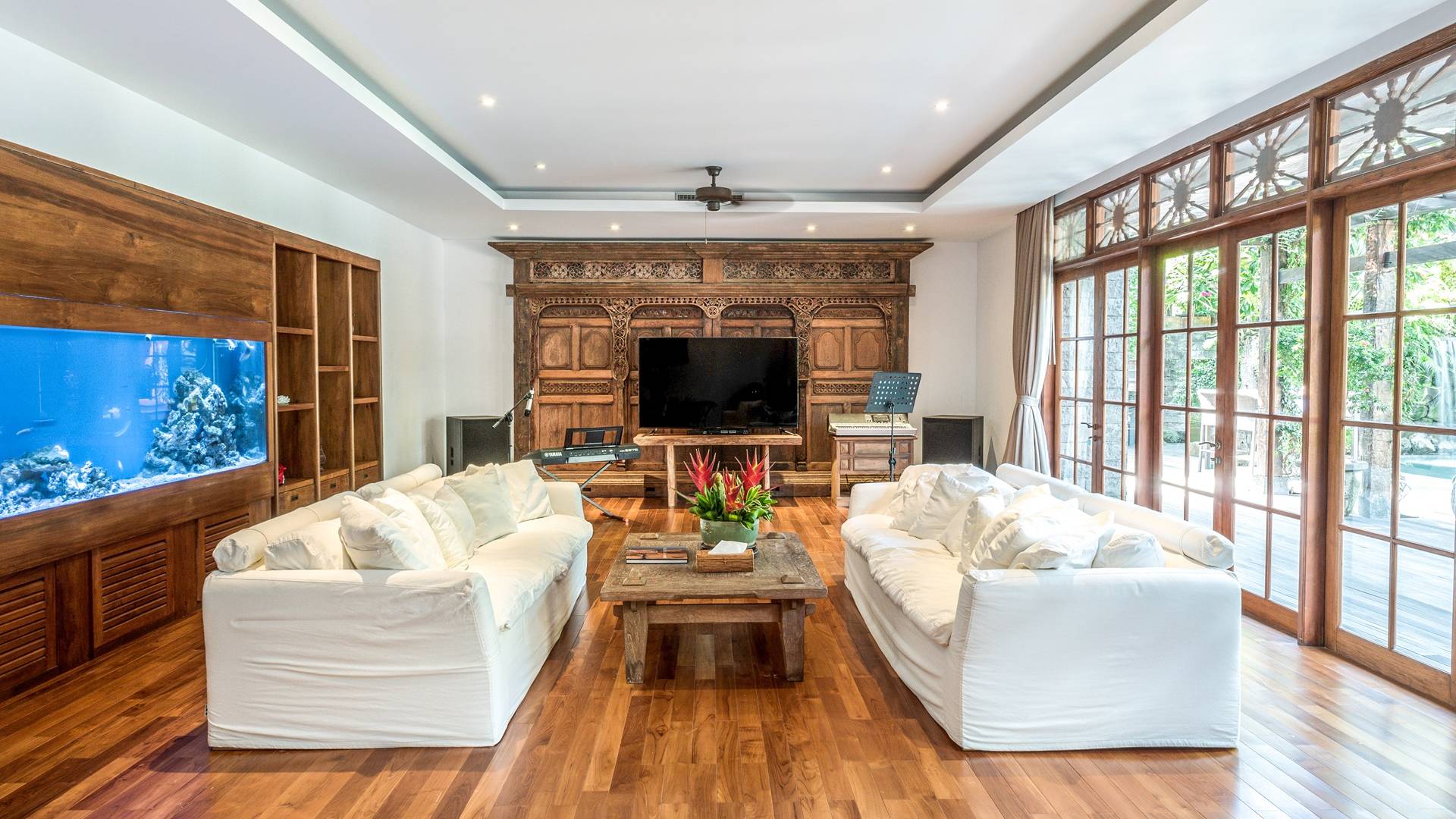 Огромный полуоткрытый павильон в балийском стиле - сердце общества на вилле. Под высокой соломенной крышей из аланг-аланга вы найдете шикарные, но современные кресла, традиционную яванскую кушетку и большой диван. Кухня в островном стиле и барная стойка с раковиной оборудованы эспрессо-машиной, а барные стулья у стойки - идеальное место, чтобы насладиться коктейлем или бутылкой вина, чтобы отпраздновать отпуск на Бали. В обеденной зоне потрясающий старинный обеденный стол из железного дерева - идеальное место для повседневных завтраков, а также ужинов при свечах, приготовленных вашим поваром на частной вилле.
