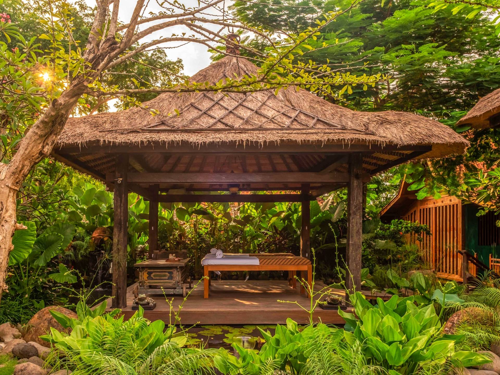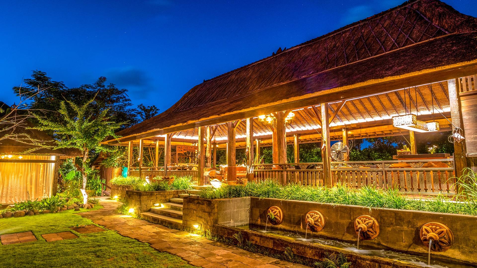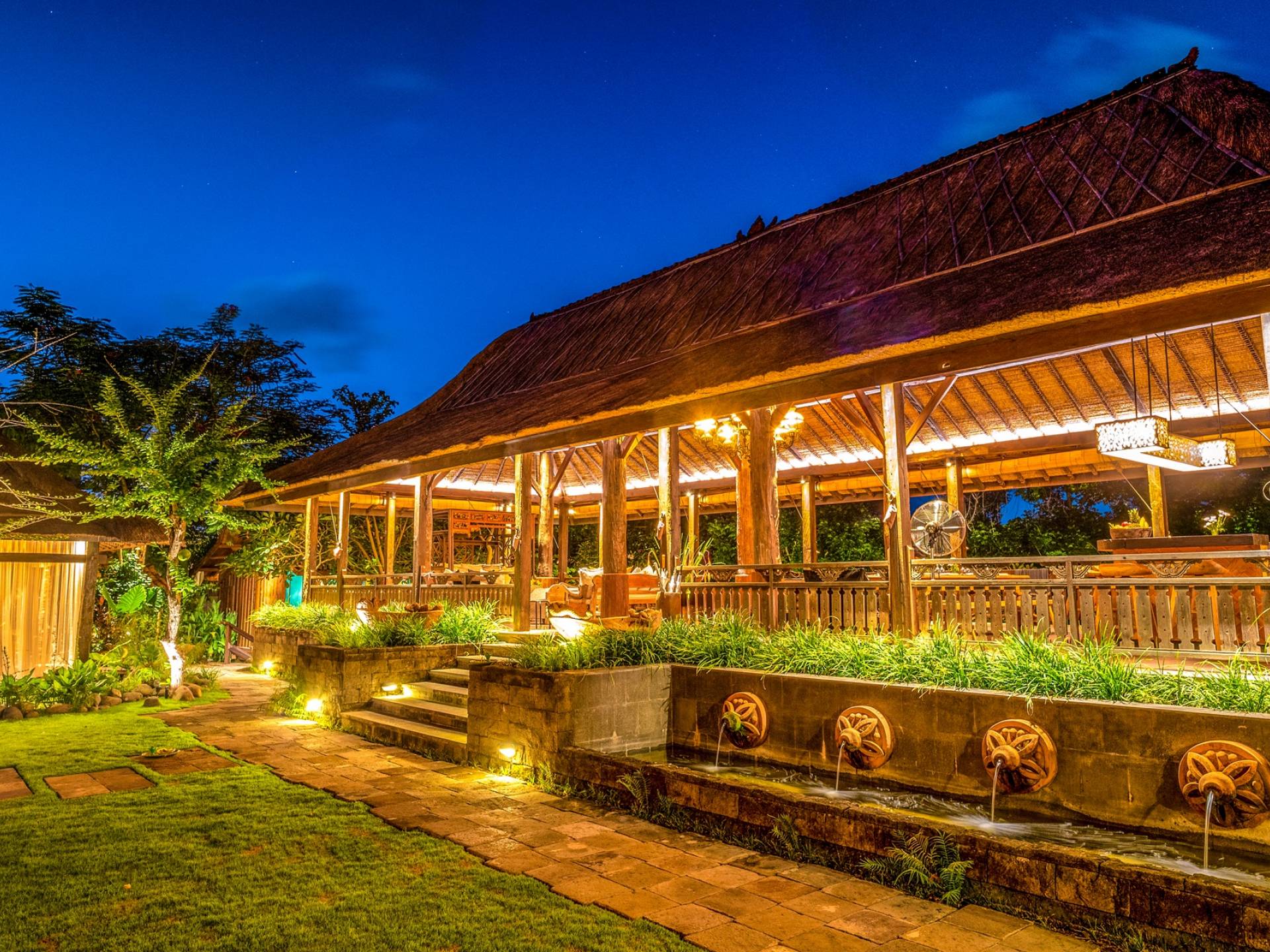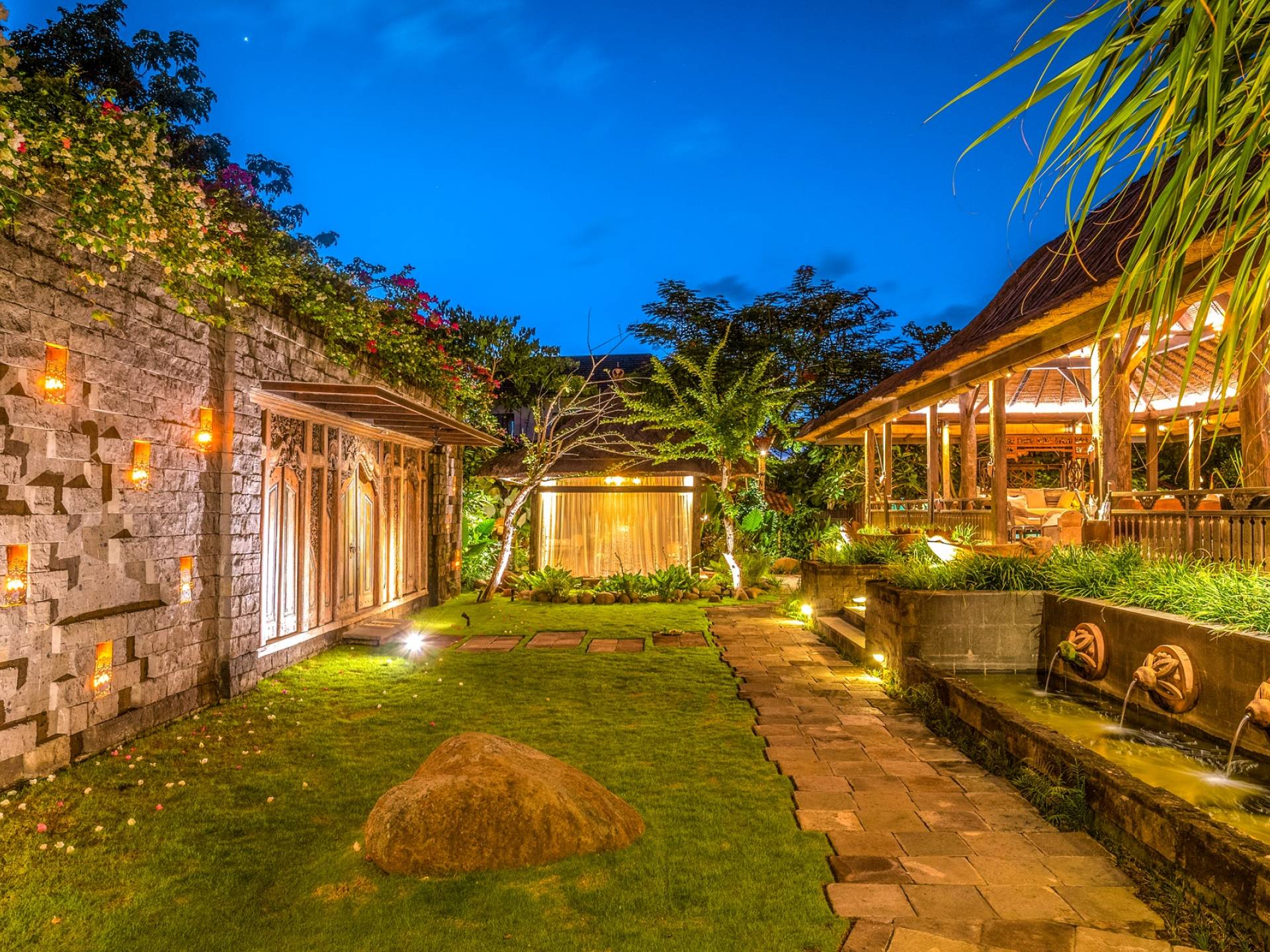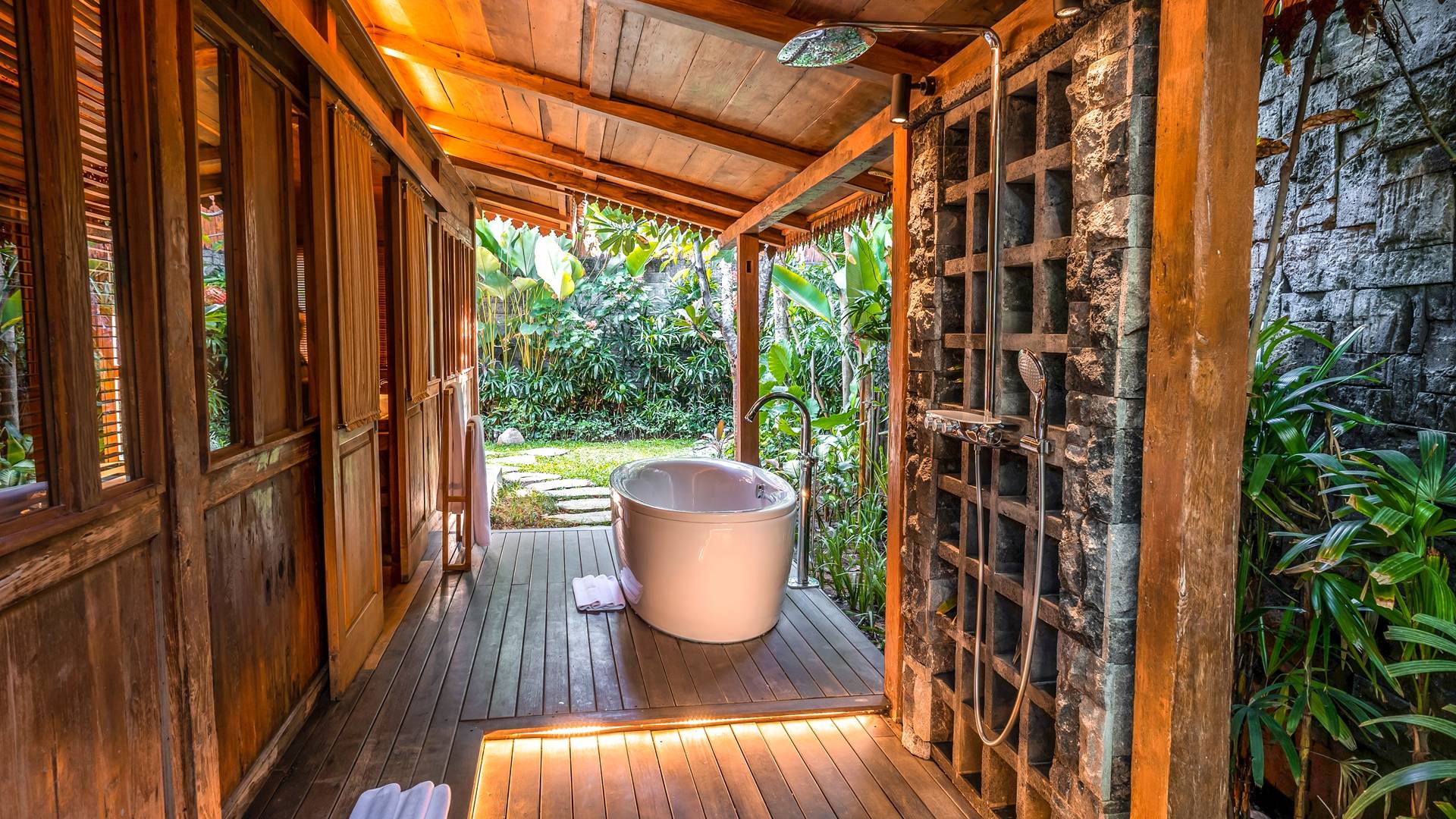 Огромный полуоткрытый павильон в балийском стиле - сердце общества на вилле. Под высокой соломенной крышей из аланг-аланга вы найдете шикарные, но современные кресла, традиционную яванскую кушетку и большой диван. Кухня в островном стиле и барная стойка с раковиной оборудованы эспрессо-машиной, а барные стулья у стойки - идеальное место, чтобы насладиться коктейлем или бутылкой вина, чтобы отпраздновать отпуск на Бали. В обеденной зоне потрясающий старинный обеденный стол из железного дерева - идеальное место для повседневных завтраков, а также ужинов при свечах, приготовленных вашим поваром на частной вилле.