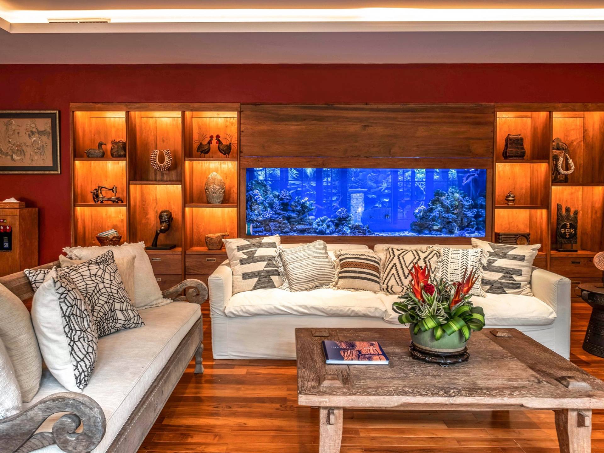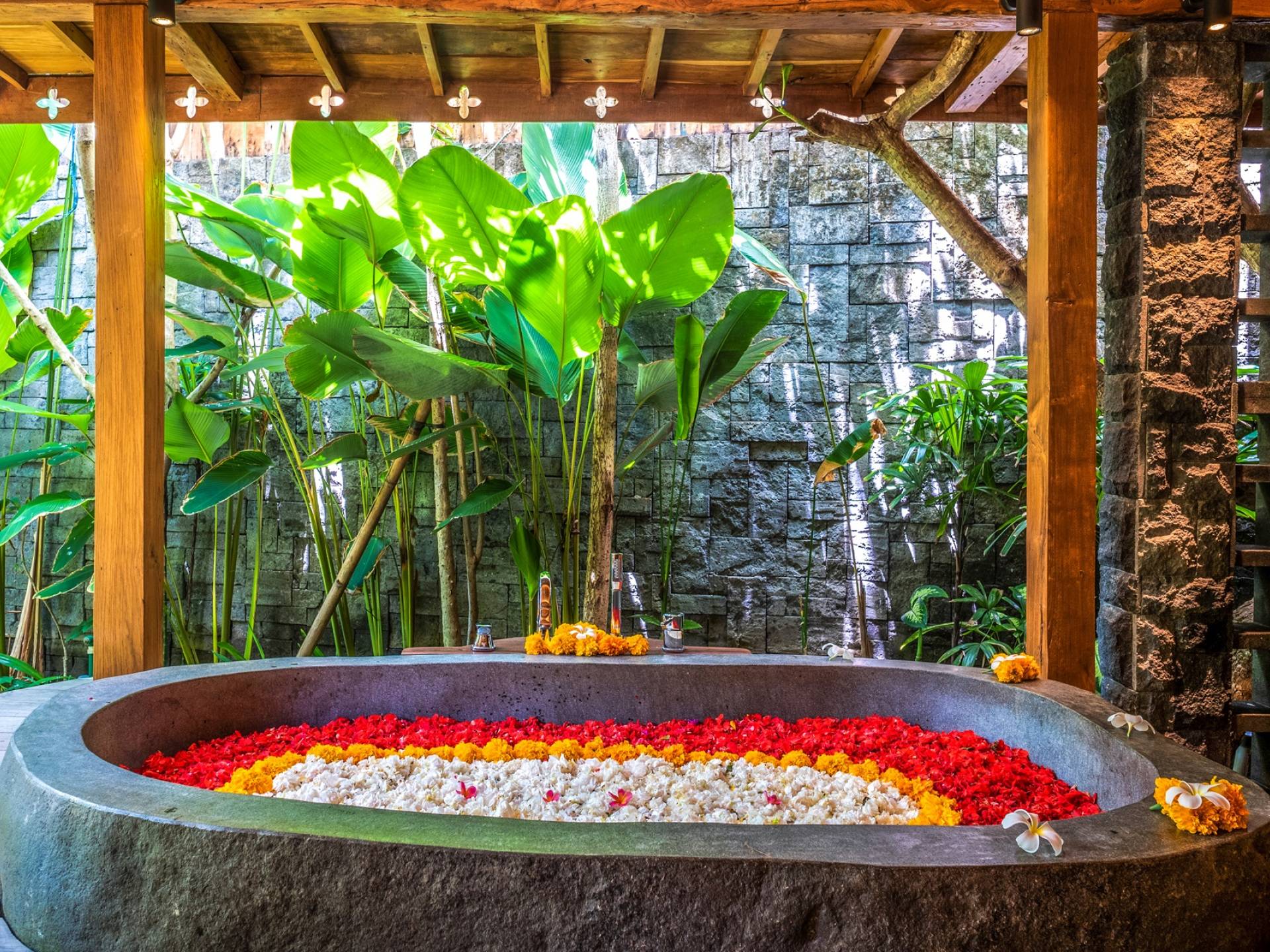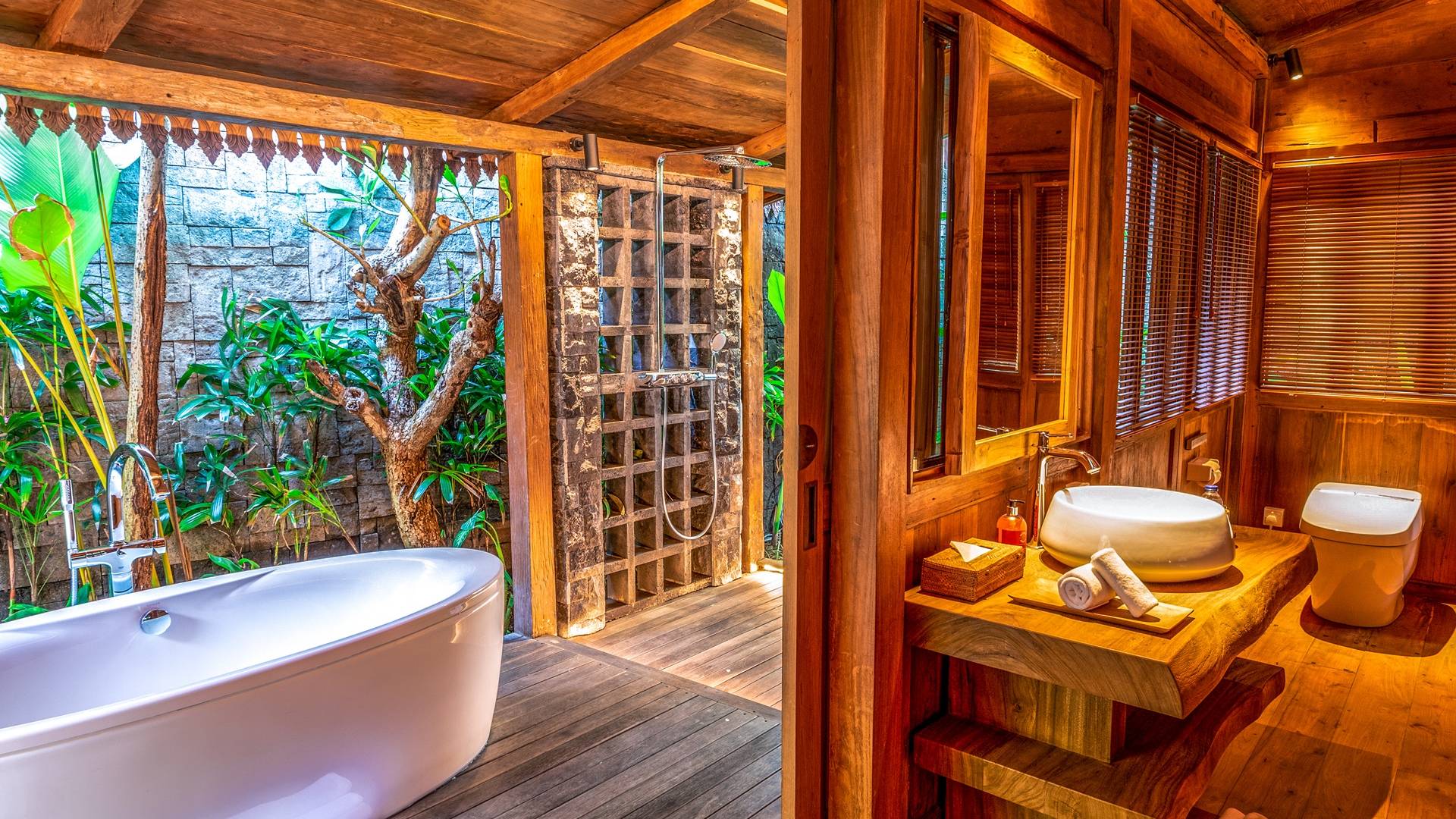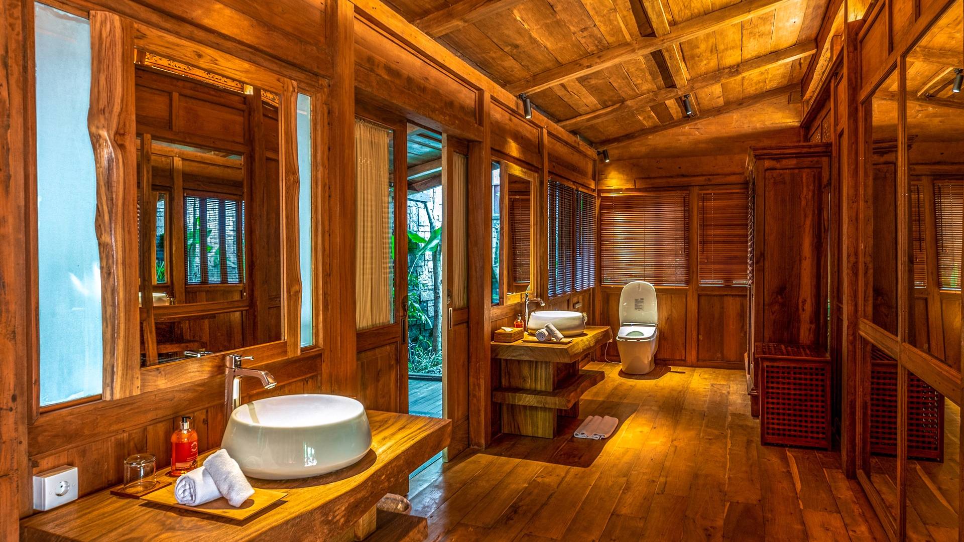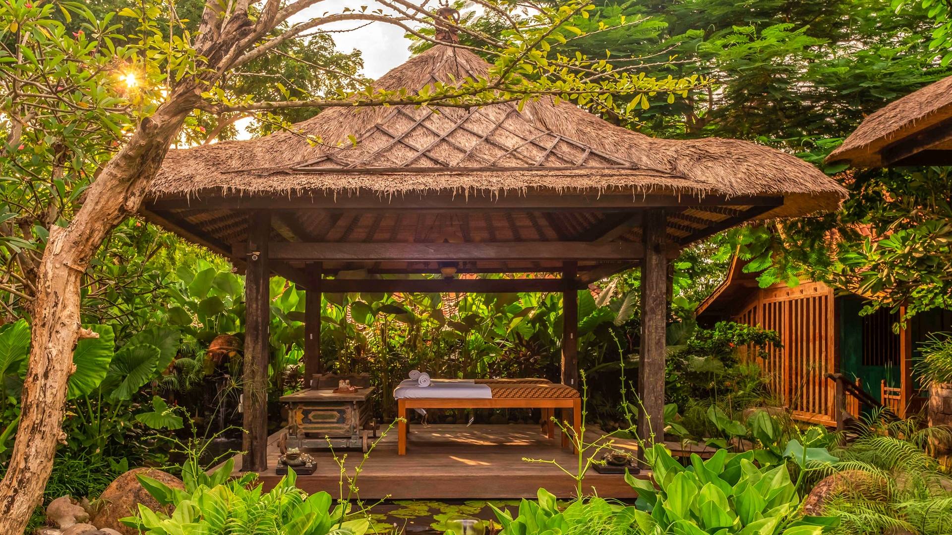 Огромный полуоткрытый павильон в балийском стиле - сердце общества на вилле. Под высокой соломенной крышей из аланг-аланга вы найдете шикарные, но современные кресла, традиционную яванскую кушетку и большой диван. Кухня в островном стиле и барная стойка с раковиной оборудованы эспрессо-машиной, а барные стулья у стойки - идеальное место, чтобы насладиться коктейлем или бутылкой вина, чтобы отпраздновать отпуск на Бали. В обеденной зоне потрясающий старинный обеденный стол из железного дерева - идеальное место для повседневных завтраков, а также ужинов при свечах, приготовленных вашим поваром на частной вилле.